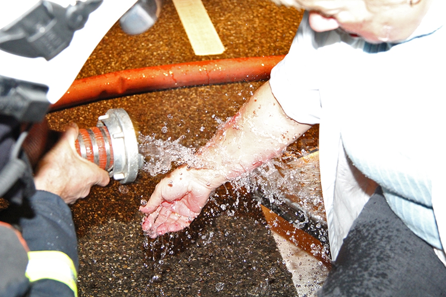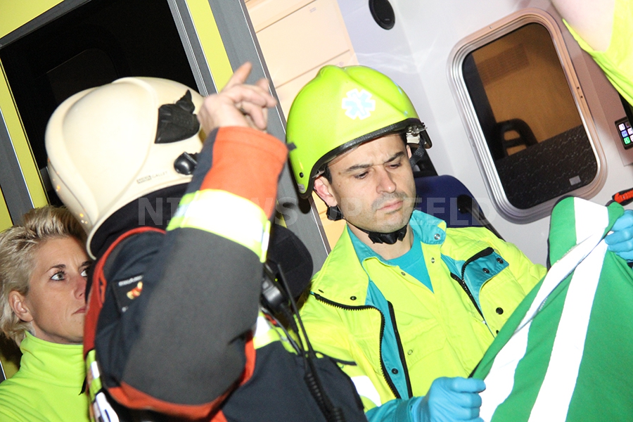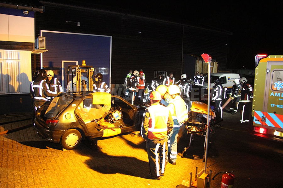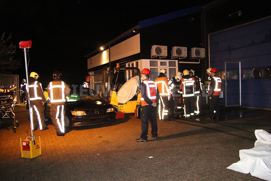 Op dat bedrijventerrein kwam toevallig net een heftruck naar buiten gereden vanuit een bedrijfsloods en die reed zo met de vorken de auto in. De bestuurder van het voertuig kwam bekneld te zitten en de vorkheftruckchauffeur raakte zwaargewond. Ondertussen onstond er door een nog onbekende oorzaak een grote brand in het pand en was er sprake van een onbekend aantal vermisten.
