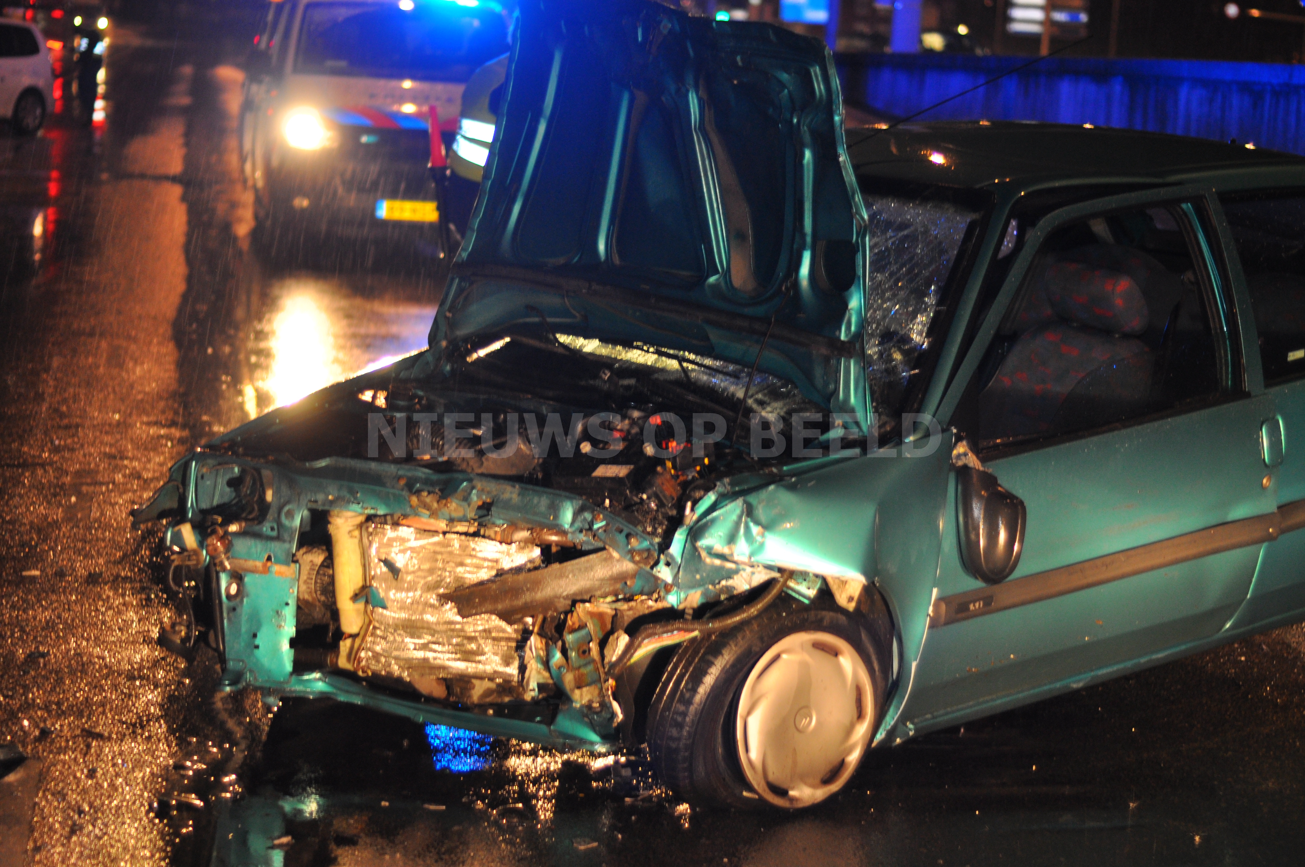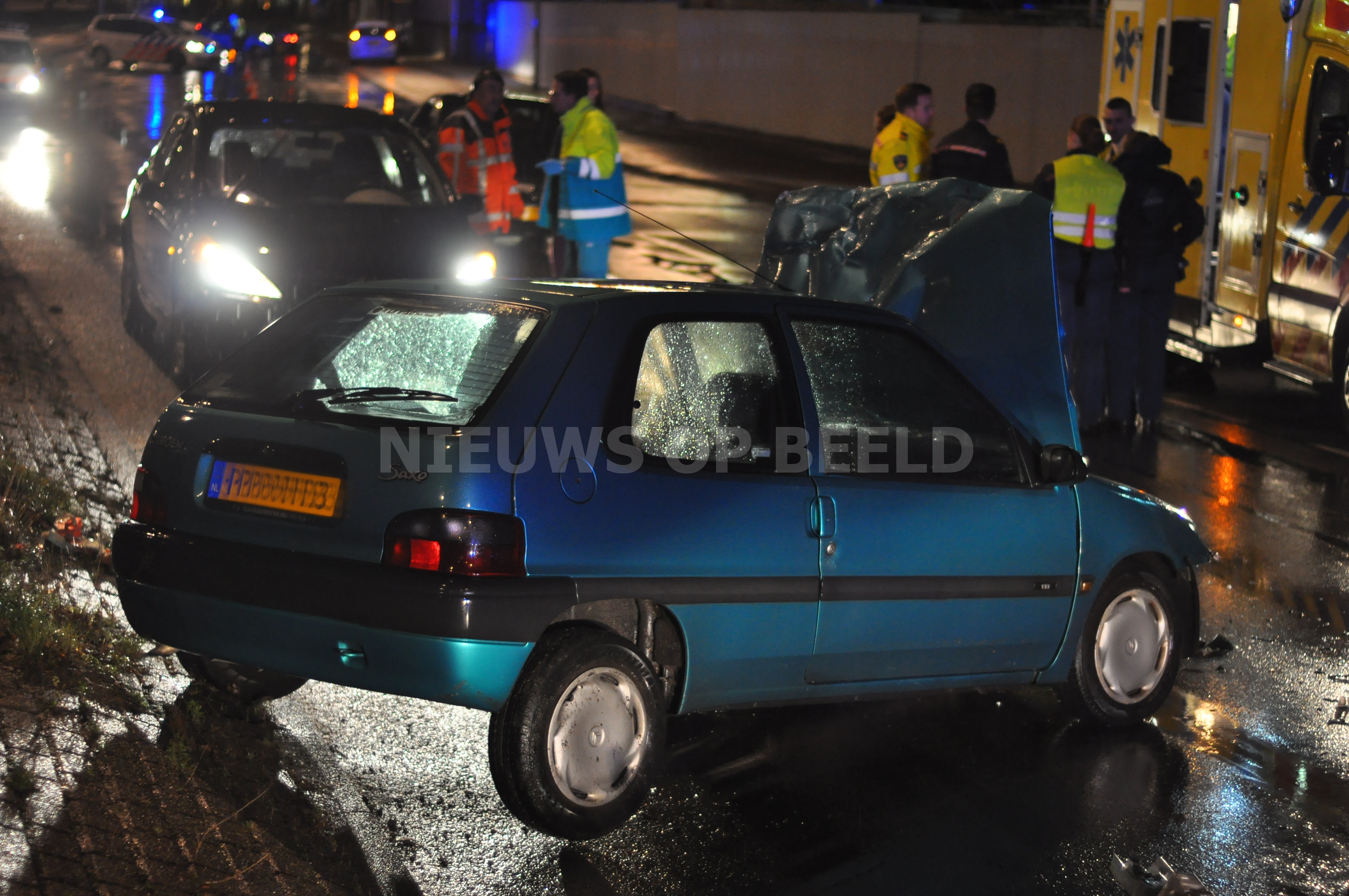 Ter plaatse bleek dat alle inzittenden al uit het voertuig waren. Het ambulancepersoneel heeft een vrouw onderzocht die pijnklachten had in haar buik, zij is naar het ziekenhuis vervoerd voor verder onderzoek en behandeling. De rest van de inzittenden raakten niet gewond.