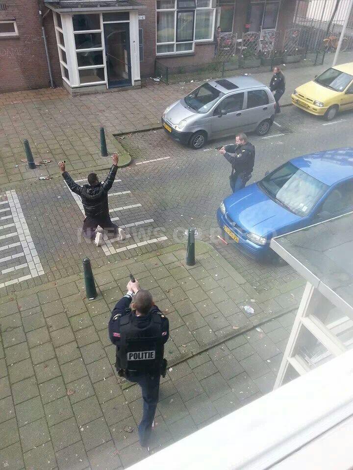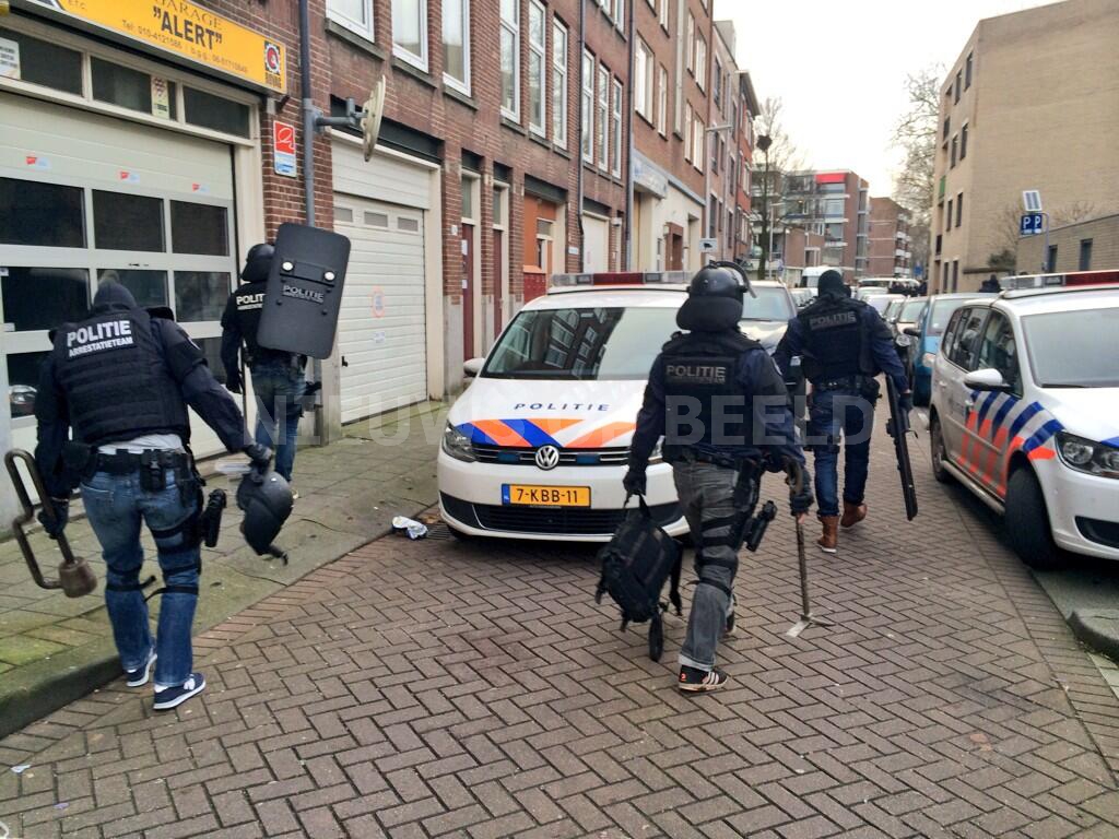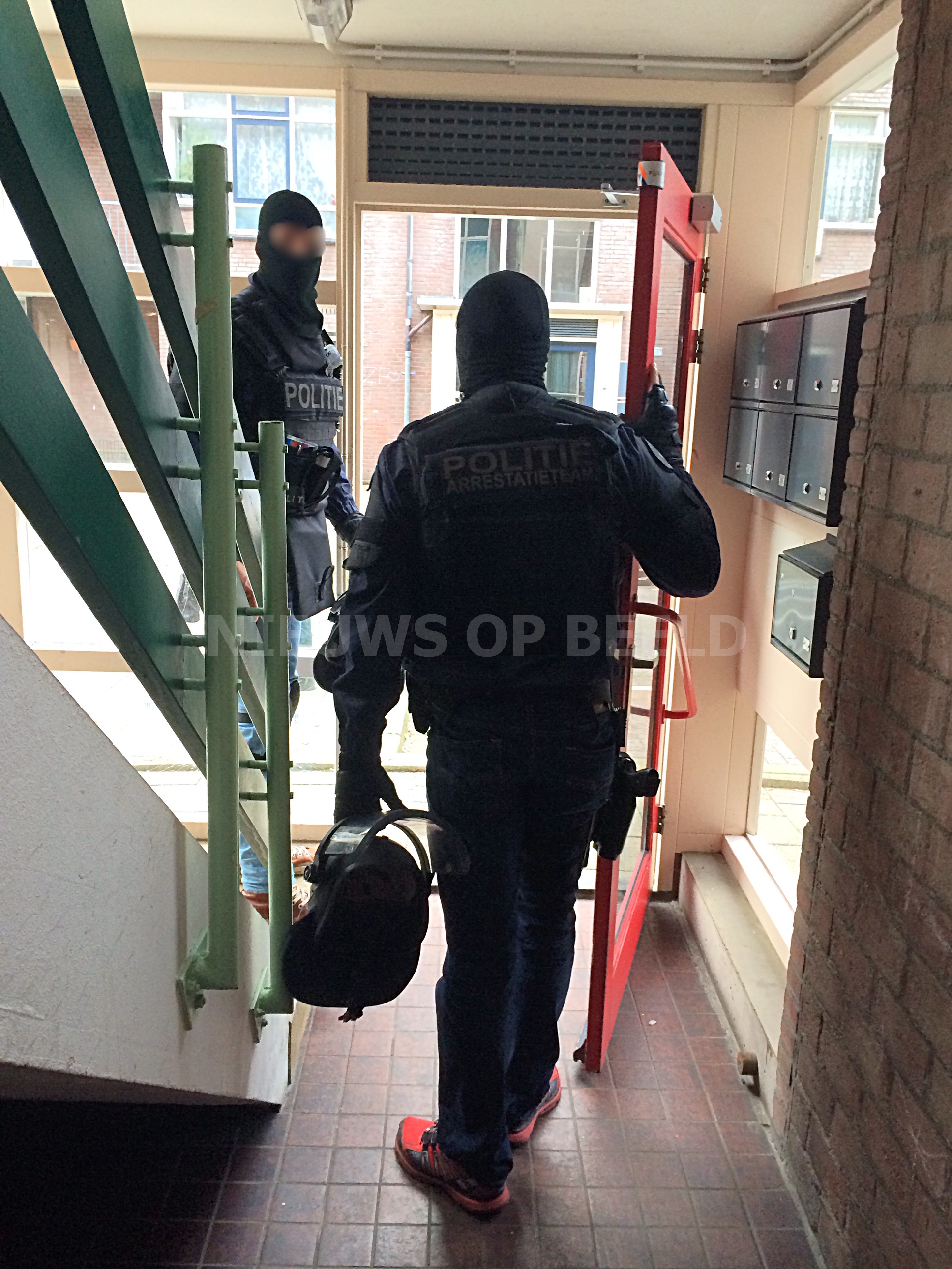 Agenten ter plaatse werden door getuigen gewezen op een portiekwoning in de Laanzichtstraat waar de verdachte naar binnen zou zijn gegaan. De verdachte kwam op eigen initiatief naar buiten waarna hij kon worden aangehouden. Het arrestatieteam wat paraat stond heeft een inval gedaan in zijn woning waar een vrouw met een onbekende identiteit is aangehouden.