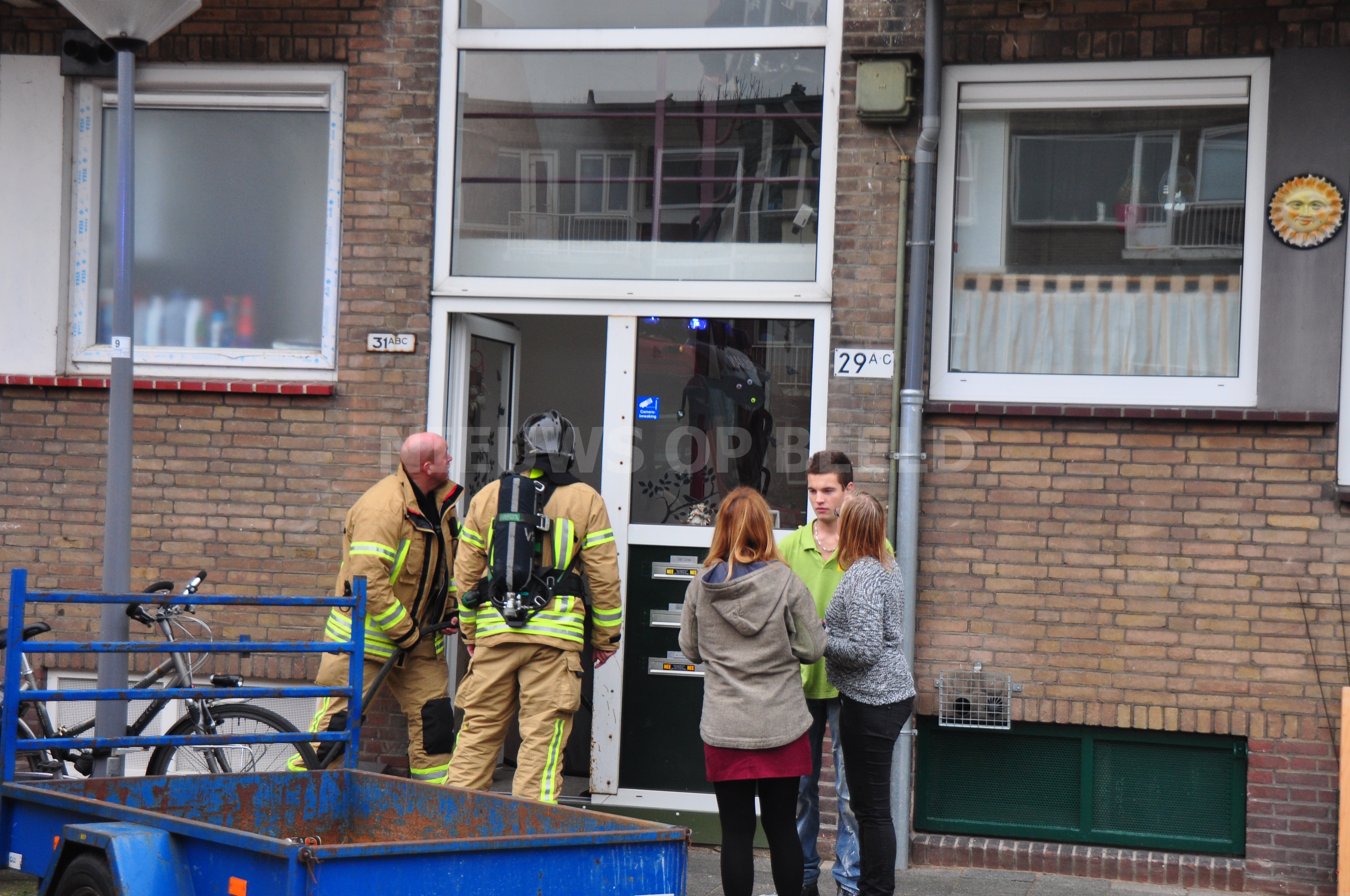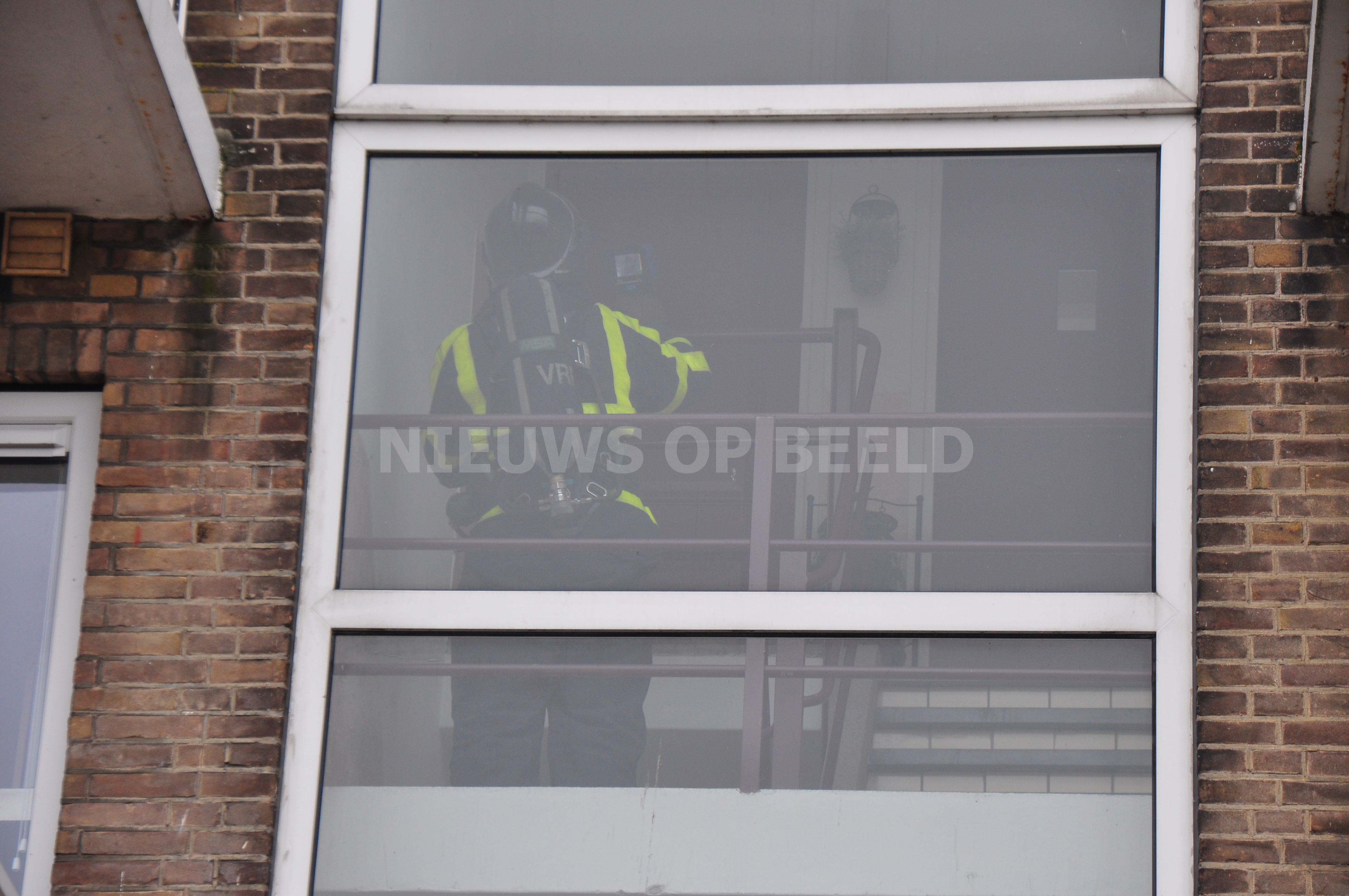 Bij aankomst van de brandweer gingen de brandweerlieden met een hogedrukslang de trappengang van flatgebouw in waar de rook was gezien. Echter trof de brandweer geen brand aan, ook de warmtebeeldcamera gaf geen warme plekken aan waar mogelijk brand zou woeden. Na een klein onderzoekje bleek de brandgeur en de rook afkomstig te zijn van slijpwerkzaamheden in een kelder. De brandweer kon dan ook zonder verrichte zaken terug naar de kazernes.