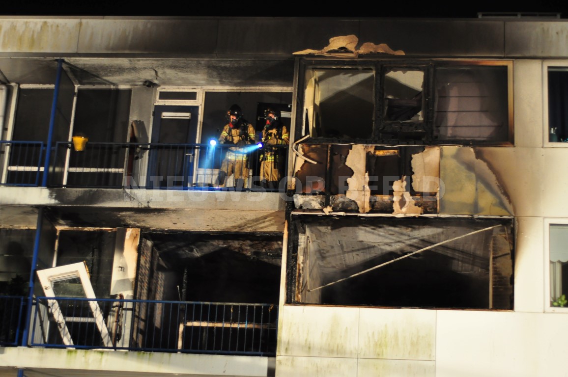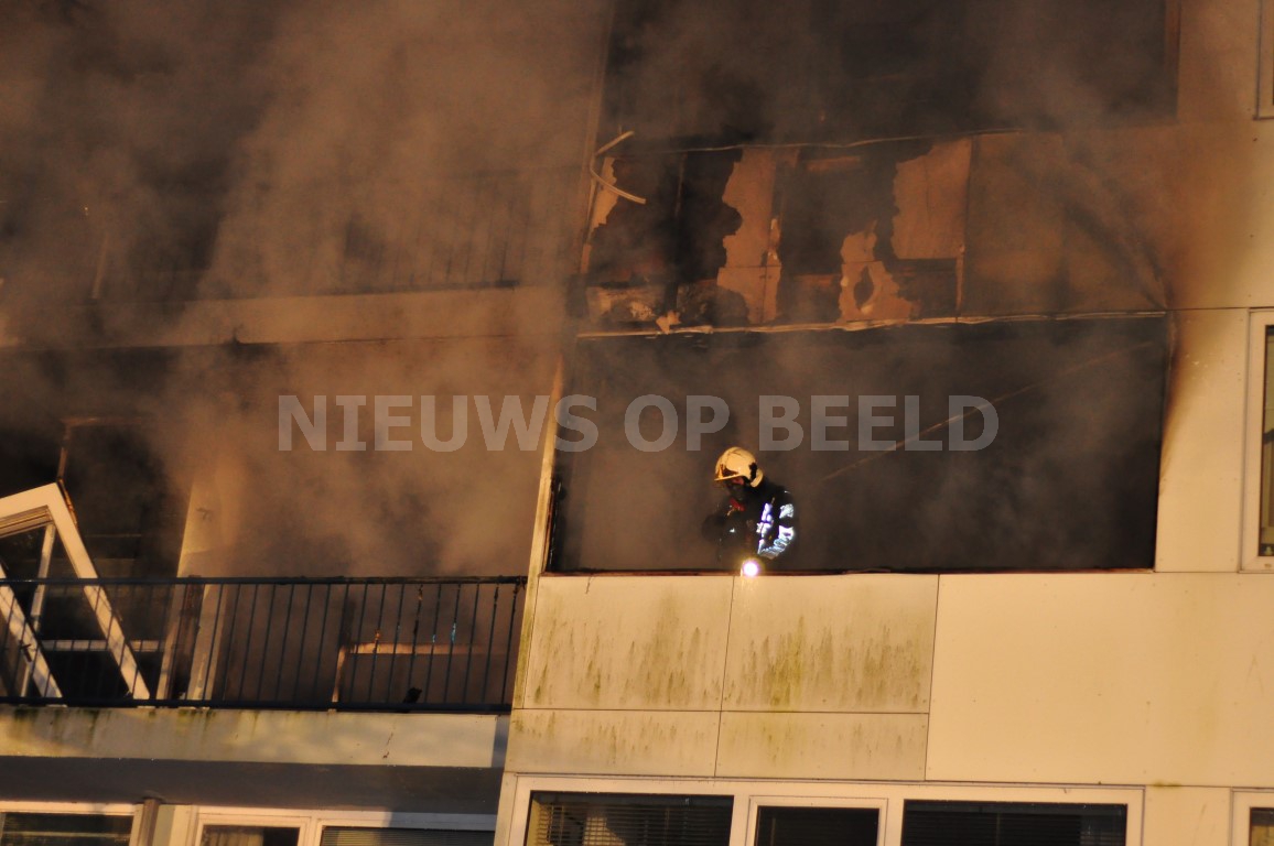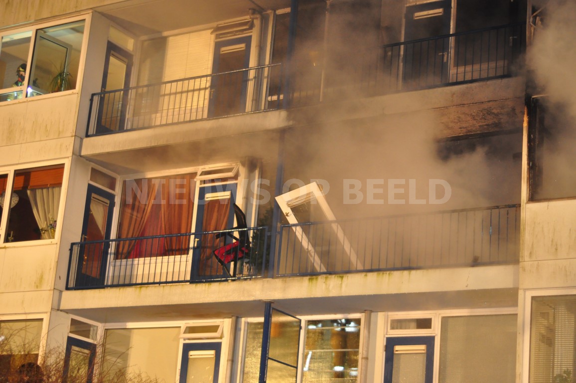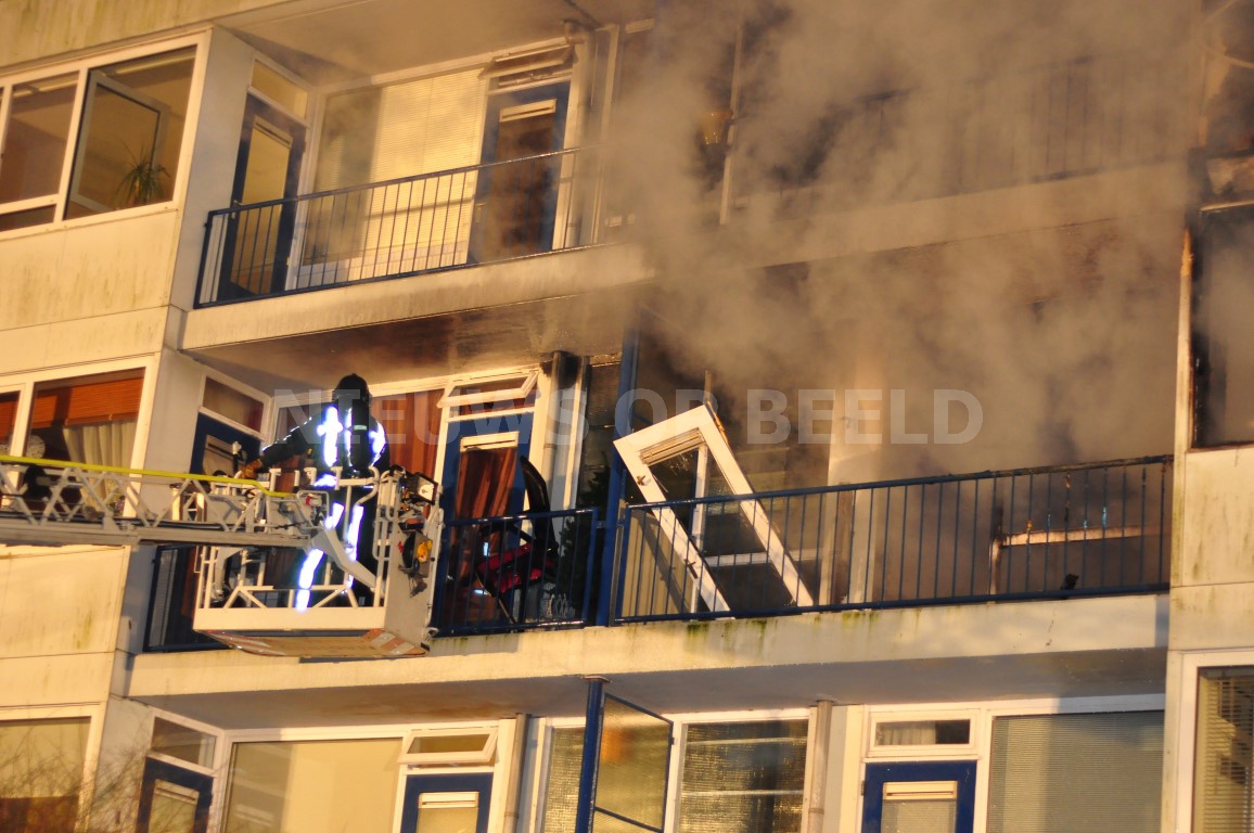 De brandweer heeft met een ladderwagen meerdere personen van een balkon gered. Ambulancepersoneel heeft zich, met ondersteuning van het mobiel medisch team, ontfermd over acht mensen. Drie van hen bleken daadwerkelijk gewond, zij zijn met rookinhalatieklachten overgebracht naar het ziekenhuis Een aantal van hen werd opgevangen in een politiebus. De brandweer had de brand na een uur onder controle. Één woning is compleet uitgebrand. Een woning erboven raakte zwaar beschadigd. Op straat lag een complete voorgevel van het appartement. Mogelijk is er sprake geweest van een gasexplosie.