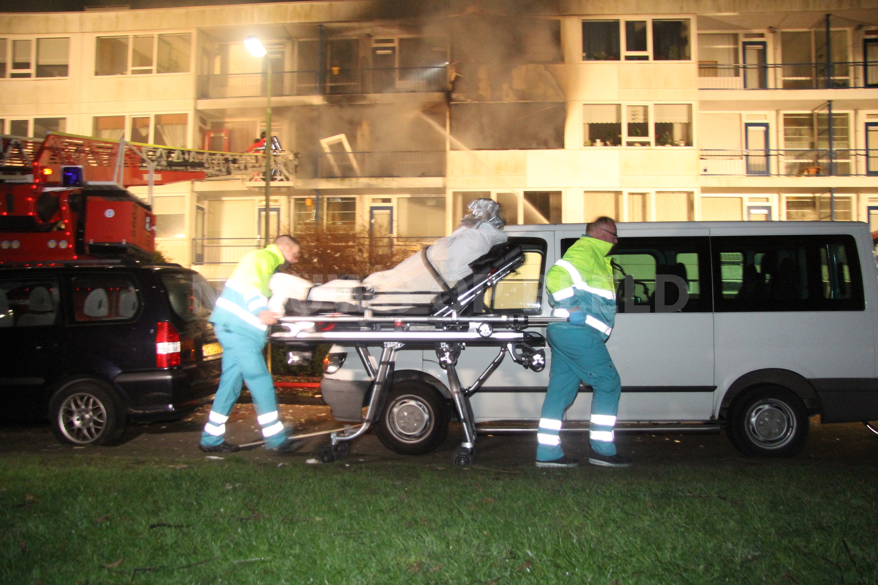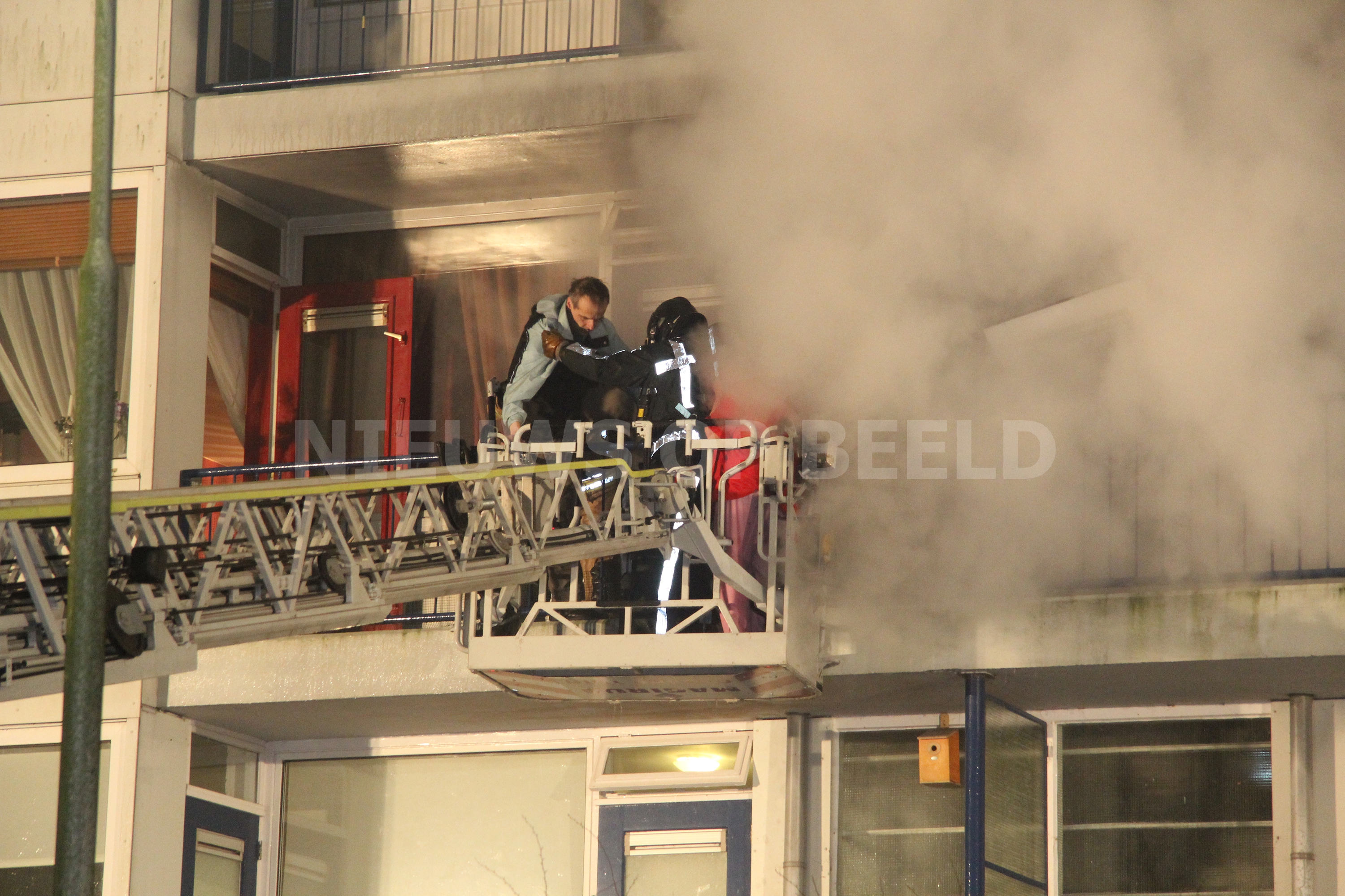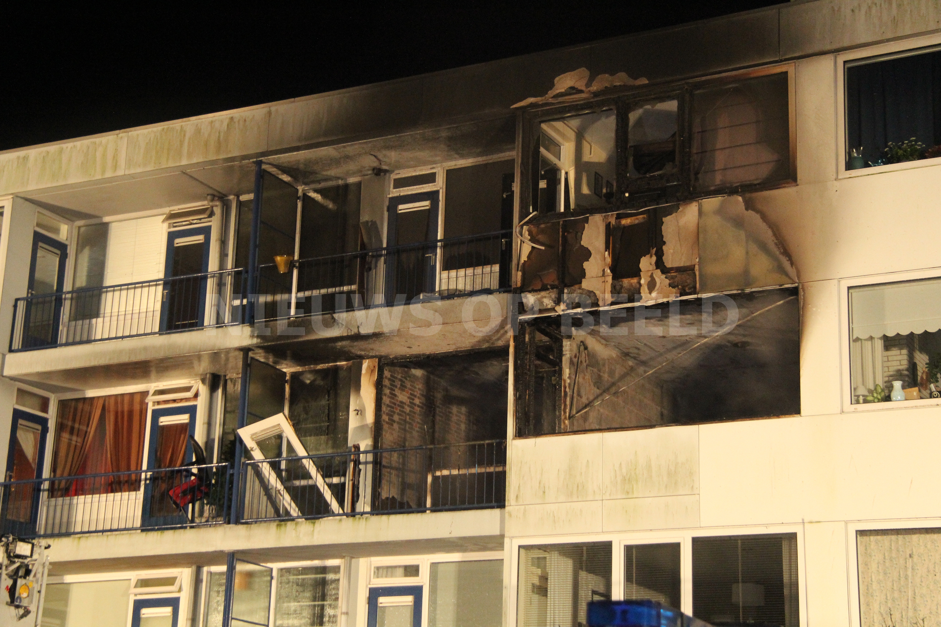 De brandweer heeft met een ladderwagen meerdere personen van een balkon gered. Ambulancepersoneel heeft zich, met ondersteuning van het mobiel medisch team, ontfermd over acht mensen. Drie van hen bleken daadwerkelijk gewond, zij zijn met rookinhalatieklachten overgebracht naar het ziekenhuis Een aantal van hen werd opgevangen in een politiebus. De brandweer had de brand na een uur onder controle. Één woning is compleet uitgebrand. Een woning erboven raakte zwaar beschadigd. Op straat lag een complete voorgevel van het appartement. Mogelijk is er sprake geweest van een gasexplosie.