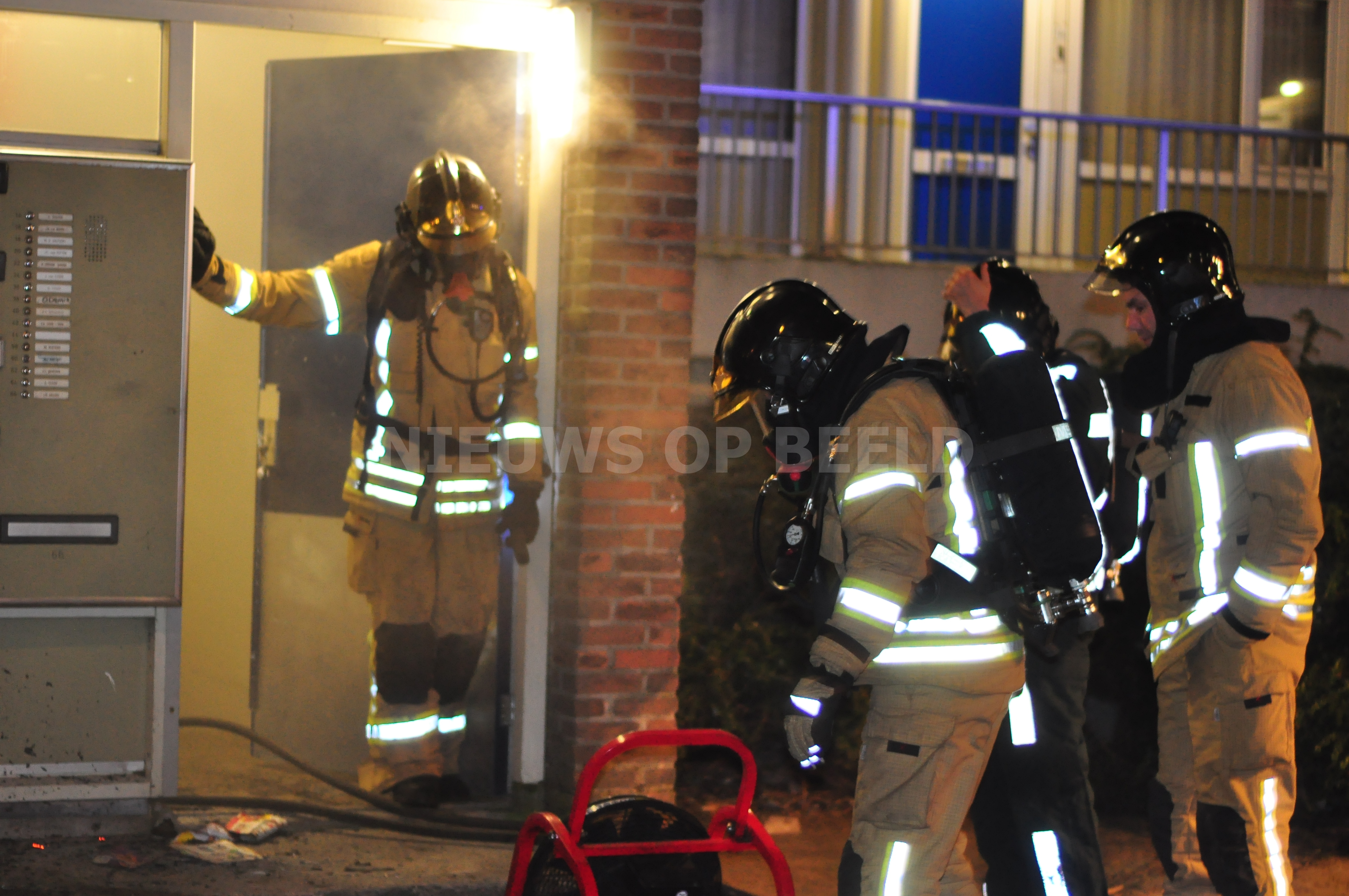 De melder van de brand ademde in het portiek te veel rook in en werd opgevangen door de hulpdiensten. Brandweerlieden hebben de stapel met kranten geblust waarna het portiek geventileerd kon worden. Omdat de grote hoeveelheid rook naar de woningen trok moest de brandweer snel ventileren.