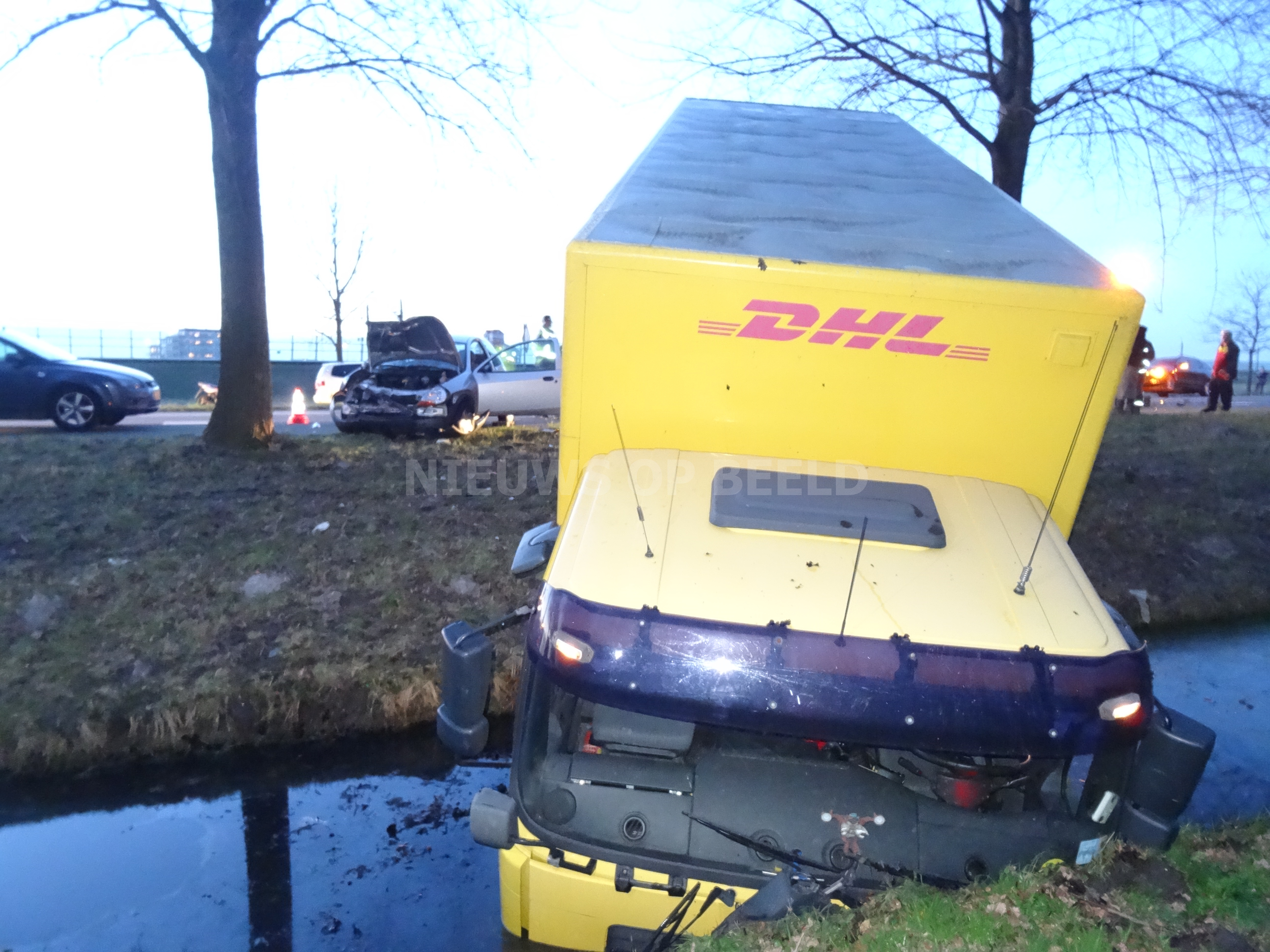 Zoetermeer – Op de N209 heeft dinsdagavond tussen Zoetermeer en Benthuizen een ernstig ongeval plaatsgevonden. Een personenauto kwam door een onbekende reden op de verkeerde weghelft terecht waardoor een vrachtwagen de auto ramde, de vrachtwagen kreeg een lekke band waardoor deze weer tegen een andere personenauto aanreed, uiteindelijk kwam de vrachtwagen in de sloot terecht.
