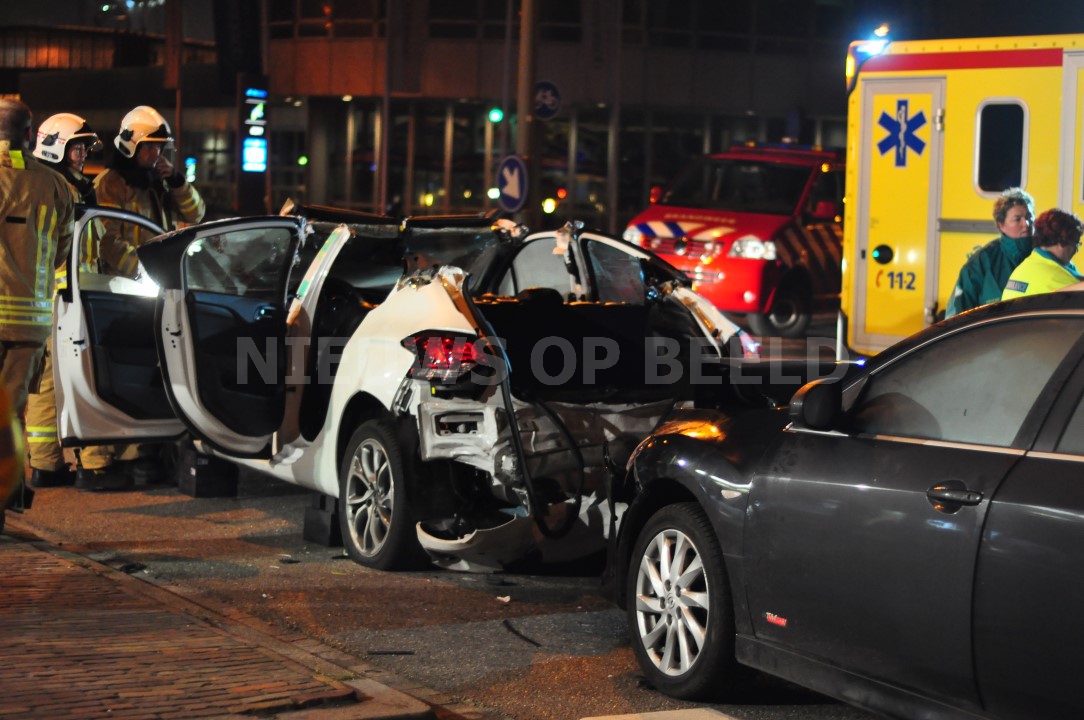Schiedam – Drie personen zijn dinsdagavond gewond geraakt na een flinke aanrijding op de Admiraal De Ruyterstraat in Schiedam. Twee personenauto’s klapte elkaar waarna een persoon bekneld kwam te zitten.