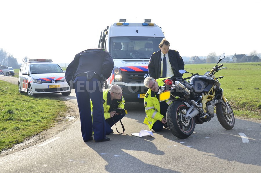 De motorrijder raakte de macht over het stuur kwijt, kwam ten val, en kwam ternauwernood net voor een sloot tot stilstand. Het slachtoffer is in de ambulance onderzocht en overgebracht naar het ziekenhuis maar op het eerste gezicht leken de verwondingen mee te vallen. Ondertussen keek de politie uit naar de doorgereden auto waar eigenlijk niet meer over bekend was dan dat het een personenauto betrof met linksvoor schade. Op een parkeerterrein van een school in Gouda werd later een auto aangetroffen die mogelijk bij de aanrijding betrokken was. De politie heeft onderzoek gedaan naar de auto, of de auto daadwerkelijk betrokken was bij het ongeval is niet bekend.