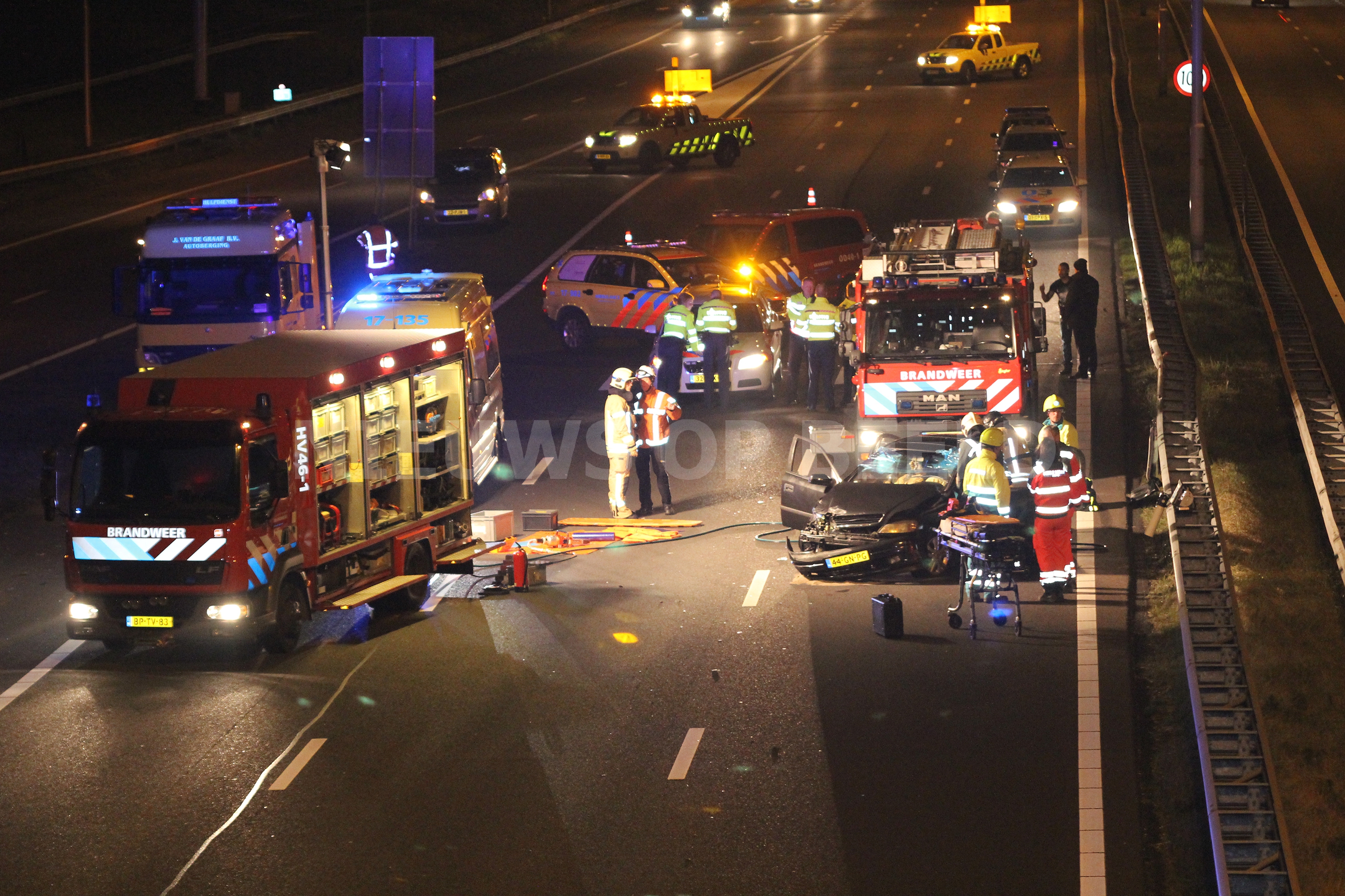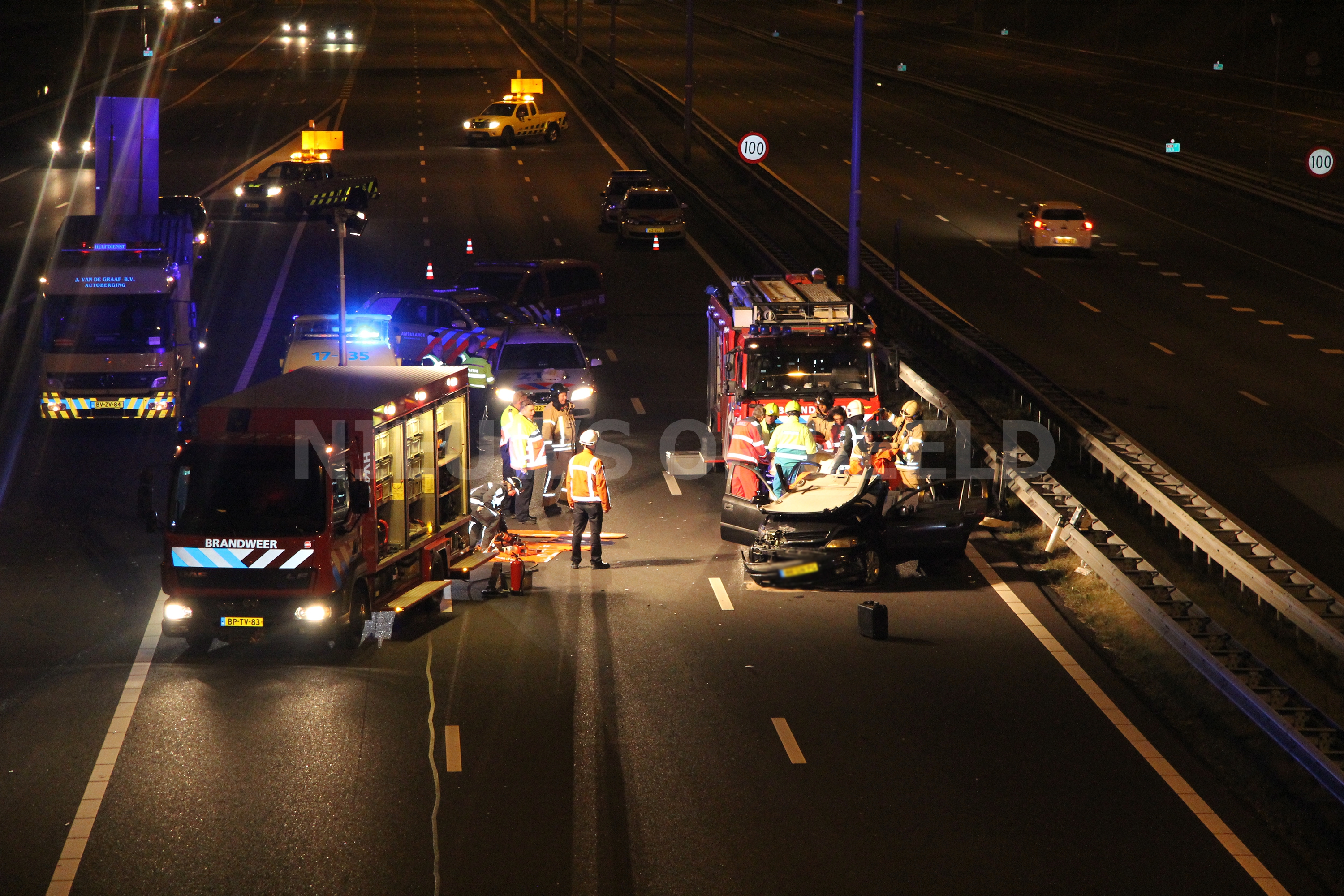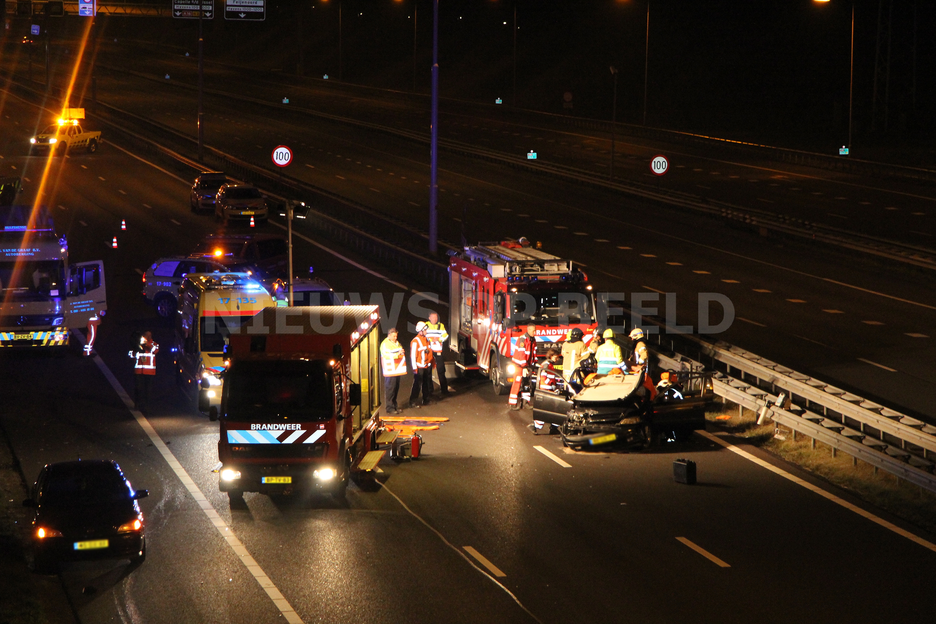Rotterdam – Een bestuurster van een personenauto is in de nacht van zaterdag op zondag gewond geraakt na een éénzijdig ongeval op de A16 richting Dordrecht. De vrouw kwam door een nog onbekende oorzaak in de vangrail terecht voordat het voertuig tot stilstand kwam. De vrouw raakte dusdanig gewond dat het Mobiel Medisch Team ter plaatse kwam om het ambulance- en brandweerpersoneel te assisteren. Nadat het dak was verwijderd van het voertuig kon de vrouw uit haar benarde positie worden bevrijdt.