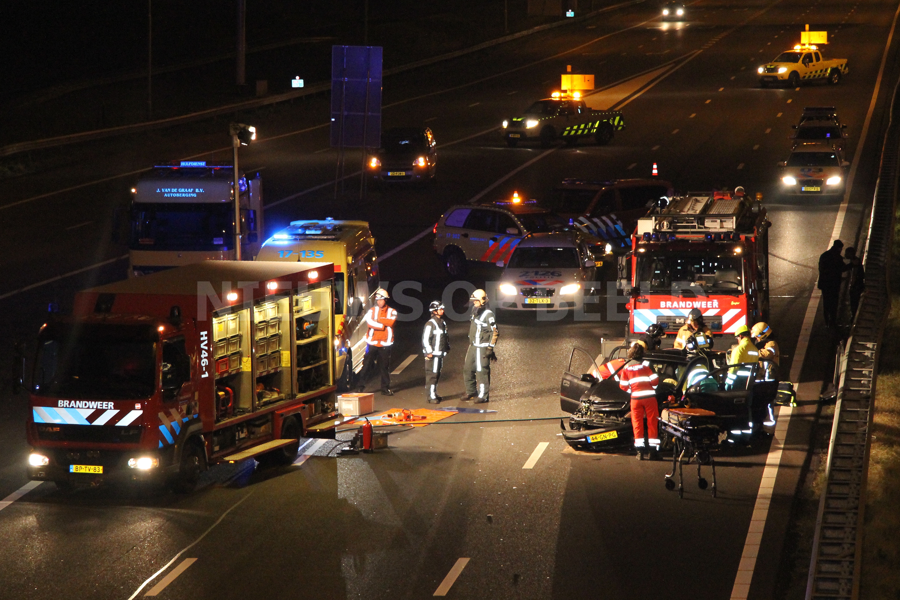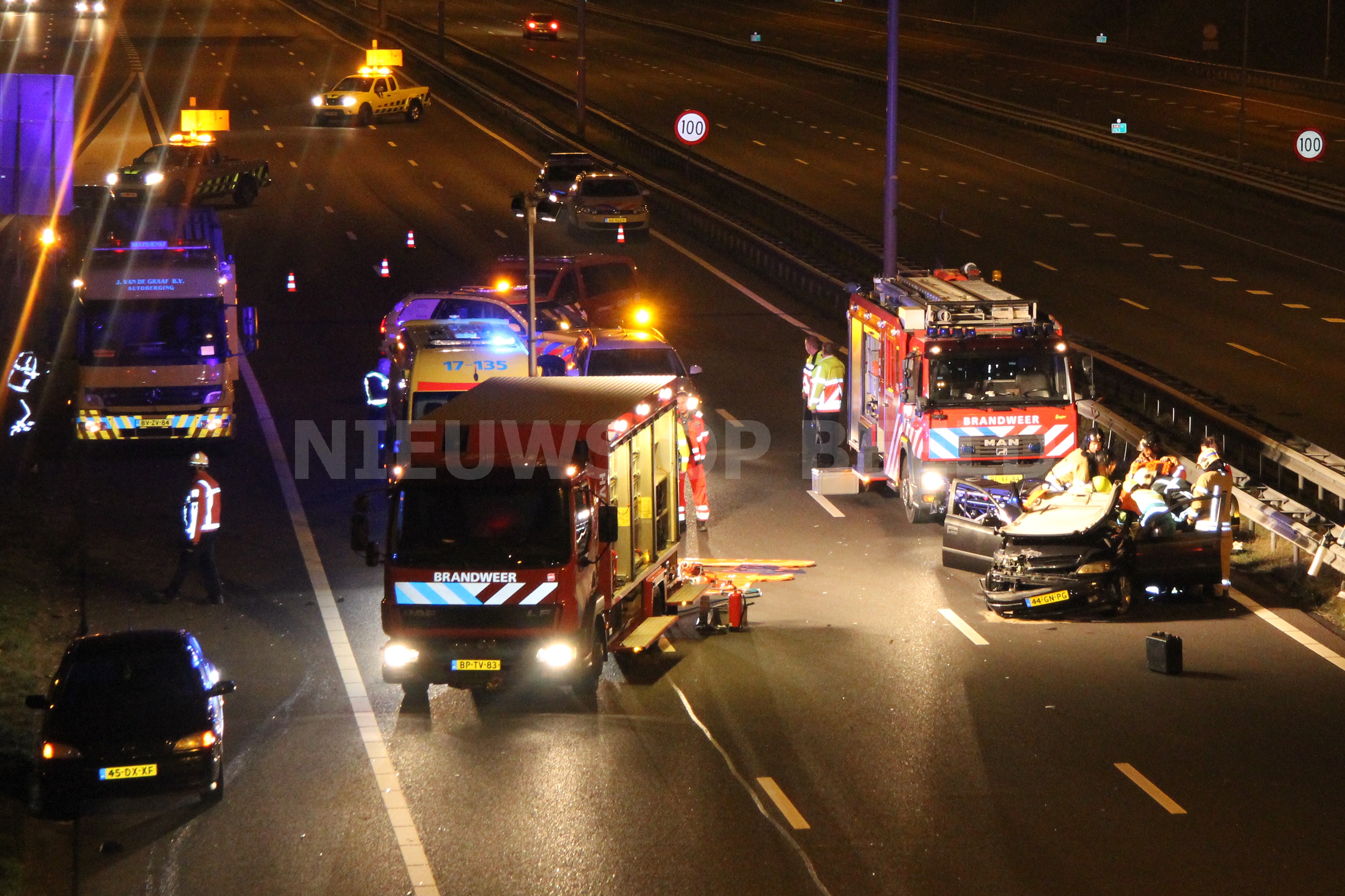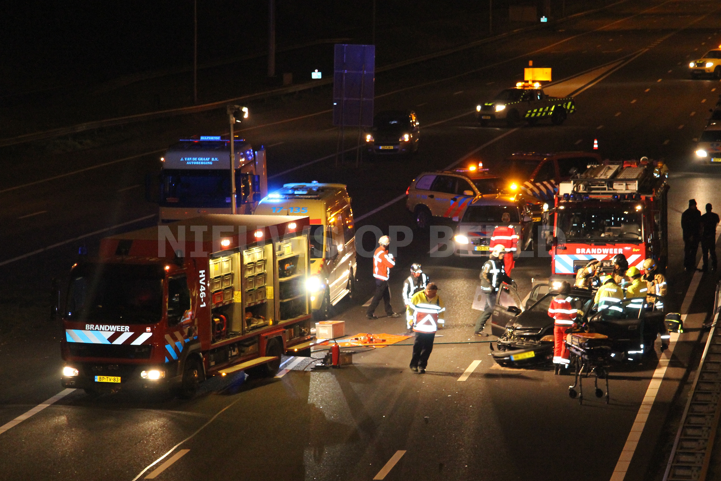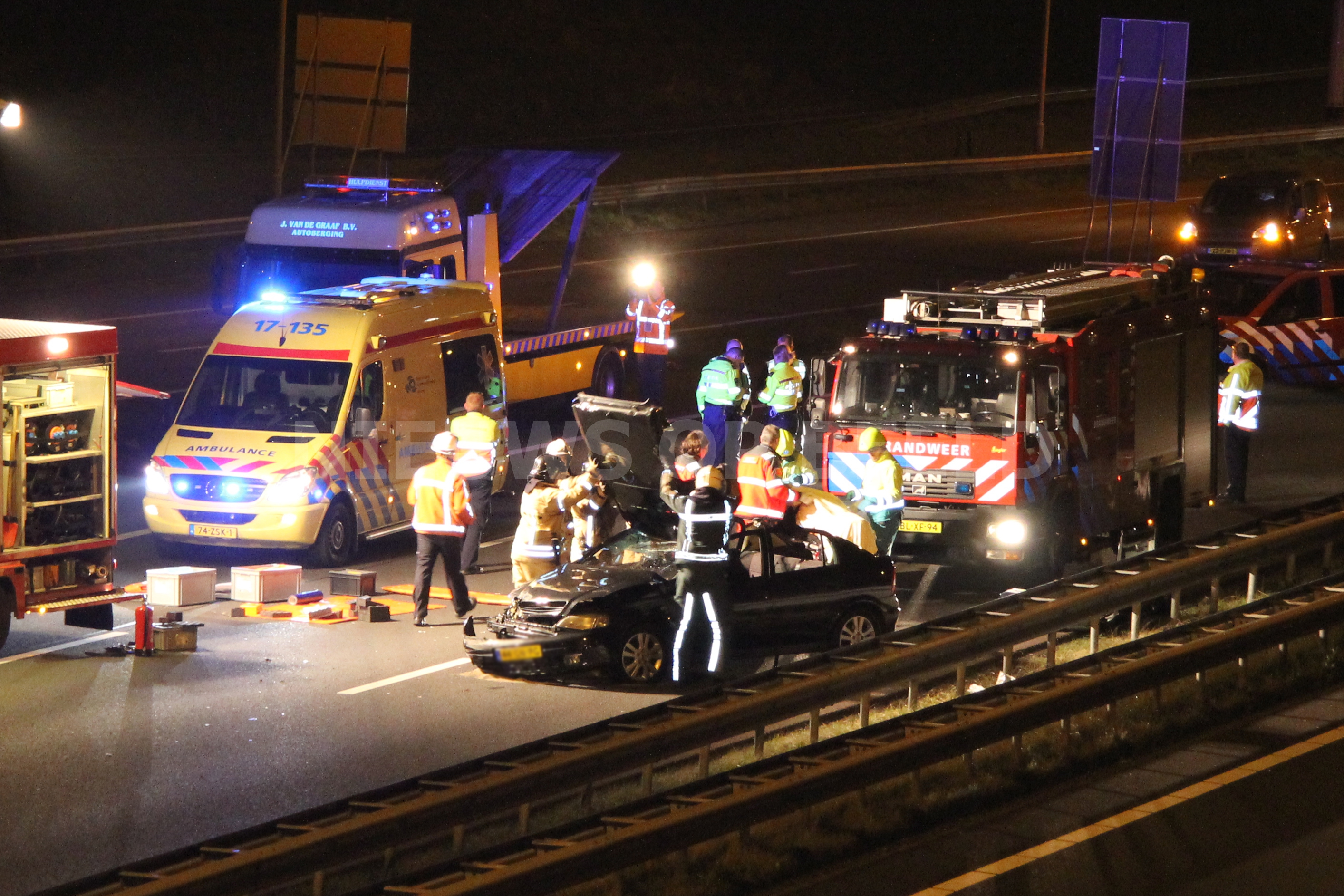 Rotterdam – Een bestuurster van een personenauto is in de nacht van zaterdag op zondag gewond geraakt na een éénzijdig ongeval op de A16 richting Dordrecht. De vrouw kwam door een nog onbekende oorzaak in de vangrail terecht voordat het voertuig tot stilstand kwam. De vrouw raakte dusdanig gewond dat het Mobiel Medisch Team ter plaatse kwam om het ambulance- en brandweerpersoneel te assisteren. Nadat het dak was verwijderd van het voertuig kon de vrouw uit haar benarde positie worden bevrijdt.