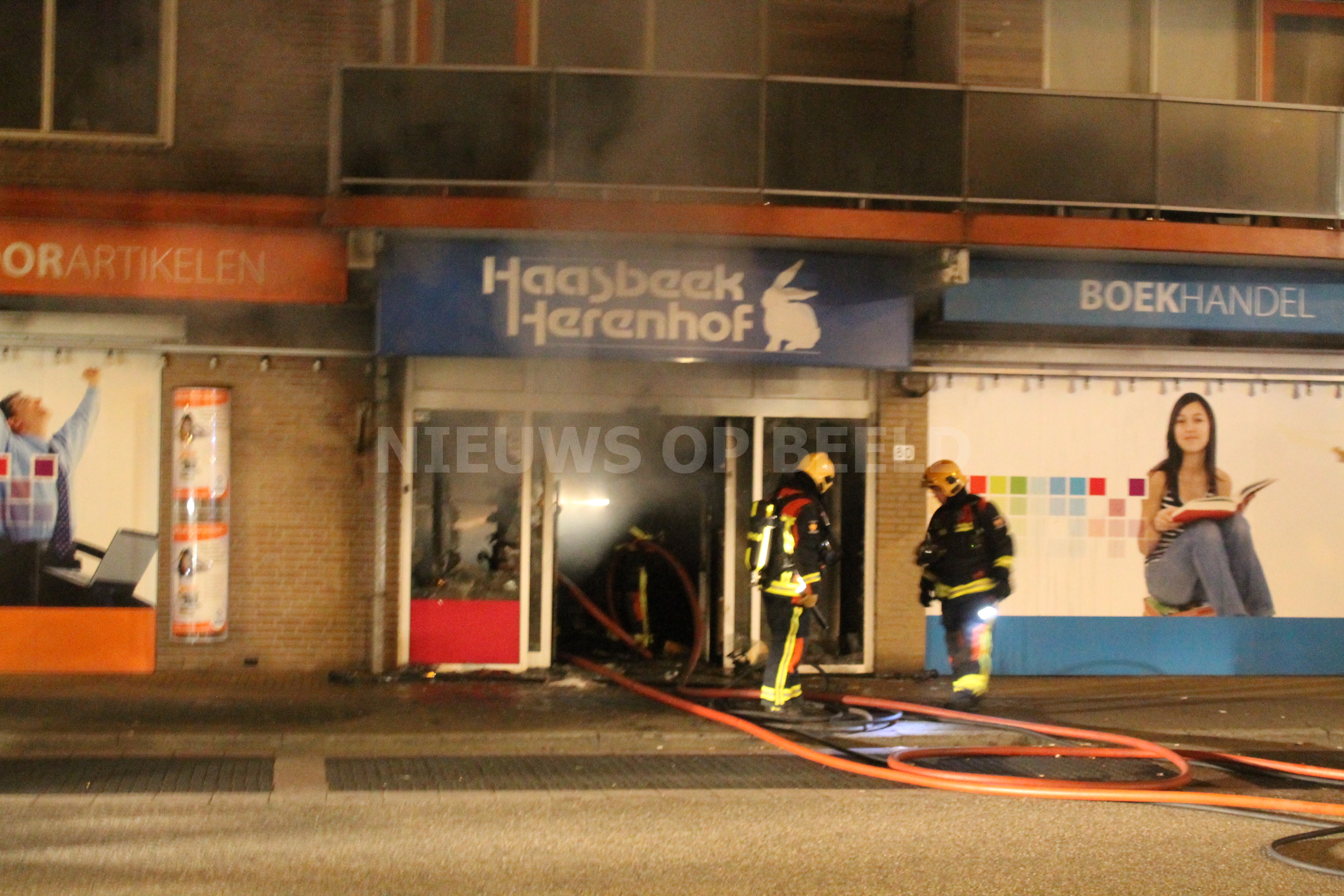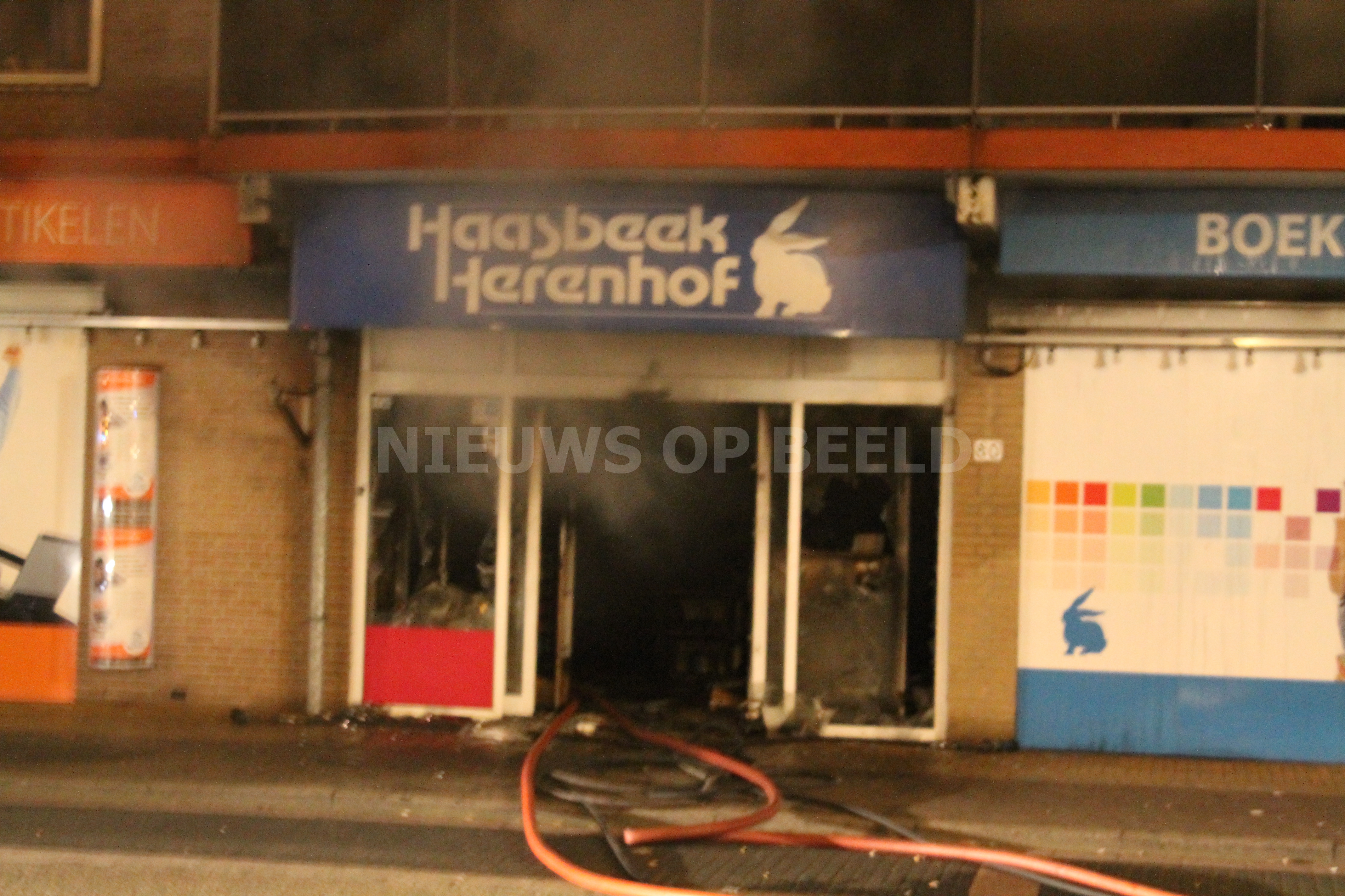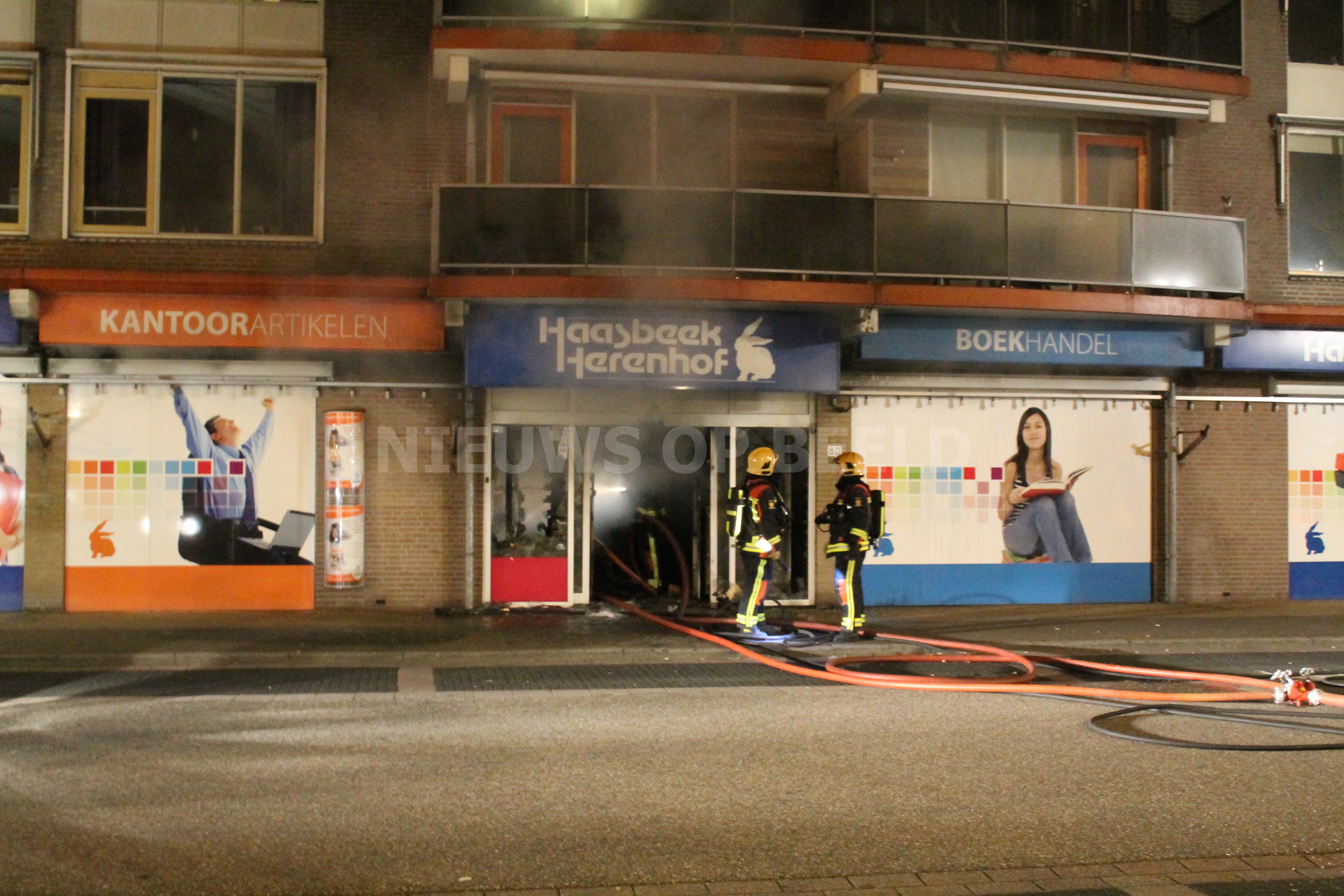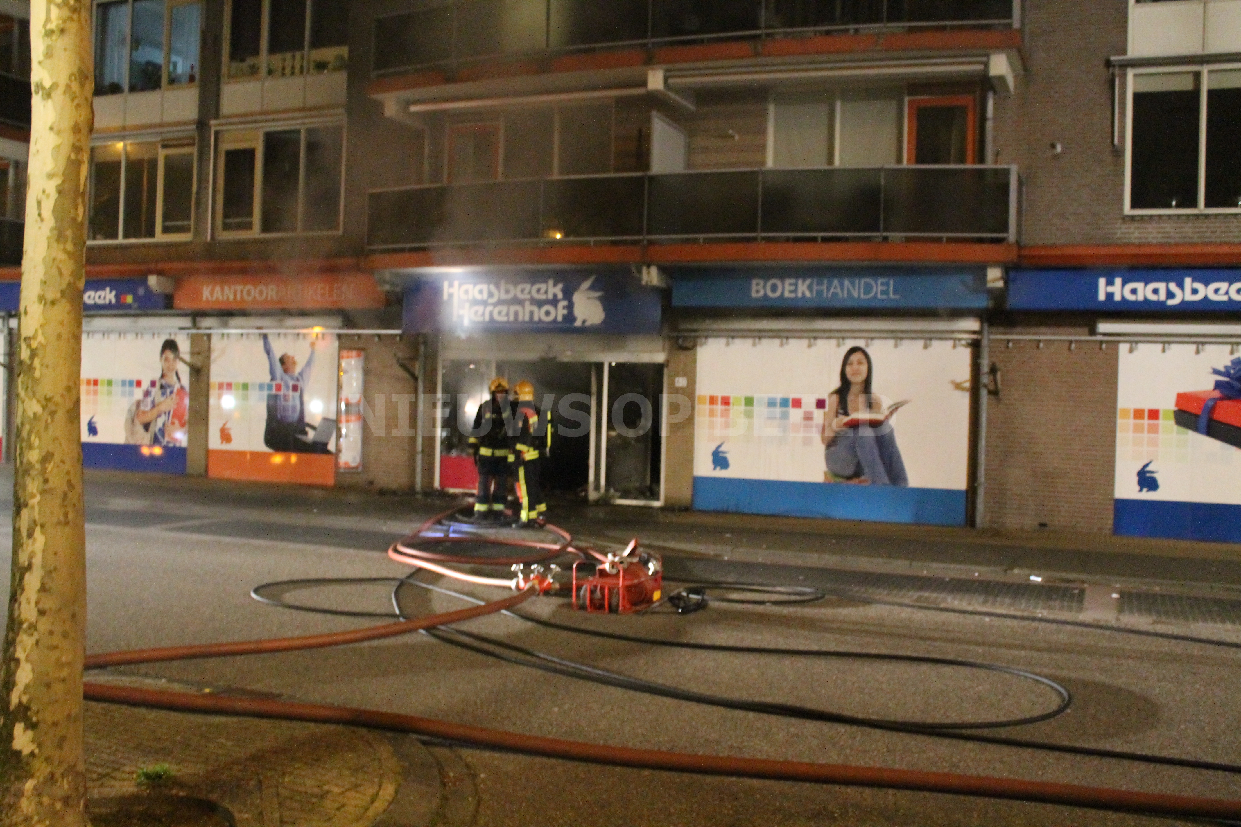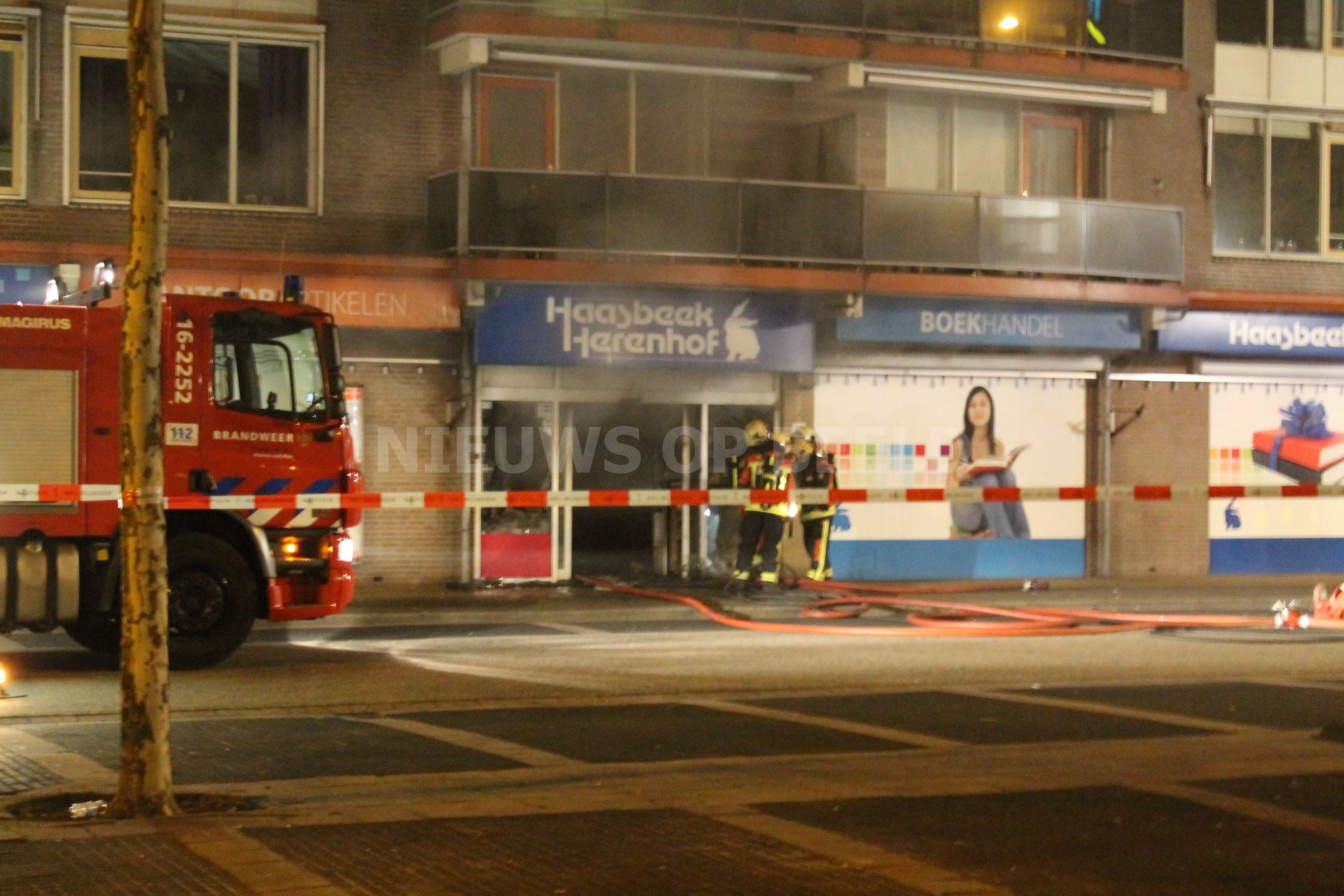 Alphen aan den Rijn – Een felle brand heeft zaterdagavond laat een boekhandel compleet in de as gelegd. Omstreeks kwart over elf brak de brand uit in Winkelcentrum de Herenhof. De brand ging gepaard met een flinke rookontwikkeling. Door deze rook moesten de bewoners van de bovengelegen appartementen hun woningen halsoverkop verlaten. De brandweer moest daar een vrouw van haar balkon redden met een ladderwagen.