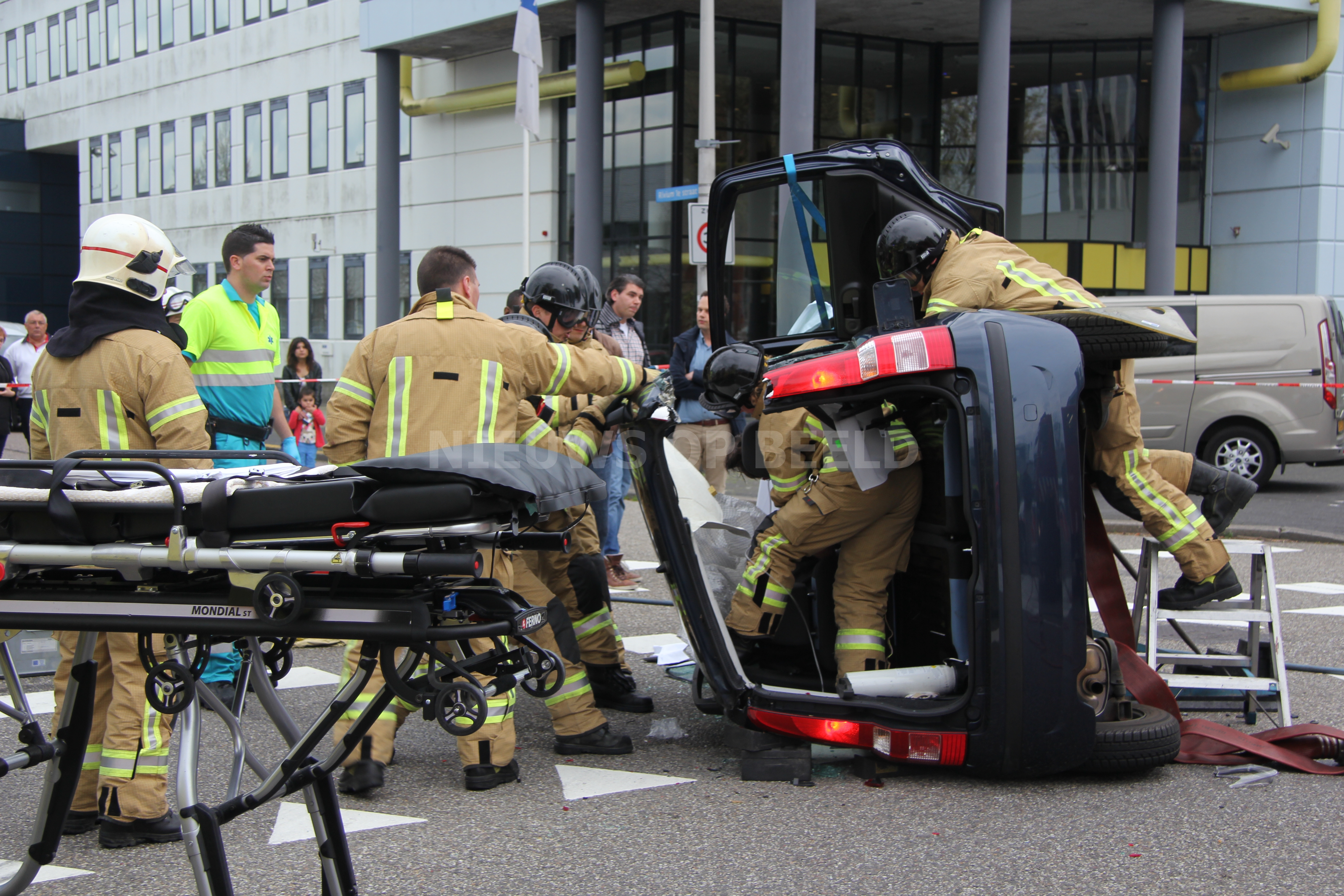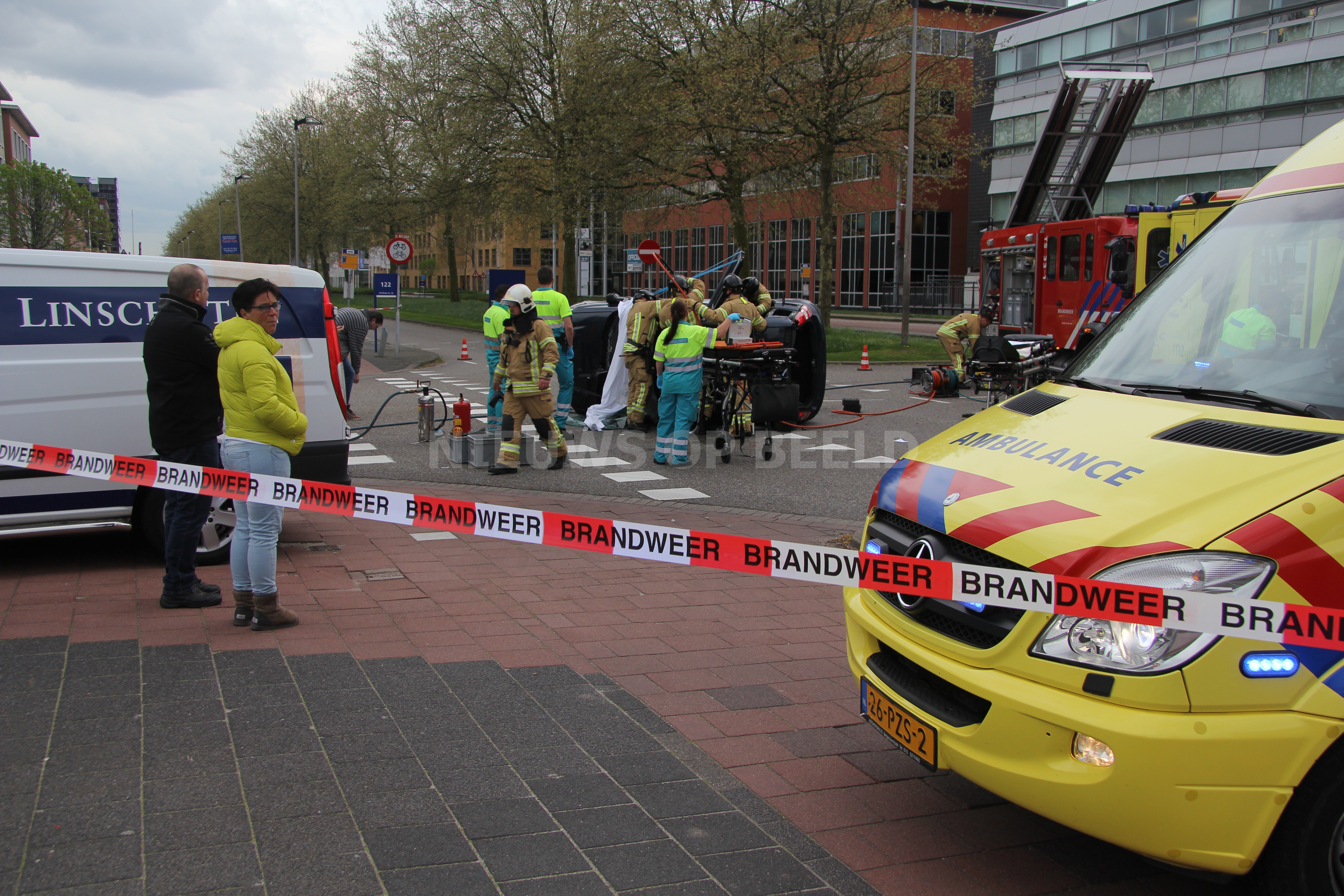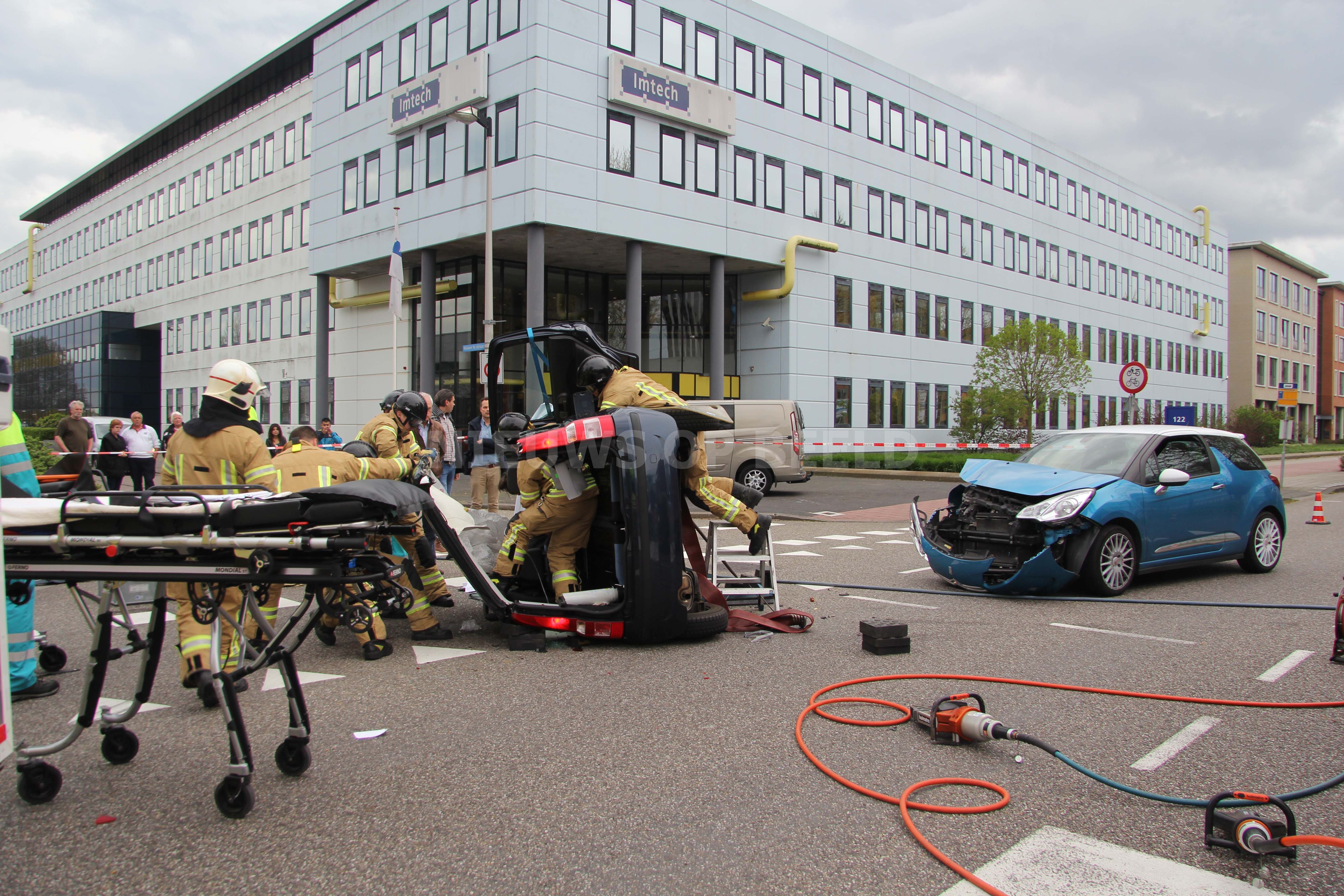 Één inzittende kon het voertuig zelf verlaten nadat het dak was verwijderd. De ander is door het ambulancepersoneel gestabiliseerd en op een wervelplank uit het voertuig gehaald. Daarna zijn beide slachtoffers met onbekende verwondingen naar het ziekenhuis gebracht. De politie heeft ter plaatse een sporenonderzoek gestart naar de toedracht van het ongeval. De oorzaak is nog niet bekend.