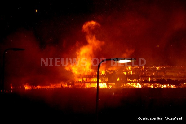 Agenten die vanaf de Goejanverwelledijk meters hoge vlammen zagen meldde dit direct aan de meldkamer, op dat moment was er nog geen melding van brand gedaan. Bij aankomst van de brandweer bleek het gebouw al niet meer te redden. De brandweer heeft de grootste vlammen gedoofd en laat het vuur verder gecontroleerd uit laten branden. Het pand moet als verloren worden beschouwd. Op oudjaarsnacht van 2013 naar 2014 woedde in het pand ook een grote brand. Toen werden de hulpdiensten bekogeld met voorwerpen en vuurwerk.