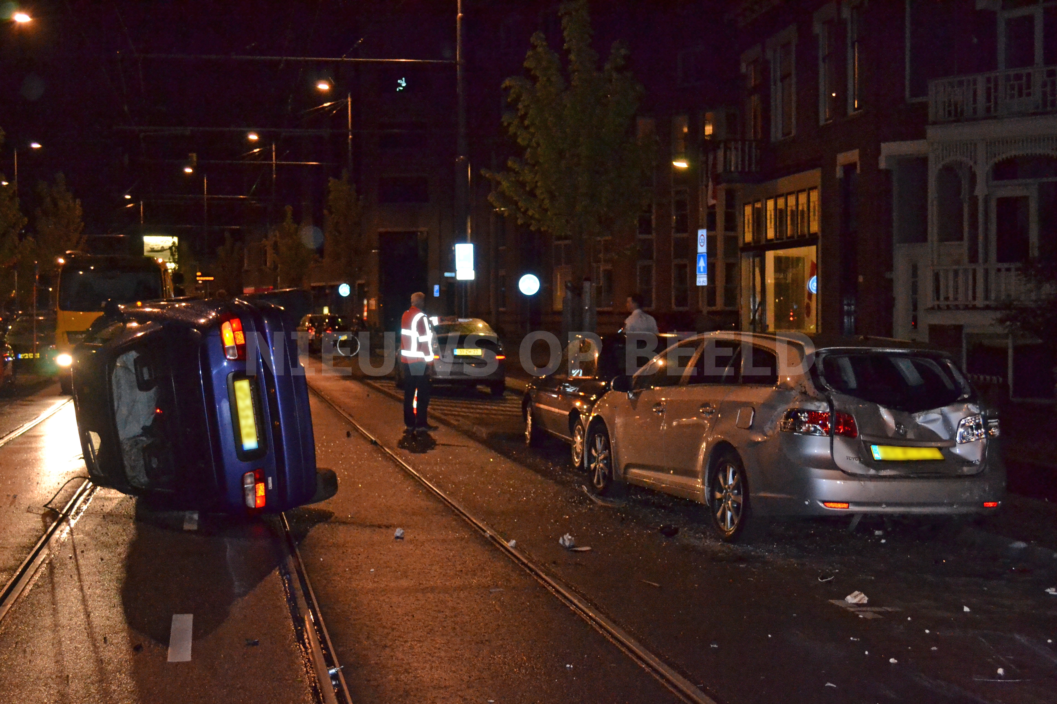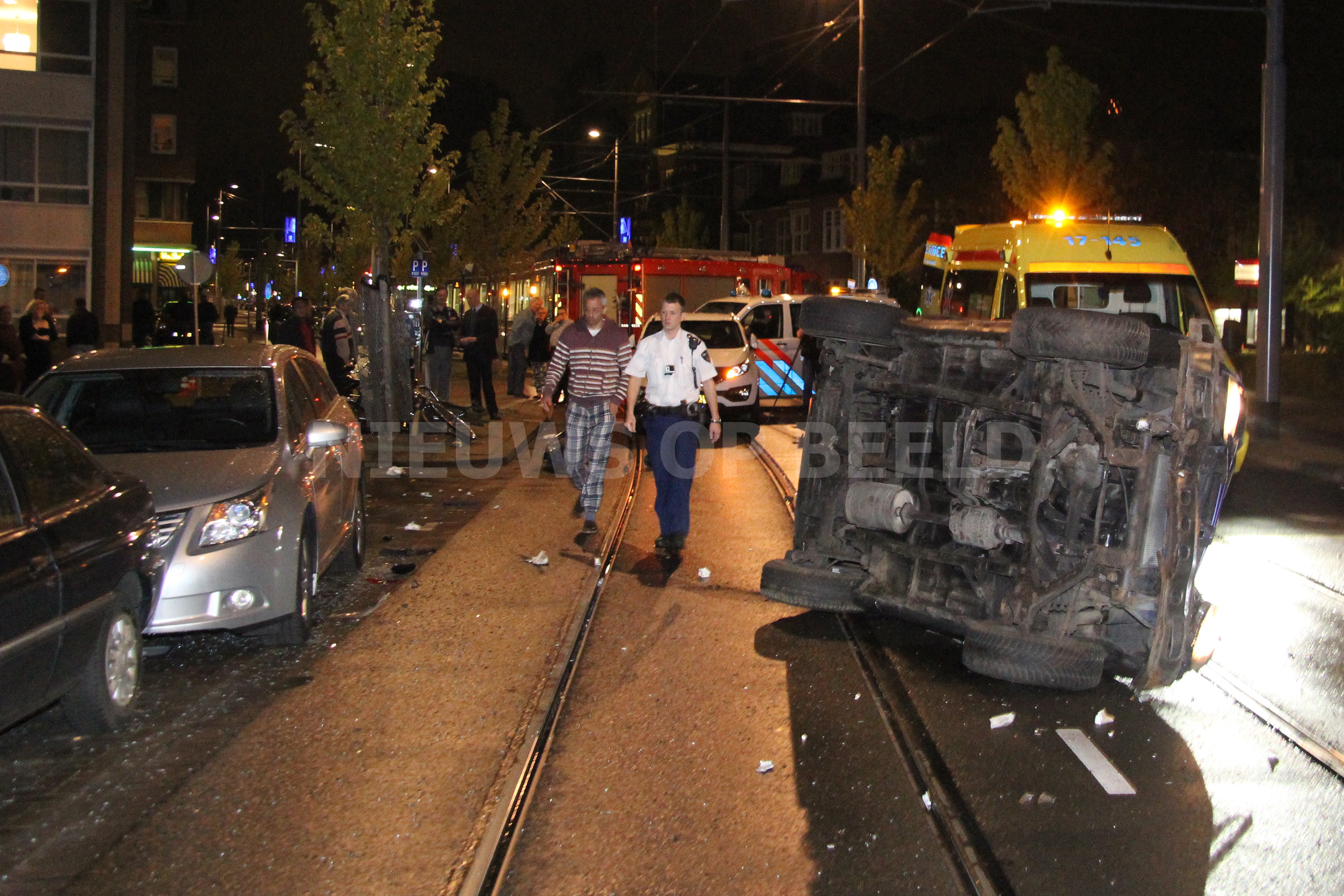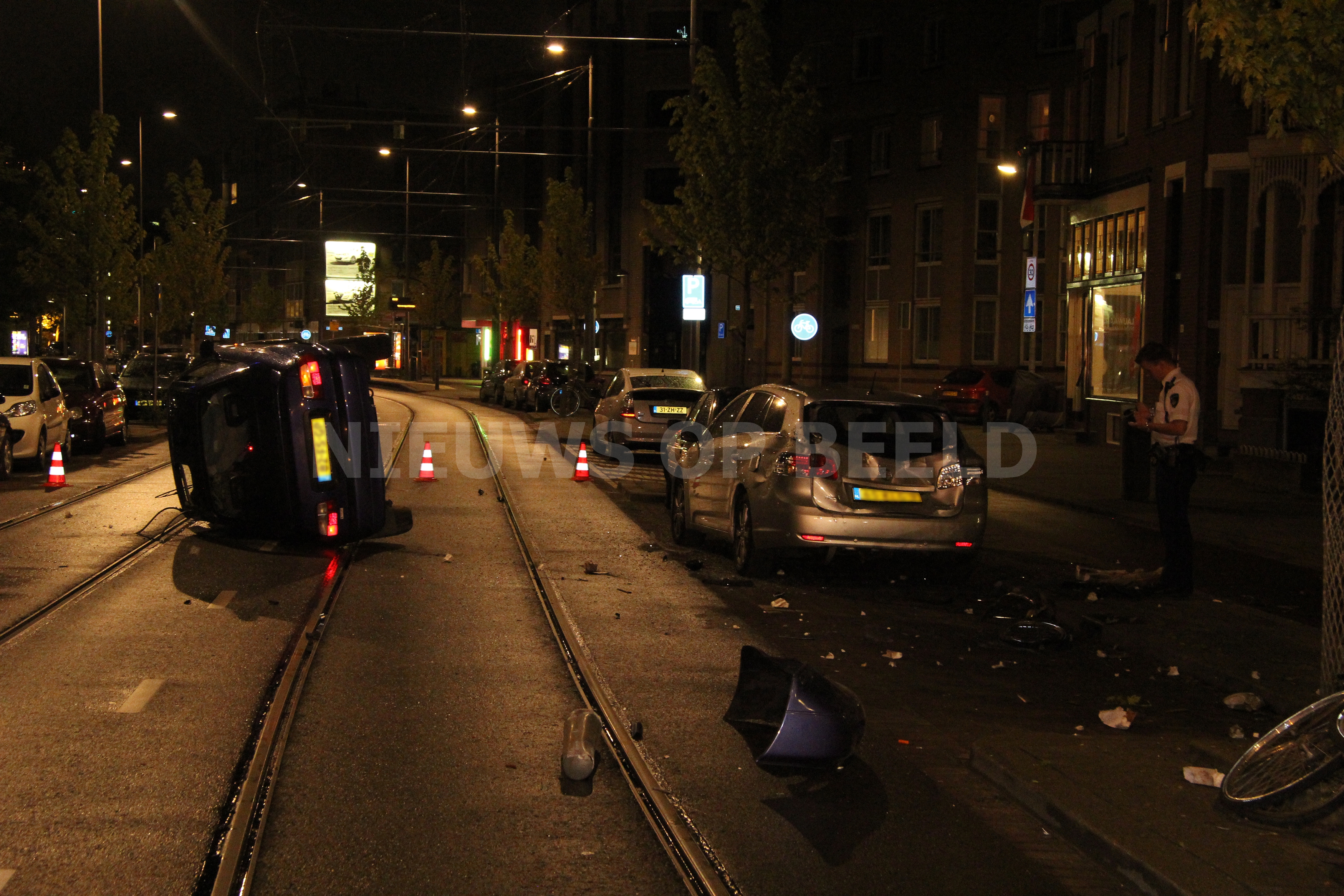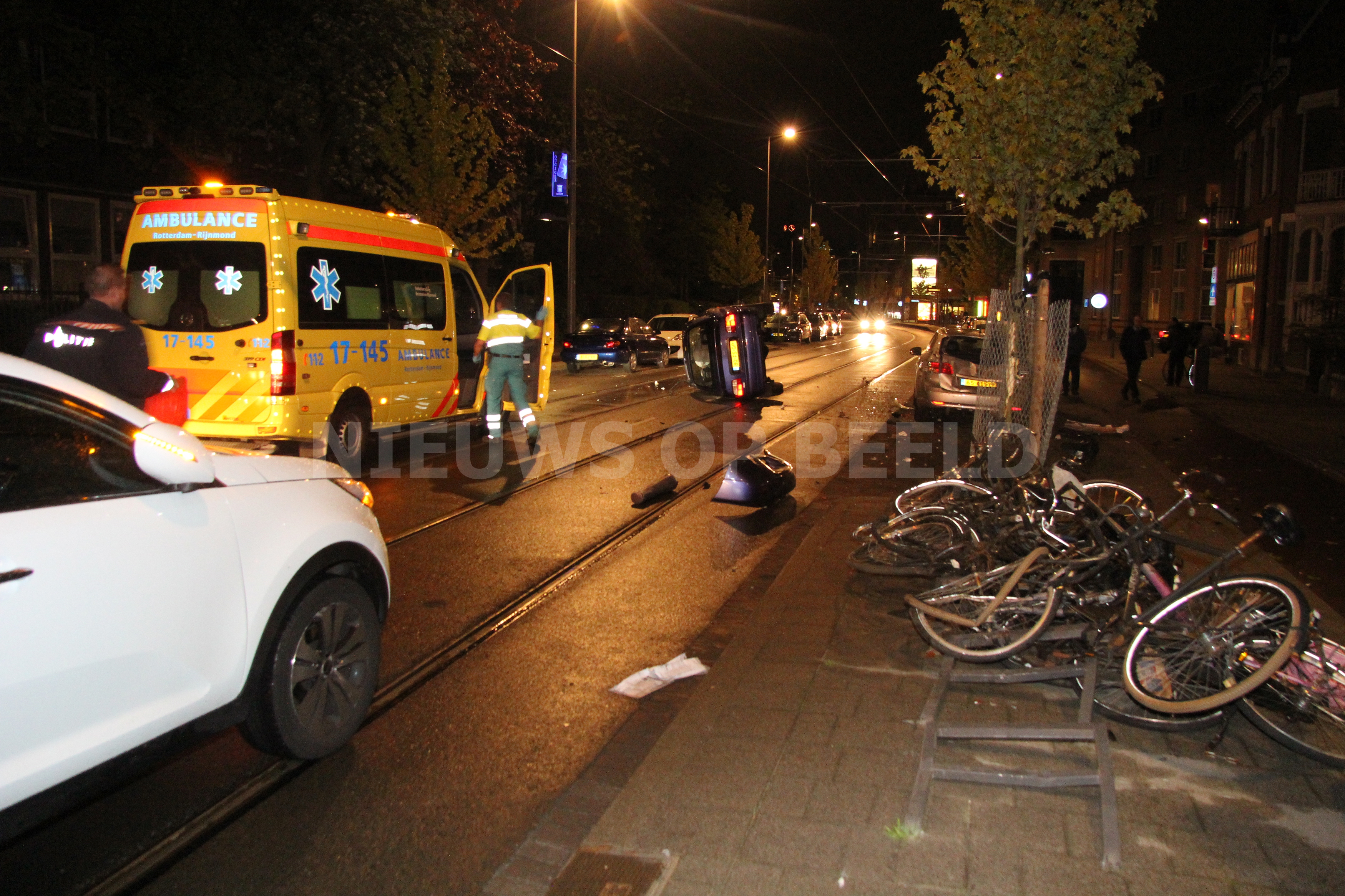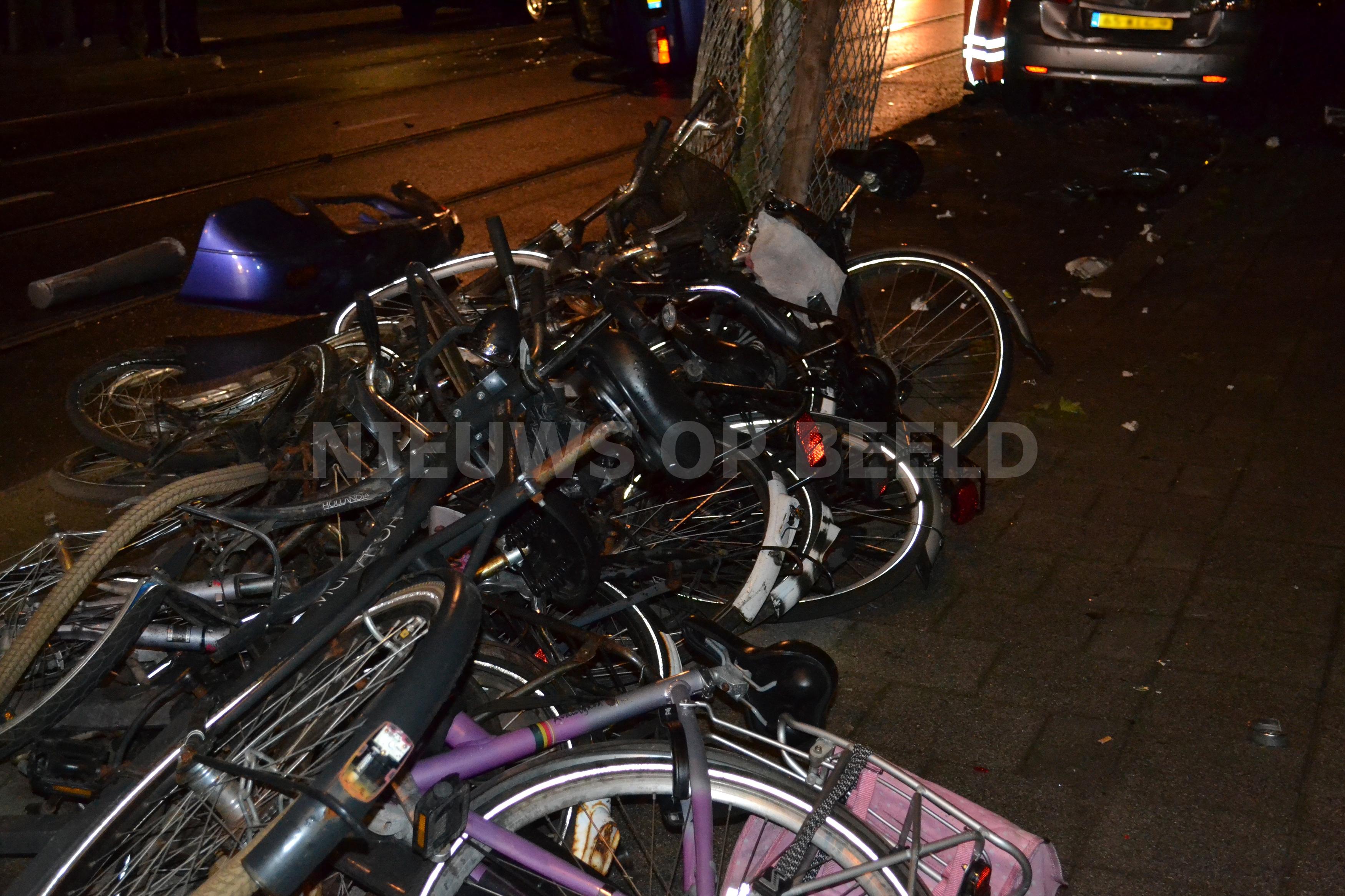 Rotterdam – Zaterdagavond heeft een automobilist op de Oudedijk voor een ravage gezorgd nadat deze tegen een paaltje was aangereden. De auto sloeg over de kop, ramde tientallen fietsen en kwam vervolgens tegen een auto aan., uiteindelijk kwam de auto tot stilstand op de trambaan. Diverse hulpdiensten kwamen ter plaatse, zo ook de brandweer omdat de bestuurder mogelijk bekneld zat.