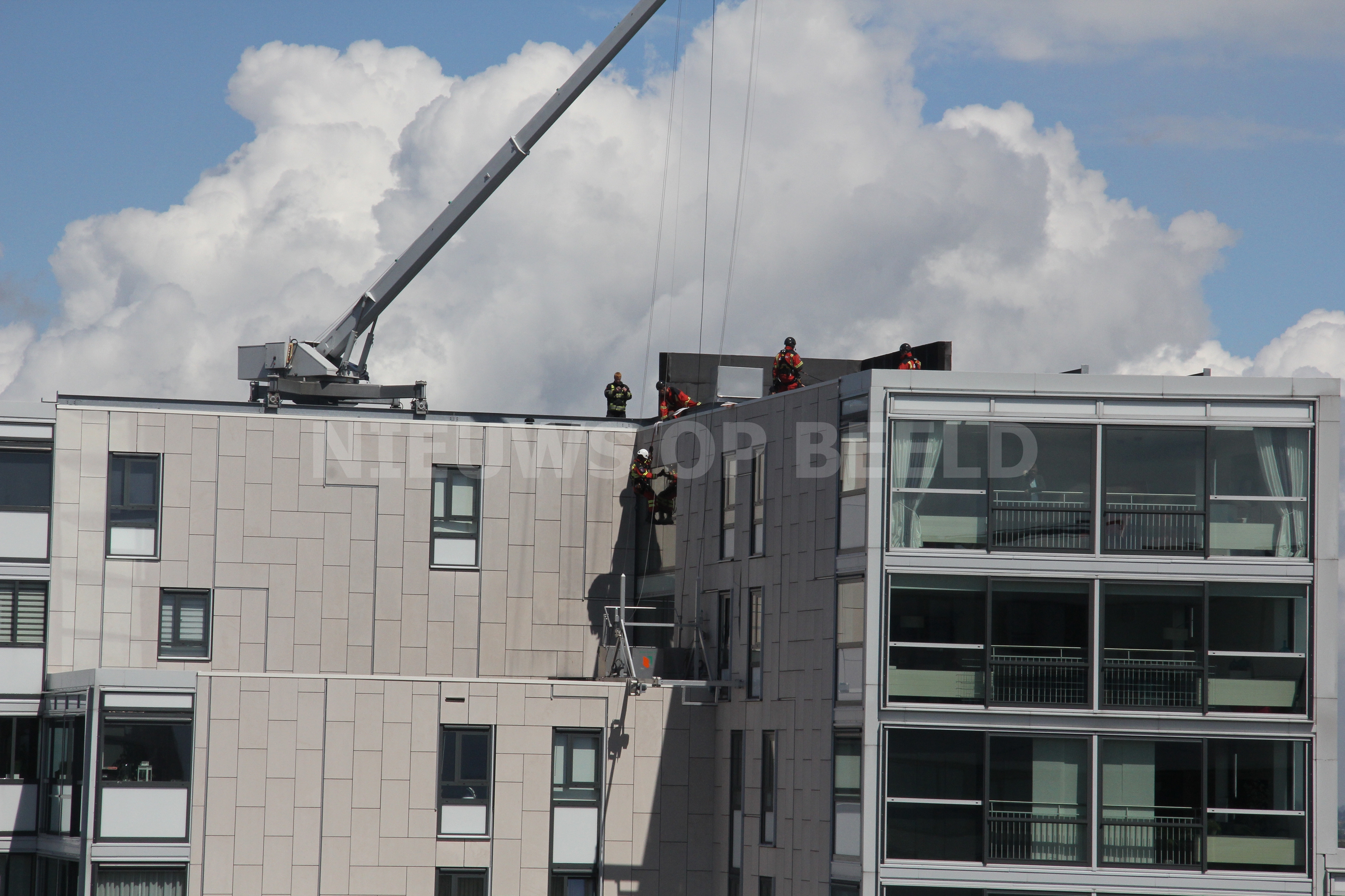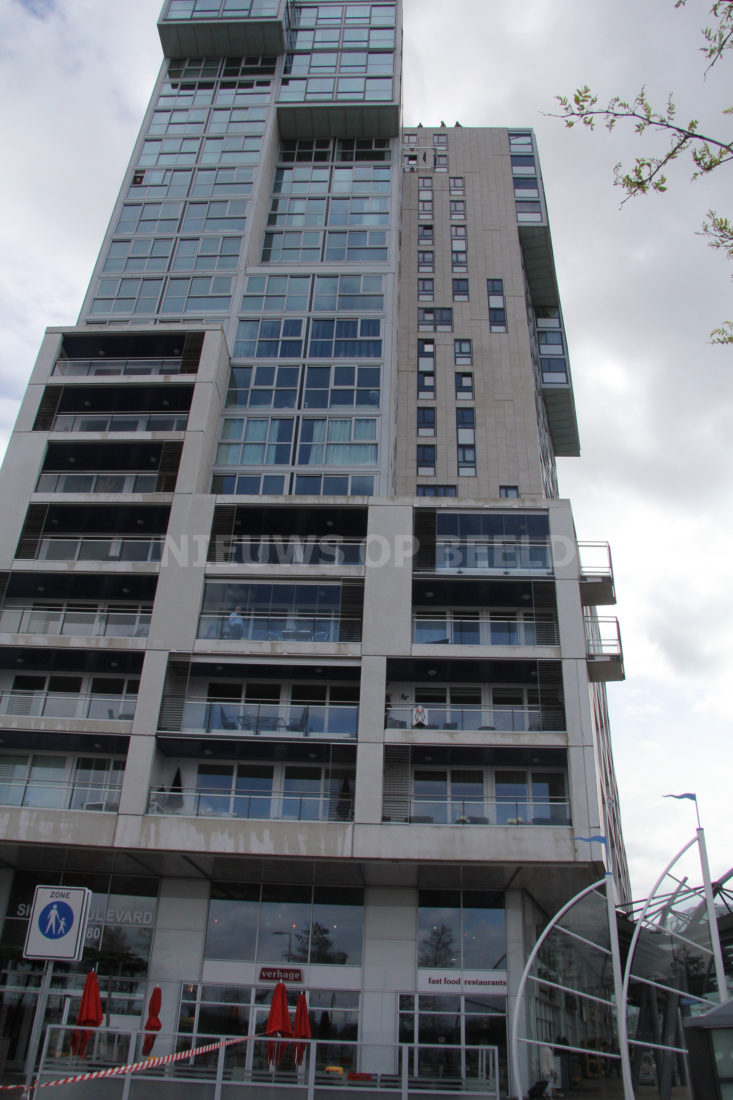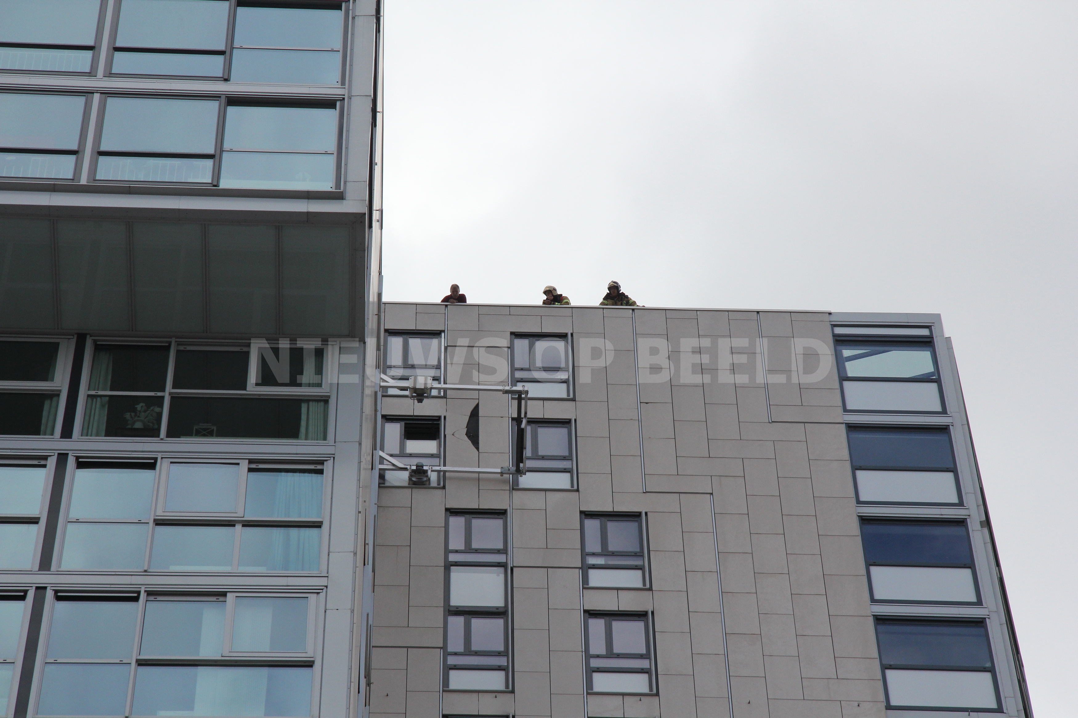 De glazenwassers waren op de 20e etage bezig met hun werkzaamheden toen een onweersbui roet in het eten gooide. Er stak een storm op die gepaard ging met veel wind, regen en onweer. Een speciaal hoogtereddingsteam van de brandweer kwam ter plaatse om het bakje te zekeren. Met touwen zijn zij afgedaald om kapotte gevelplaten te verwijderen en te borgen zodat deze niet naar beneden konden vallen.