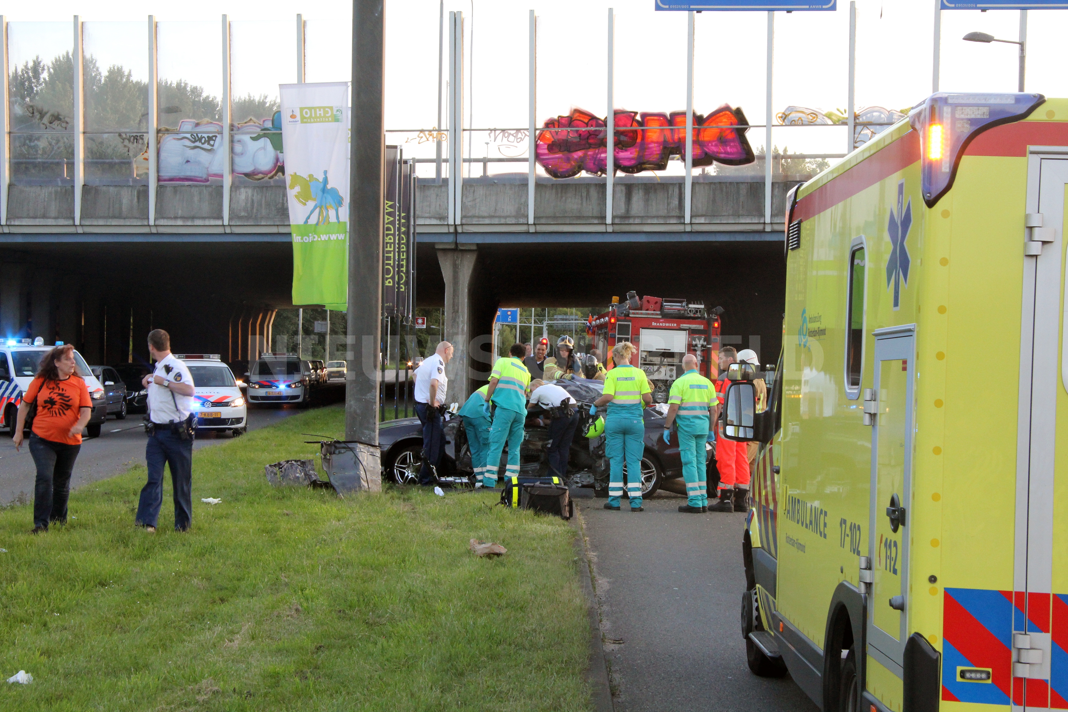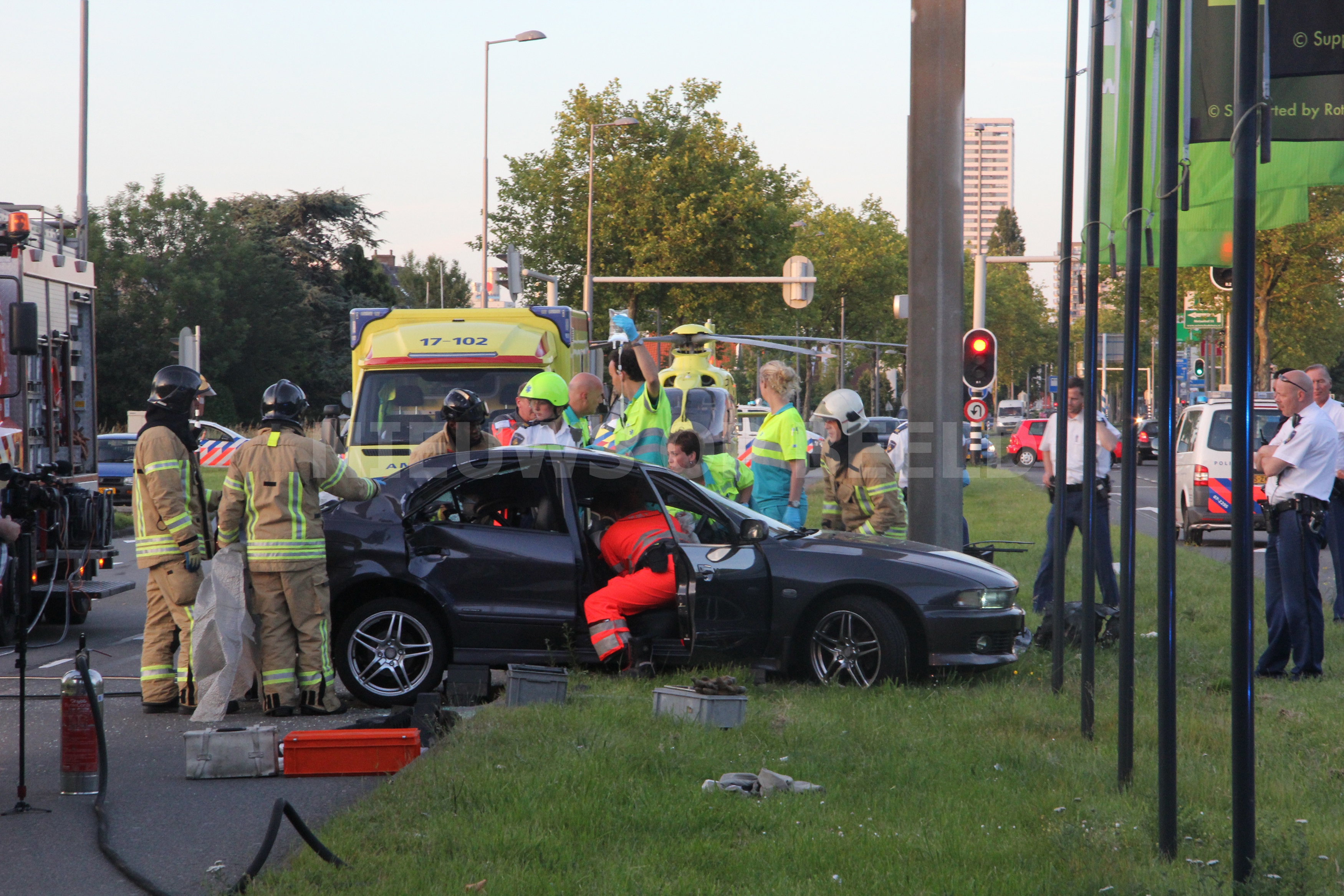 Rotterdam – Op woensdag 11 juni is een automobilist zwaargewond geraakt na een ongeval. De bestuurder raakte door een nog onbekende oorzaak in de slip en klapte volop tegen een paal van een bewegwijzeringsbord. Het slachtoffer raakte bekneld en de hulpdiensten zoals de brandweer, en het traumateam kwam ter plaatse. De brandweer heeft slachtoffer uit het wrak moeten knippen door deuren te verwijderen. Daarna is het slachtoffer op een wervelplank gestabiliseerd en met spoed naar het ziekenhuis vervoerd.