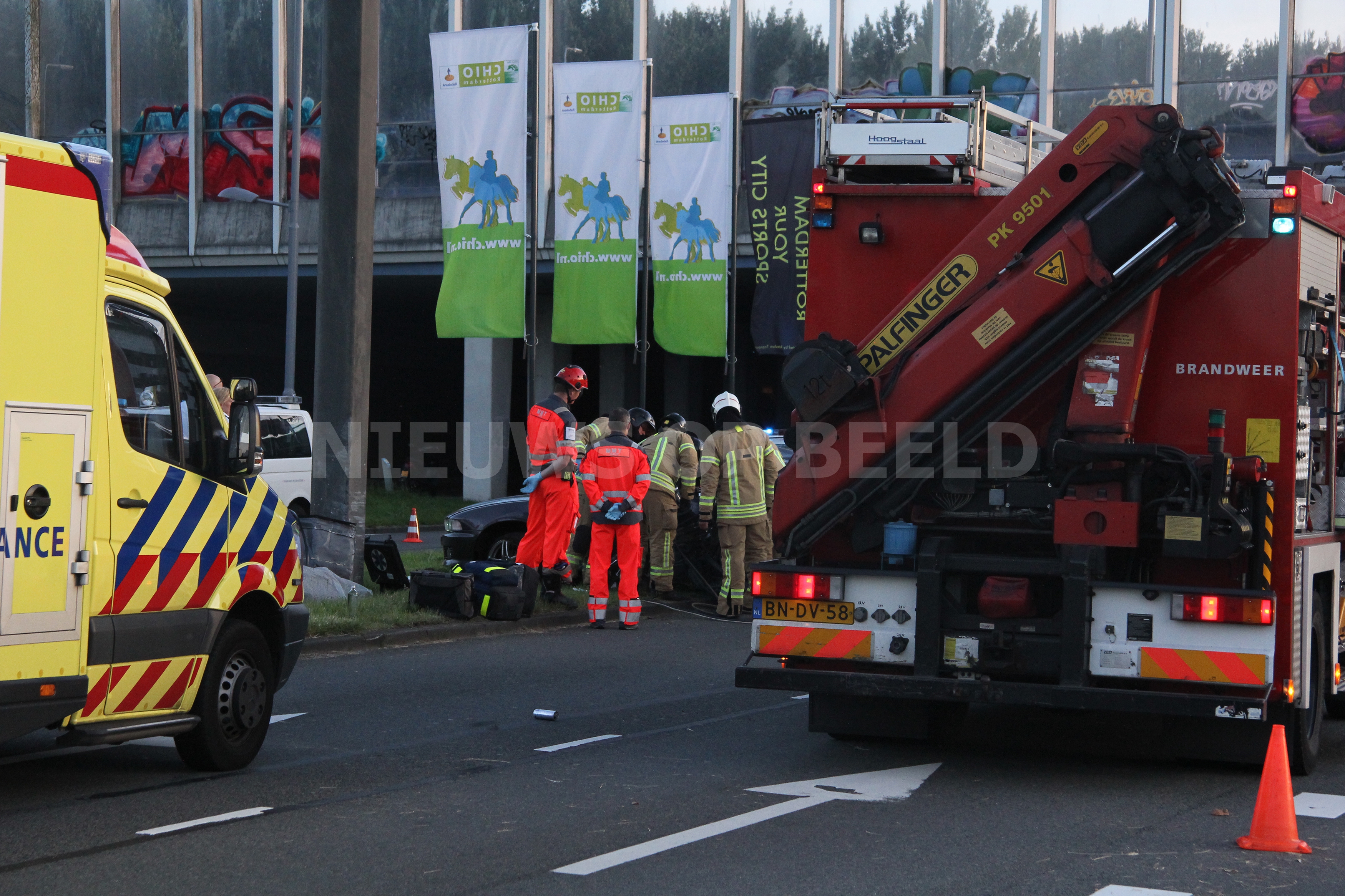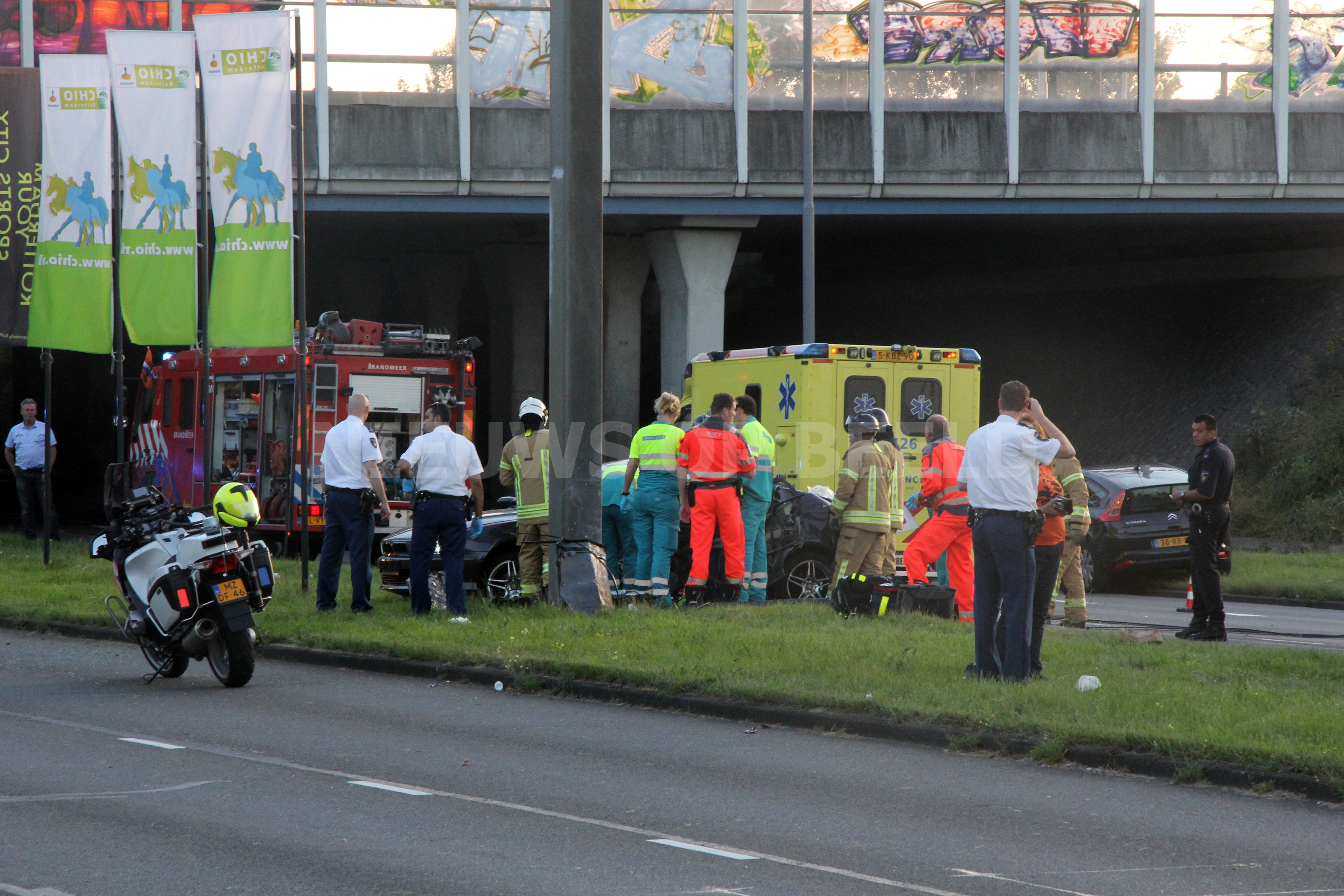 Man zwaargewond na ongeval tegen paal Hoofdweg Rotterdam [VIDEO]