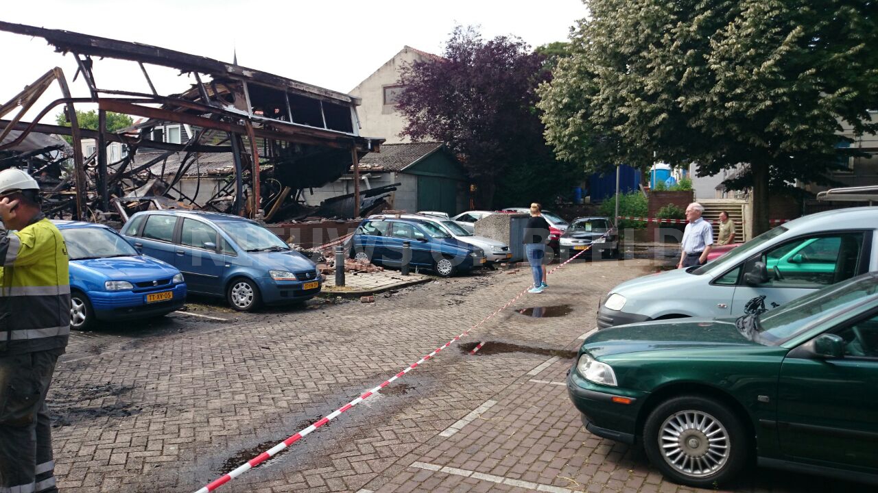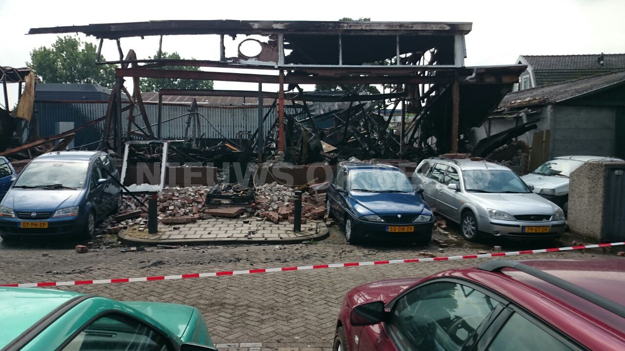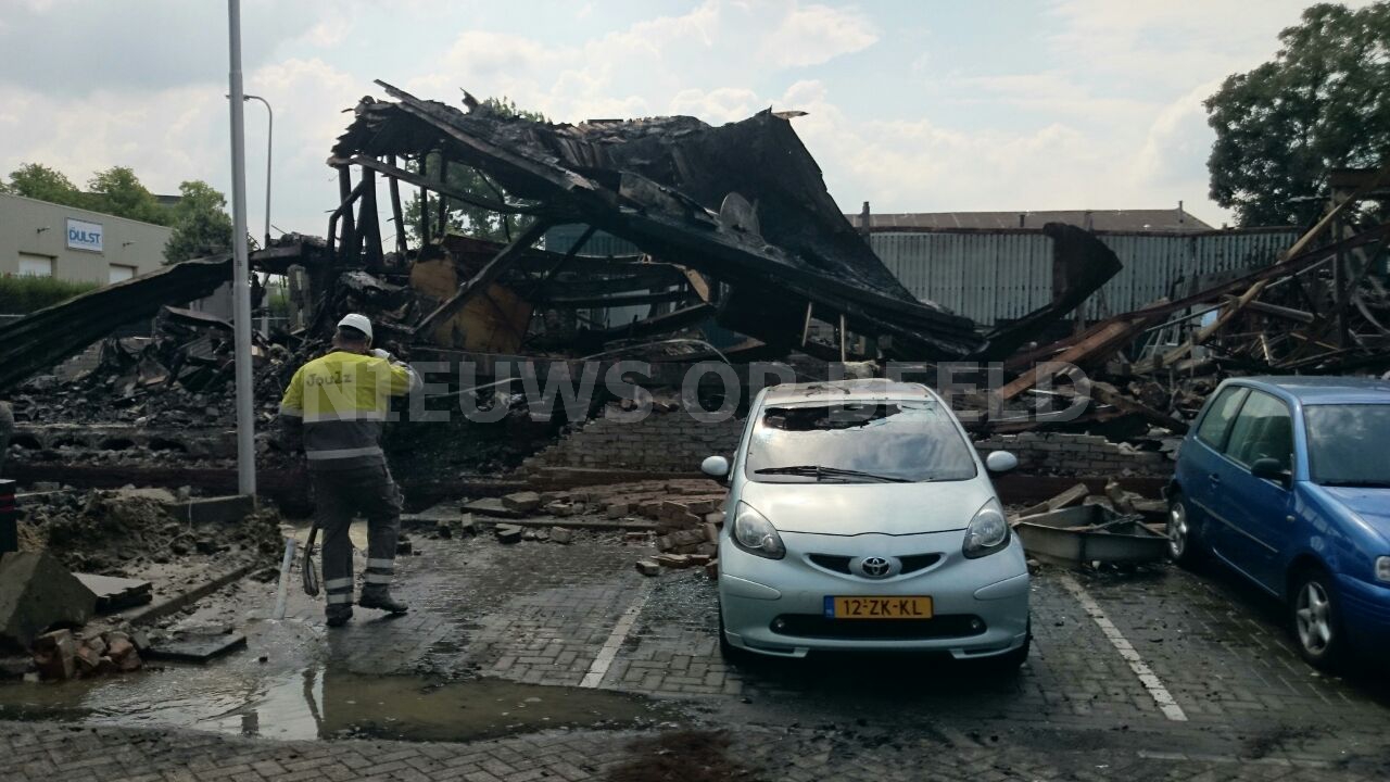 Ridderkerk – De schade aan het pand aan de Noordenweg die in de nacht van vrijdag op zaterdag compleet verwoest werd door een grote uitslaande brand is de volgende ochtend duidelijk zichtbaar. Het bedrijfspand is door de grote vlammenzee compleet uitgebrand, aangelegen bedrijven en woningen liepen eveneens schade op door de hitte. Diverse geparkeerde auto’s die voor het bedrijfspand stonden werden compleet vernield. De brand die rond 01:00 uitbrak was rond 03:30 meester, het heeft hierna nog uren geduurd om na te blussen.