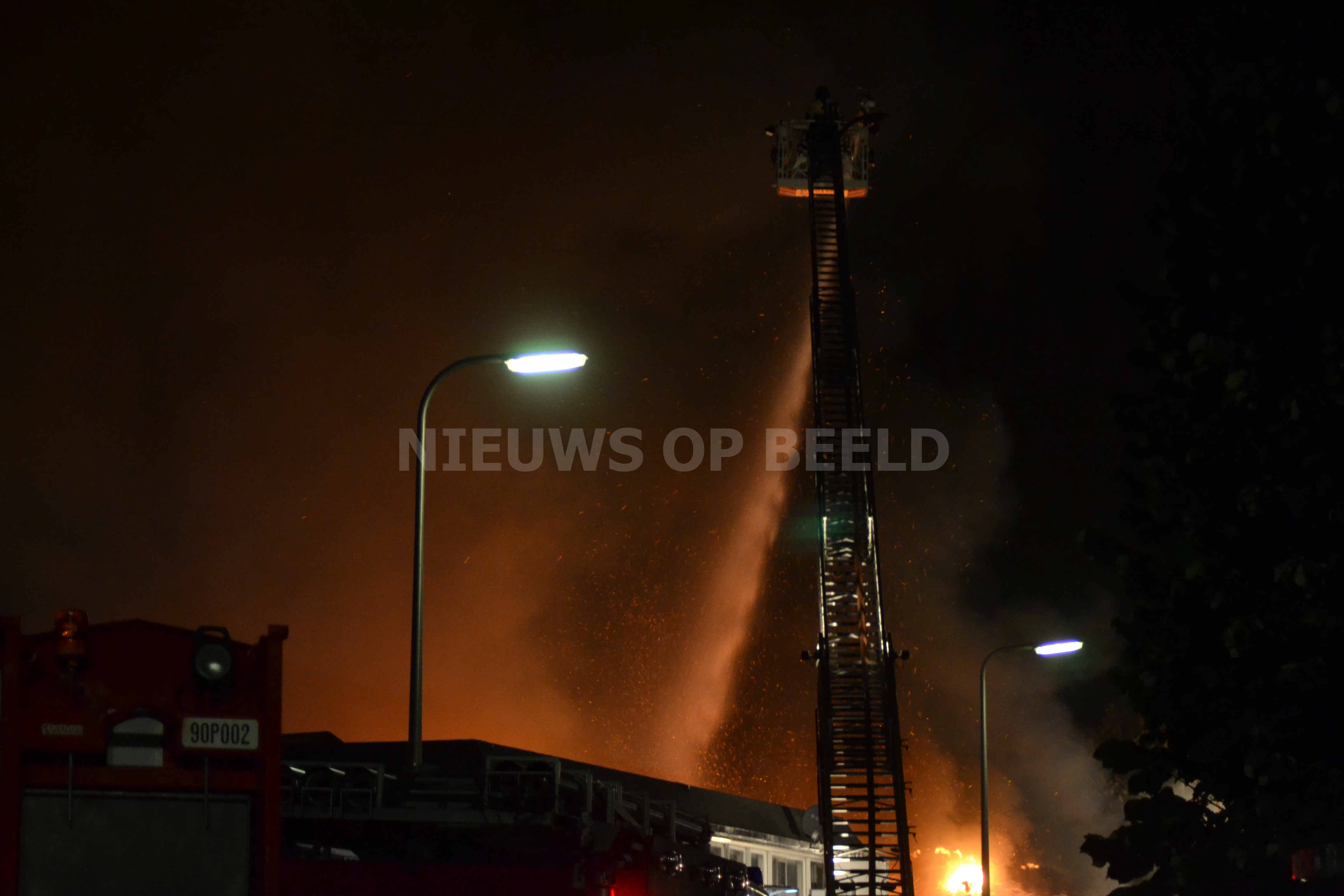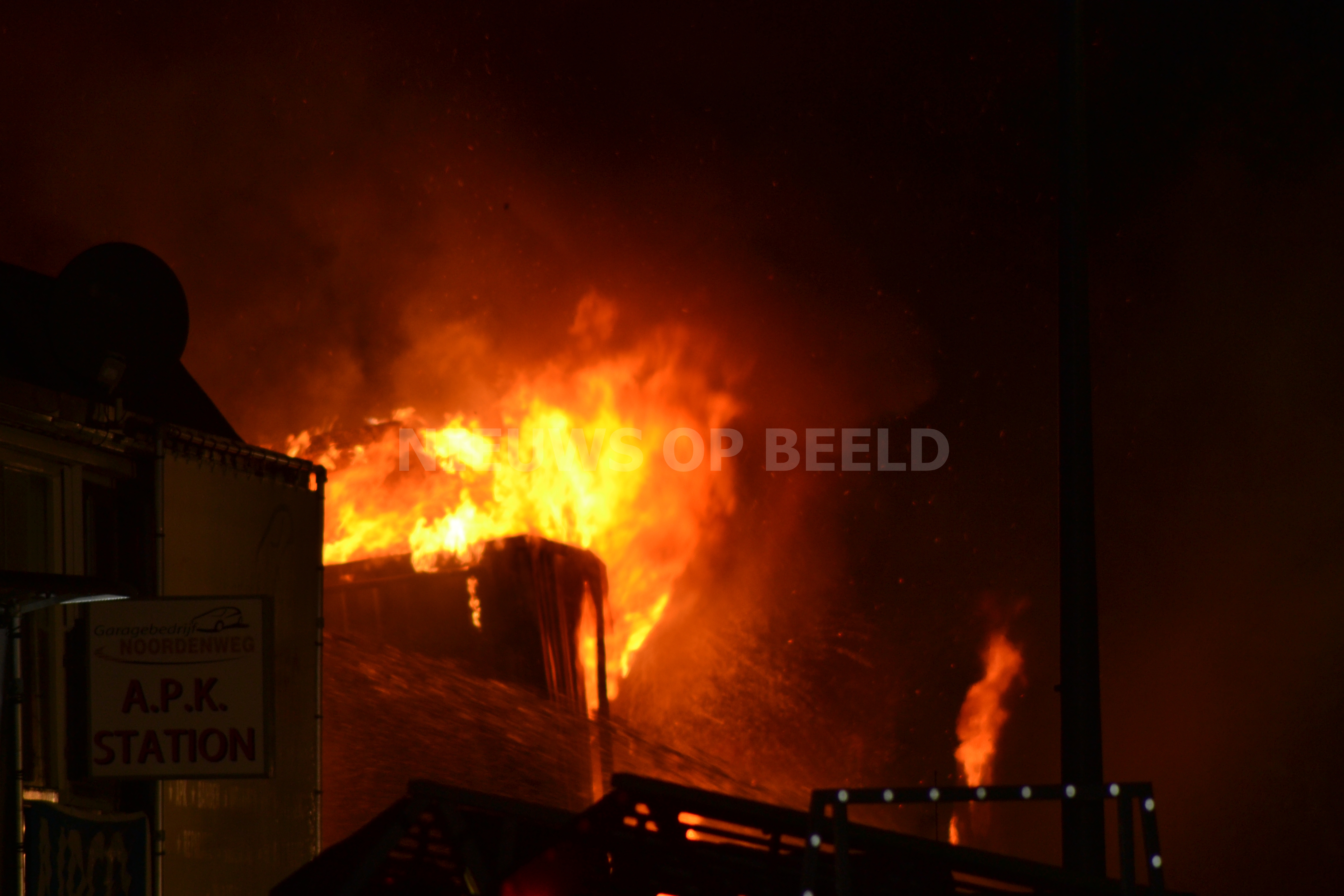 Ridderkerk – Een zeer grote brand heeft in de nacht van vrijdag op zaterdag een bedrijfsloods aan de Noordenweg volledig in de as gelegd. De brandweer kreeg rond één uur de melding binnen dat er rook was waargenomen. Niet veel later na de melding was er een flinke knal te horen en kwamen de vlammen metershoog uit het dak gezet. De brandweer schaalde direct groot op en rukte met tientallen voertuigen en diverse watertransporten uit om de enorme brand in het pand te blussen.