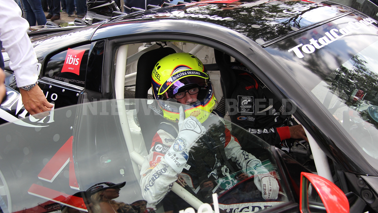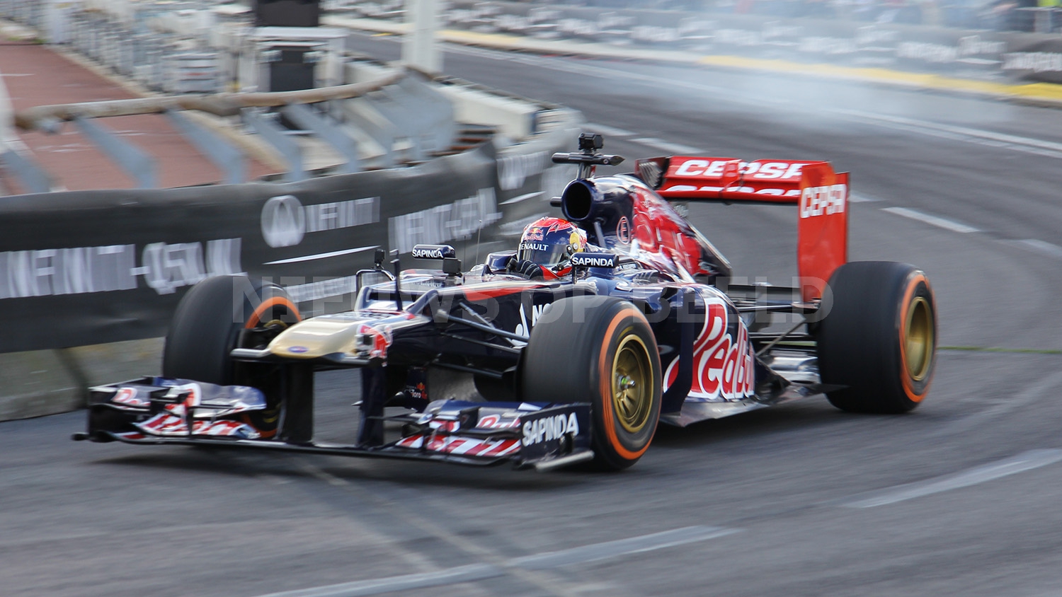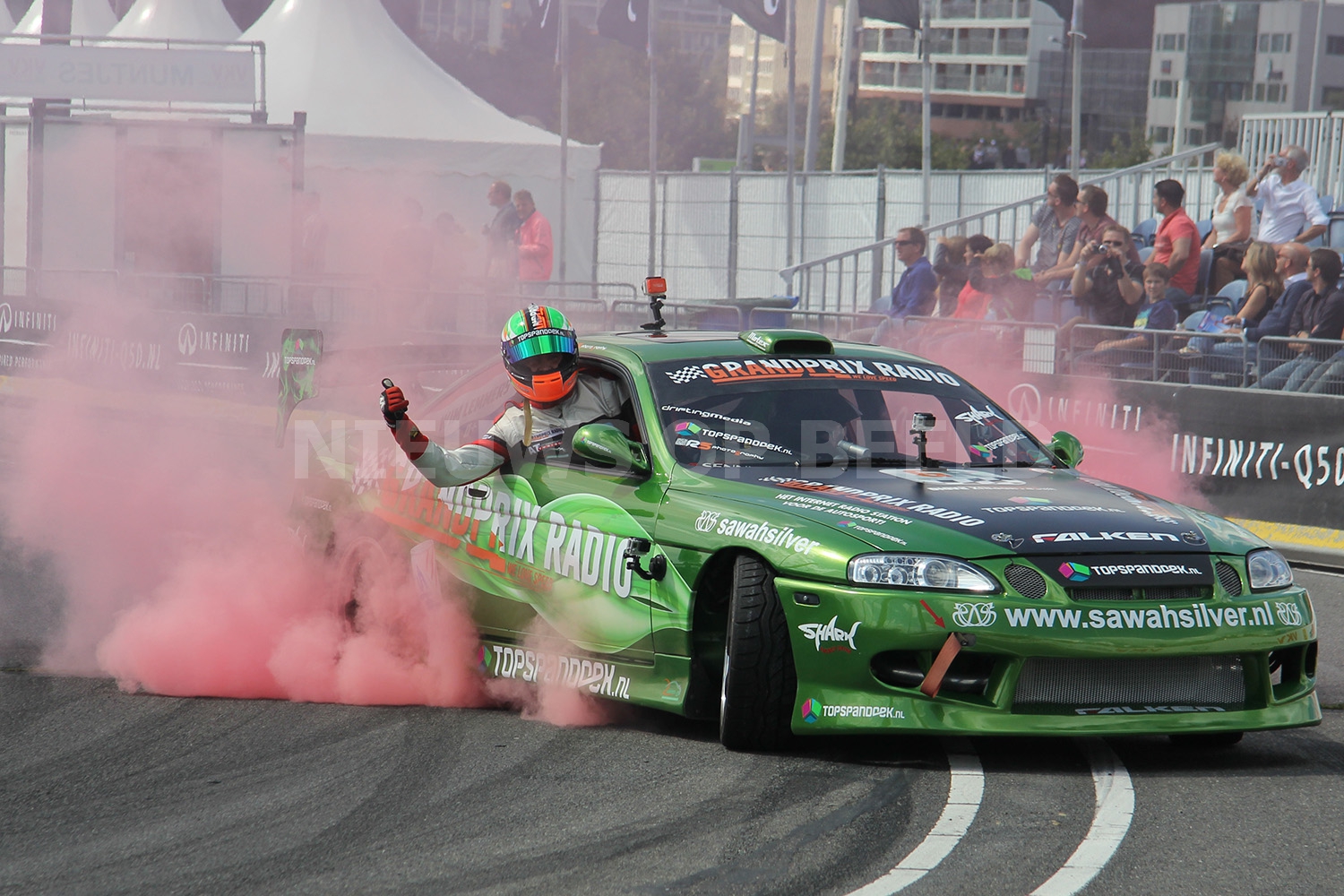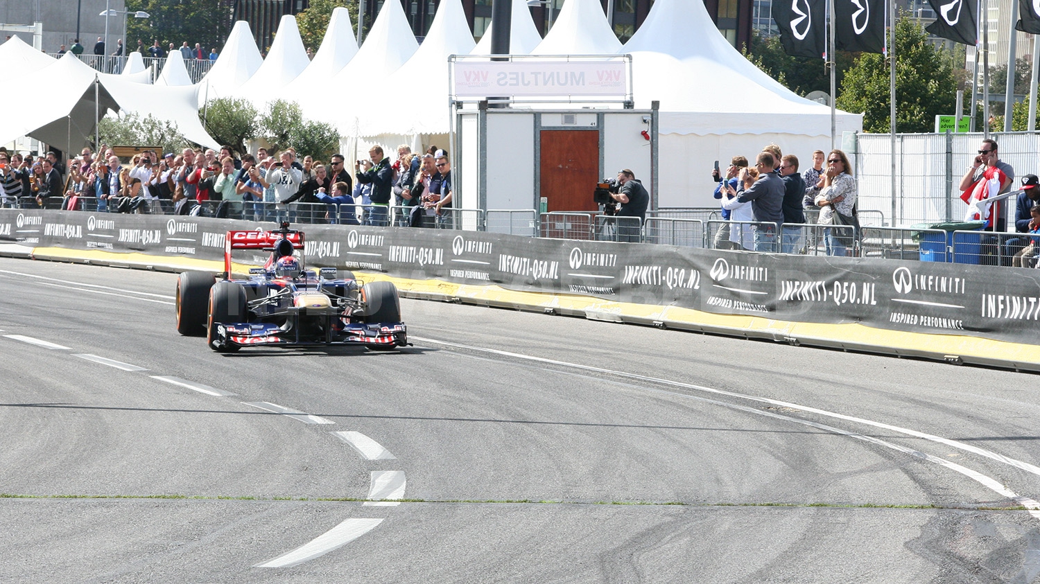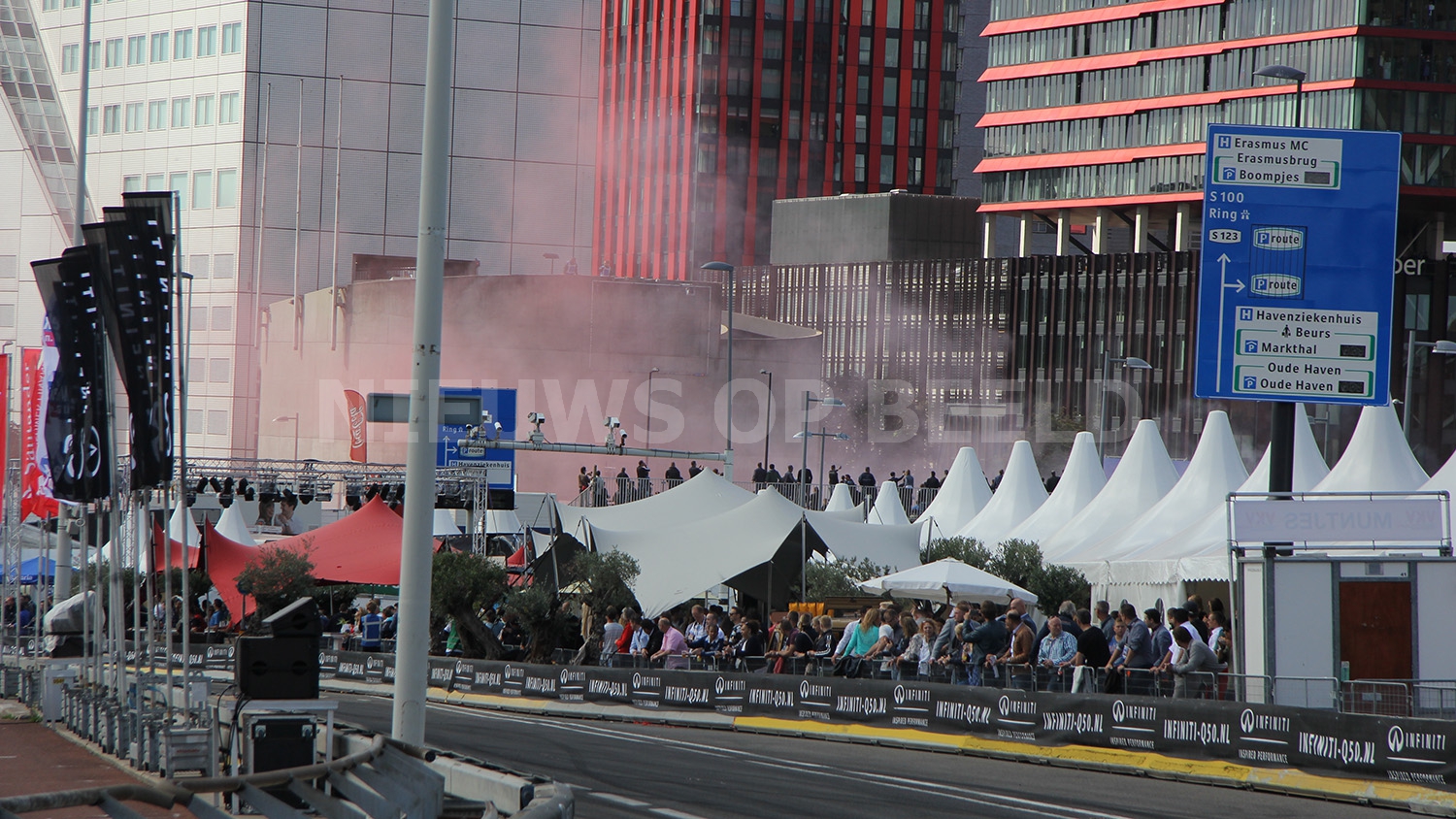 Max Verstappen scheurde met zijn Formule 1 wagen door de straten van Rotterdam. Bij het driften op het Hofplein ging het echter fout. Nadat hij was losgeduwd wilde hij naar voren rijden en raakte daarbij de betonnen vangrail. De neus van de Formule 1 wagen brak af en er restte niets anders dan nog op volle snelheid een mooi publieksrondje te rijden.
