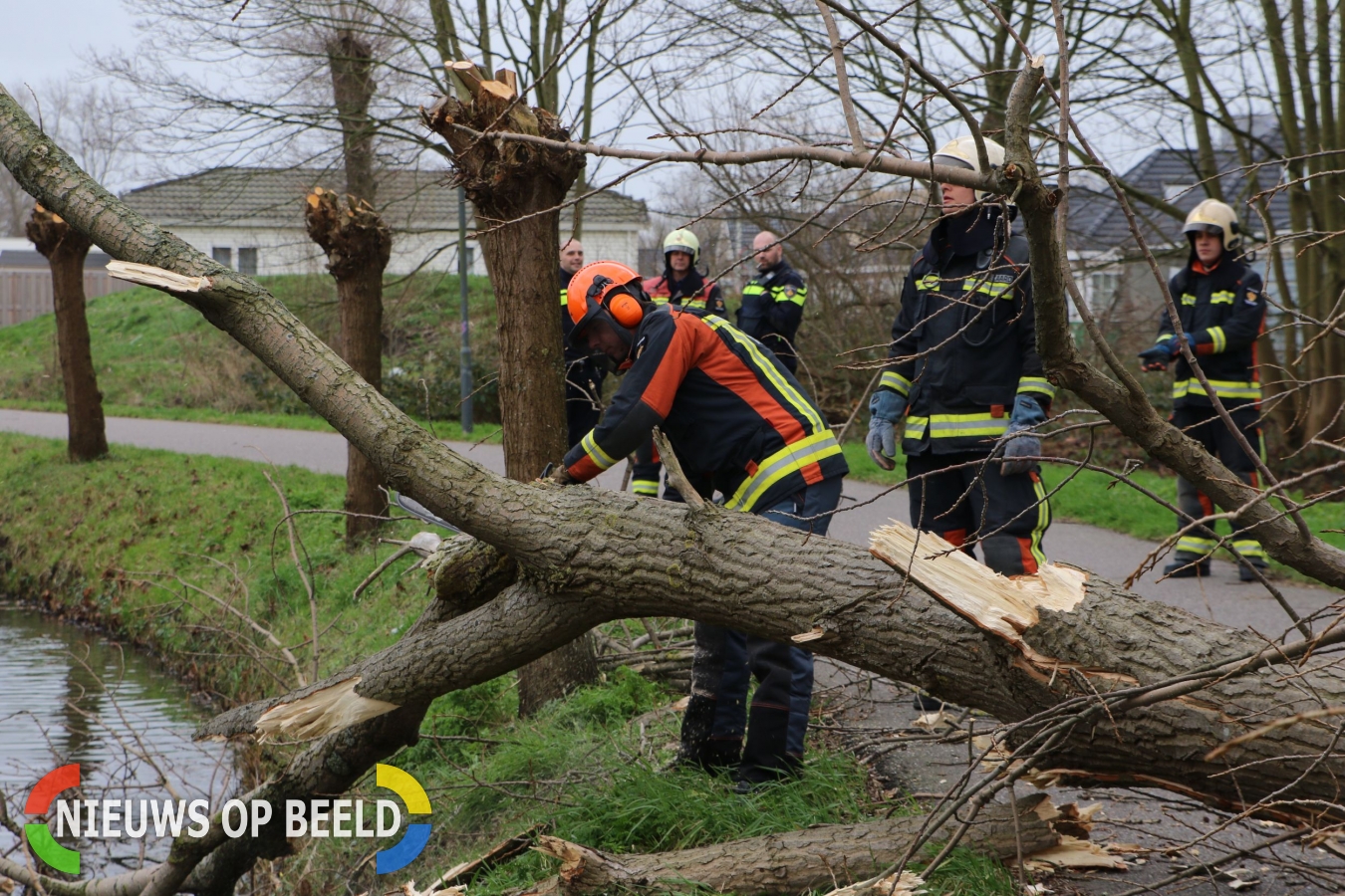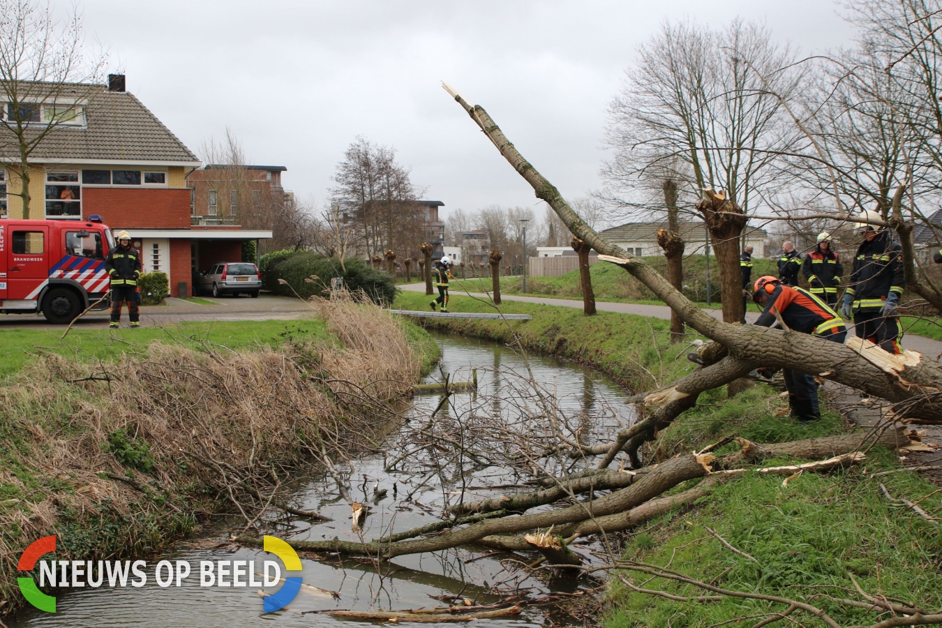 Leiden – Vanmiddag is omstreeks 14:00 uur de brandweer gealarmeerd voor een melding stormschade aan de Broekweg in Leiden. Ter plaatse bleek een grote boom te zijn omgewaaid en het volledige fietspad te blokkeren. De brandweer is met gepaste spoed ter plaatse gekomen. De incidentenlocatie was moelijk bereikbaar, waarop de brandweer met behulp van een ladder een bruggetje heeft gemaakt om zo bij het incident te kunnen komen. Toen de brandweer eenmaal bij de omgewaaide boom wad, hebben zij met behulp van een kettingzaag de boom in meerdere stukken gezaagd en zo het fietspad weer vrijgemaakt. Hierop is de brandweer weer retour gegaan
