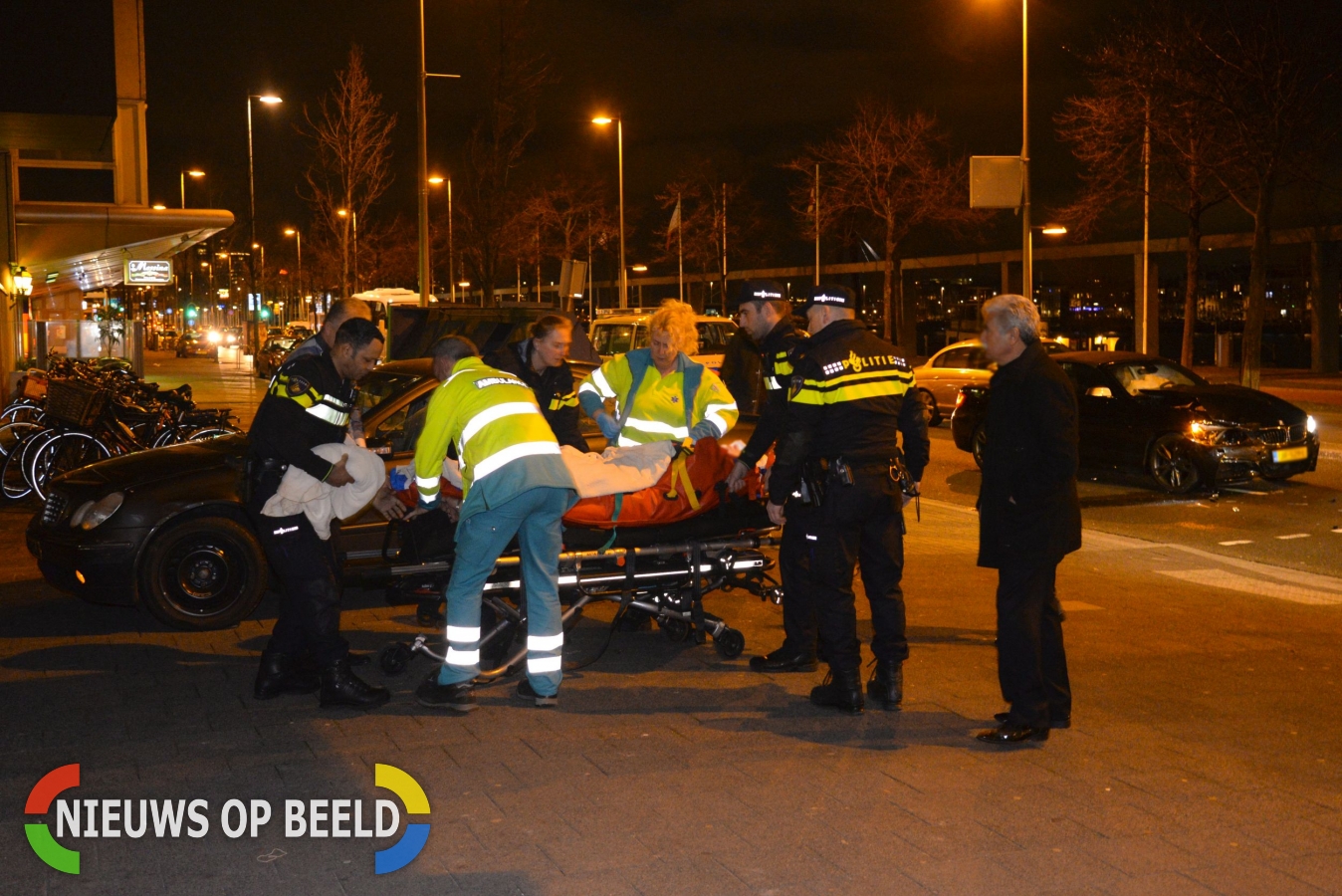 Deze auto raakte vervolgens een voetgangster die daar net over de stoep liep. Zij raakte dusdanig gewond dat ze met een ambulance naar het ziekenhuis moest worden gebracht. De ernst van haar verwondingen is niet bekend. Medewerkers van de verkeersafdeling van de politie hebben een onderzoek ingesteld.