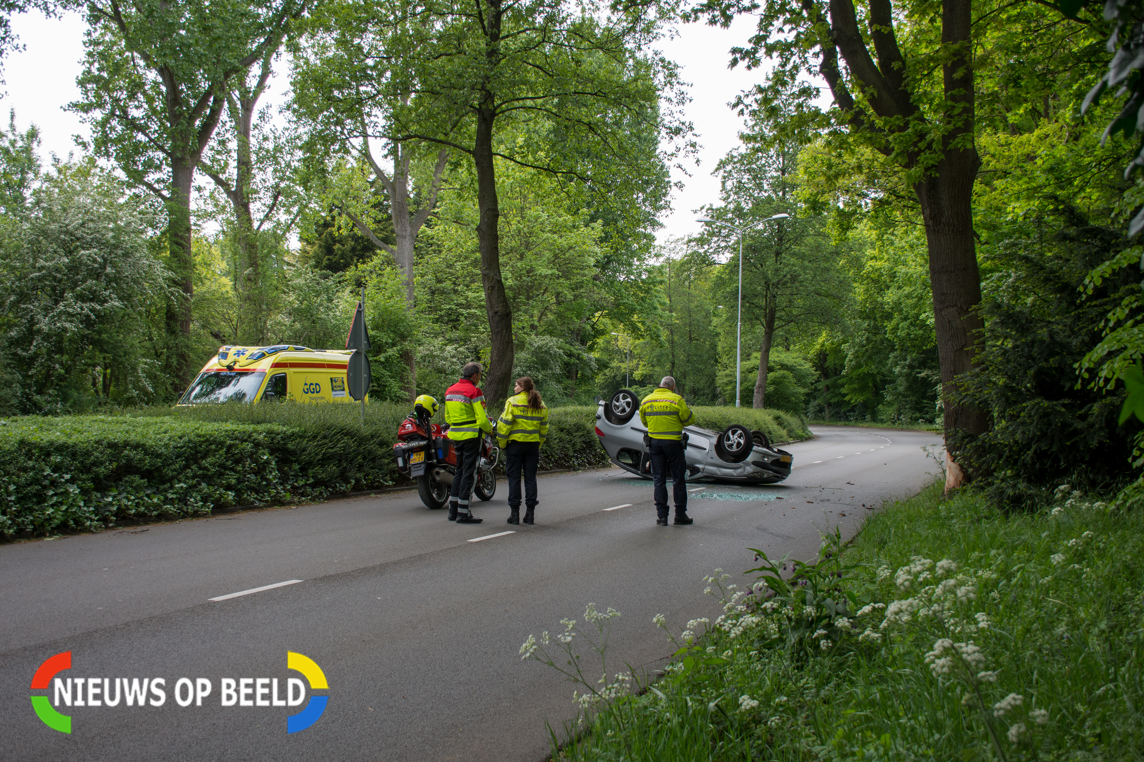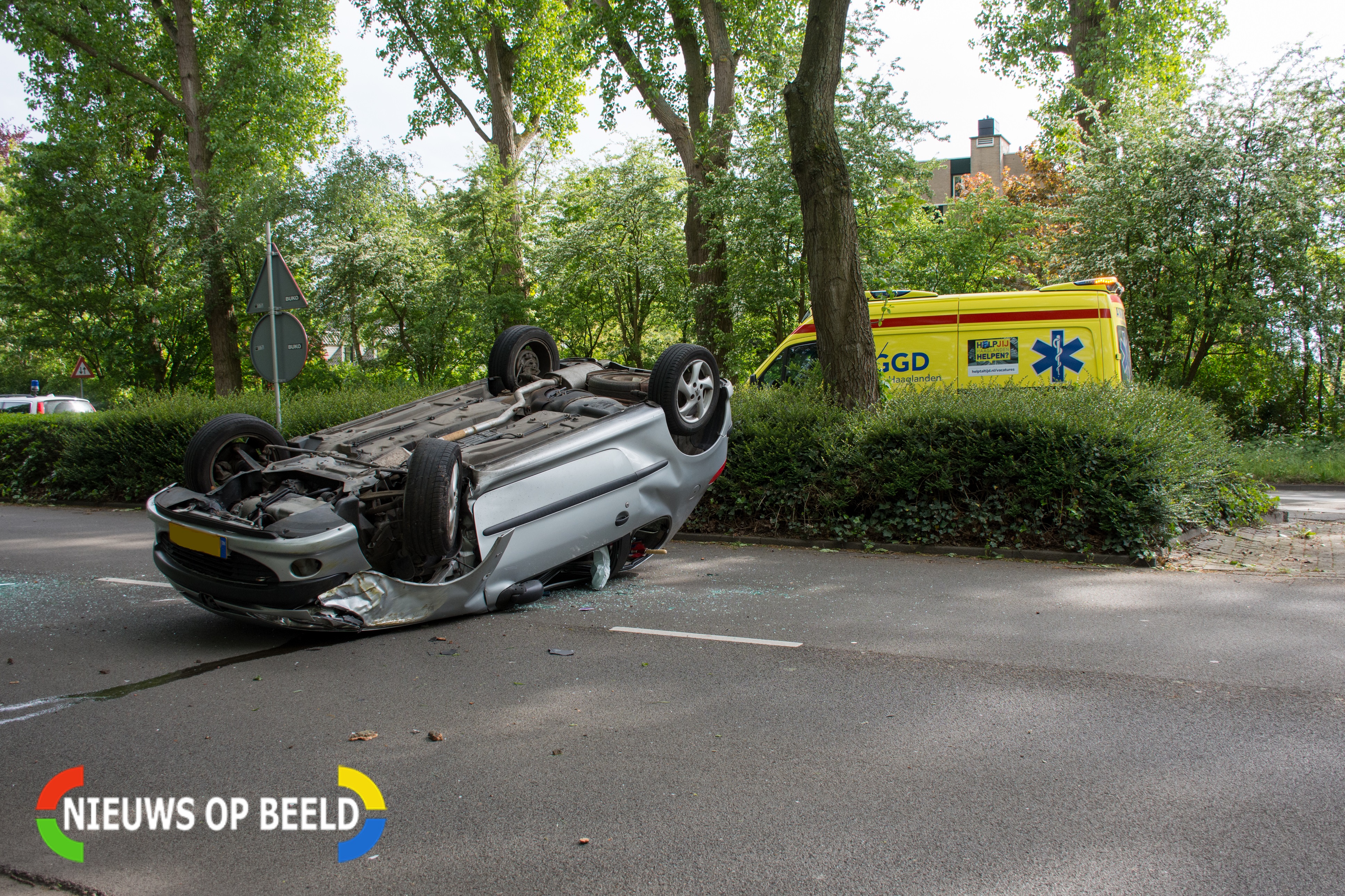 Leidschendam – Vanmiddag rond 16.30 uur is een personenauto op zijn kop beland bij een eenzijdig ongeval op de Noordsingel. De bestuurder raakte gewond.