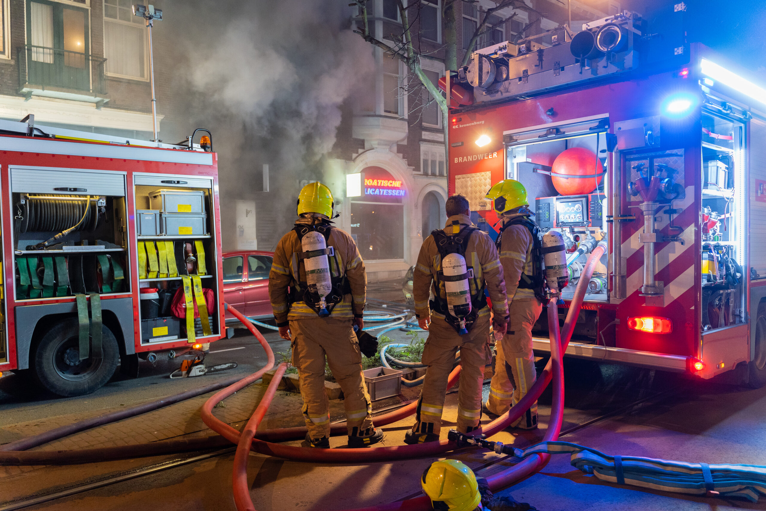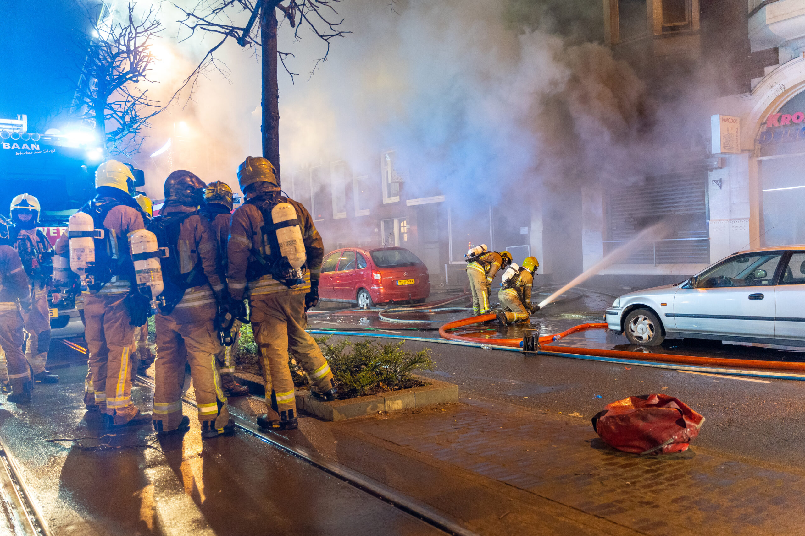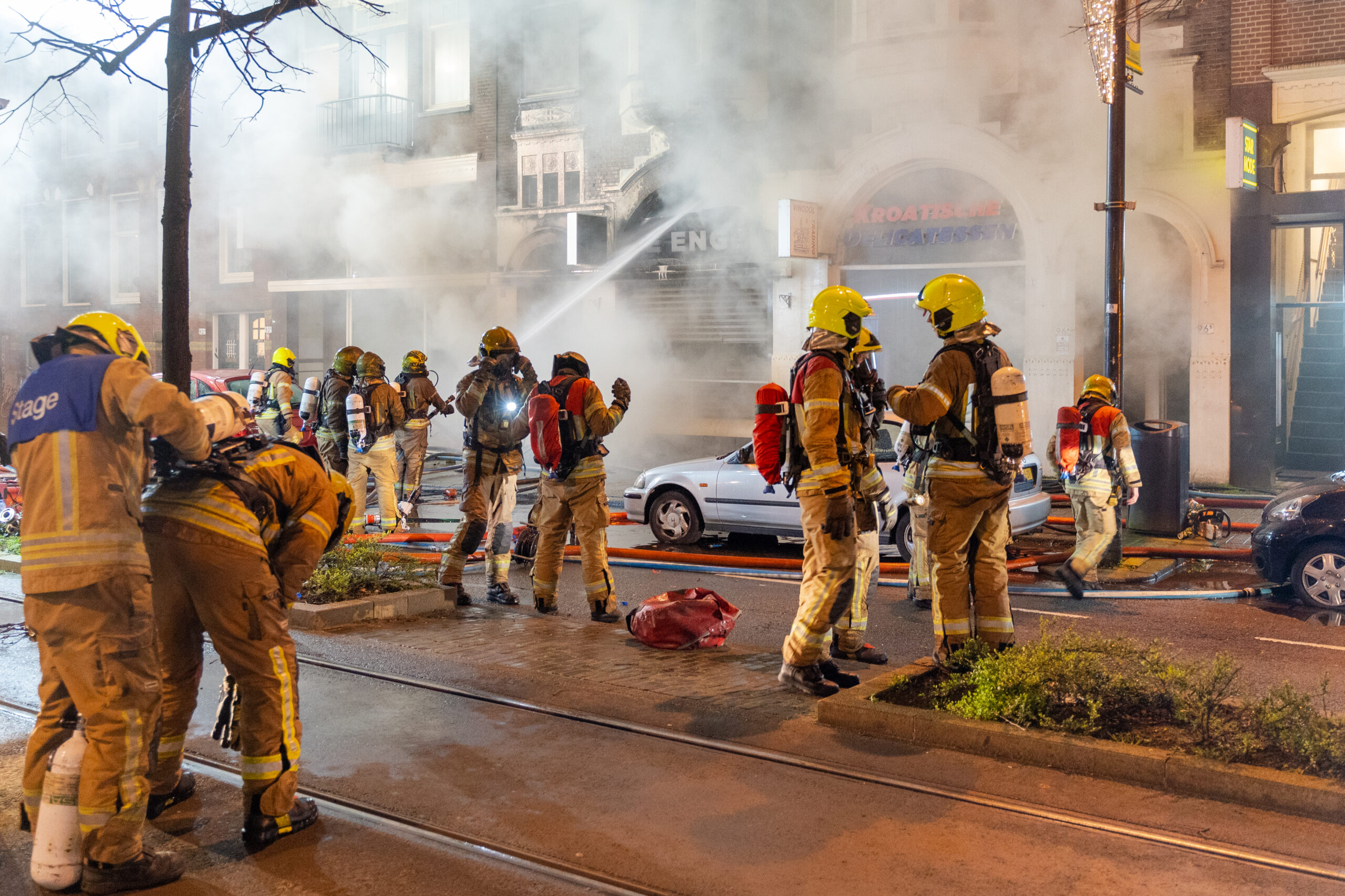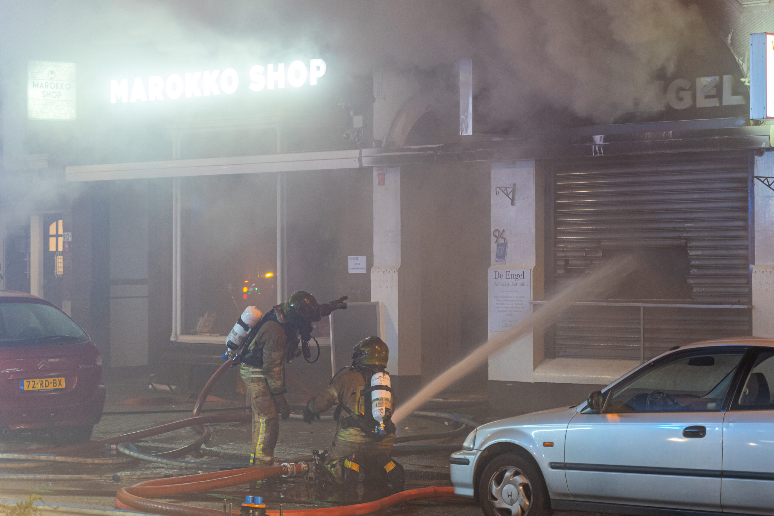 ROTTERDAM – Een felle brand in horecazaak De Engel heeft zondagavond meerdere winkels en woningen verwoest. De brand brak omstreeks 20.30 uur uit en greep snel om zich heen. De brandweer was snel ter plaatse en probeerde de brand nog van binnenuit te blussen. Het vuur was echter zo heet dat besloten werd om terug te trekken en de brand van buitenaf te blussen.