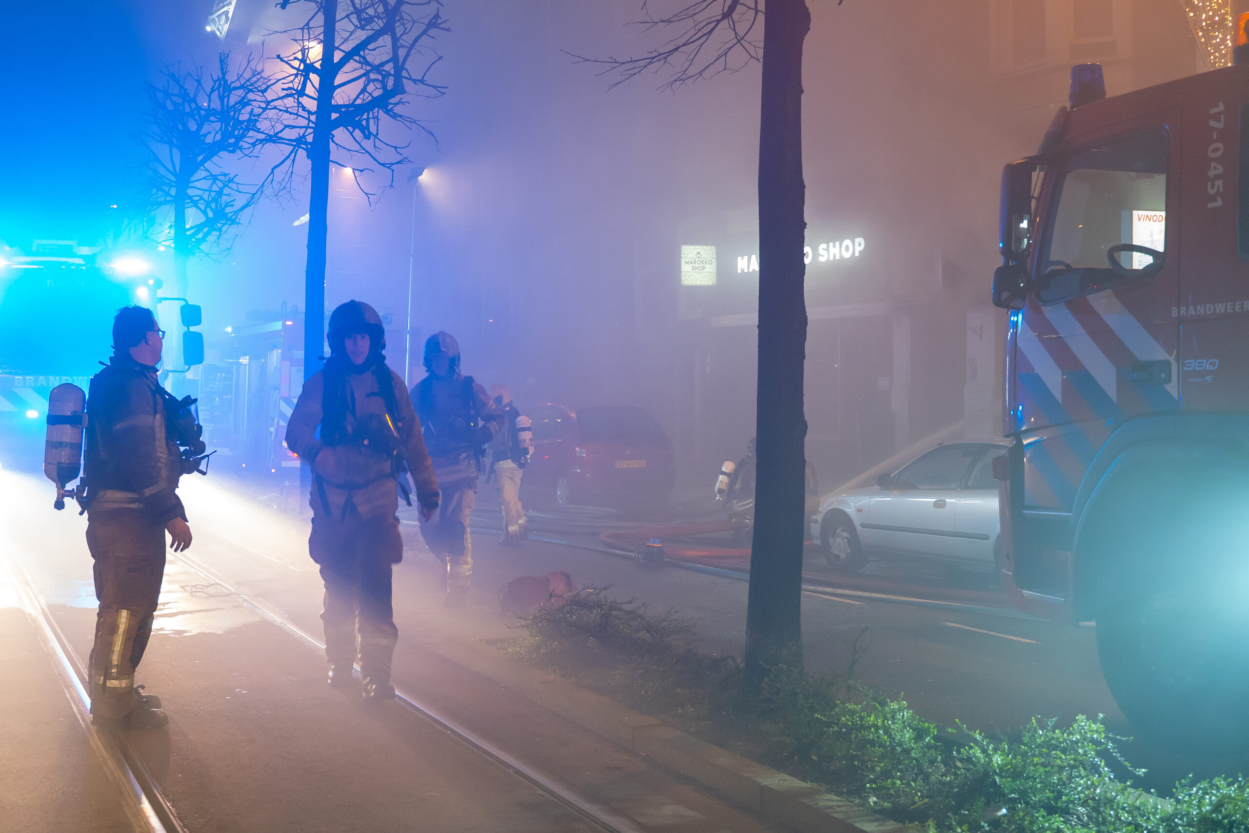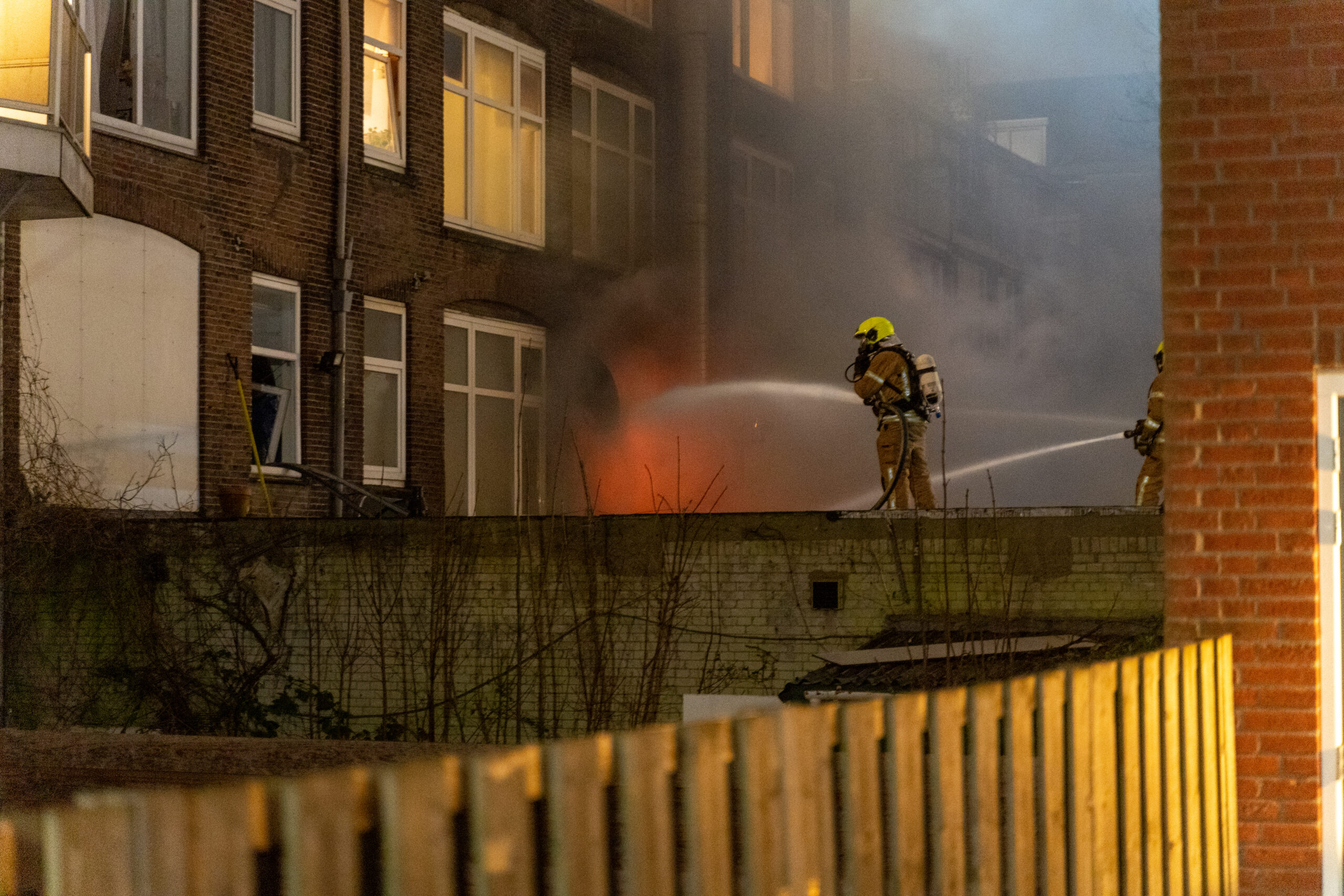Omliggende woningen werden ontruimd, en ook woningen aan de achterzijde van de brand werden vanwege de rookontwikkeling ontruimd. Twee personen zijn met klachten van rookinhalatie naar het ziekenhuis gebracht. Twee andere personen zijn ter plekke nagekeken. Een brandweerman raakte tijdens het blussen gewond aan zijn hand, hij is hiervoor behandeld in het ziekenhuis. De brandweer had grote moeite om de vuurhaarden goed te bereiken waardoor het blussen veel tijd in beslag nam. Pas rond 03.00 uur maandagmorgen werd het sein brand meester gegeven. De meeste wagens konden toen pas vertrekken.