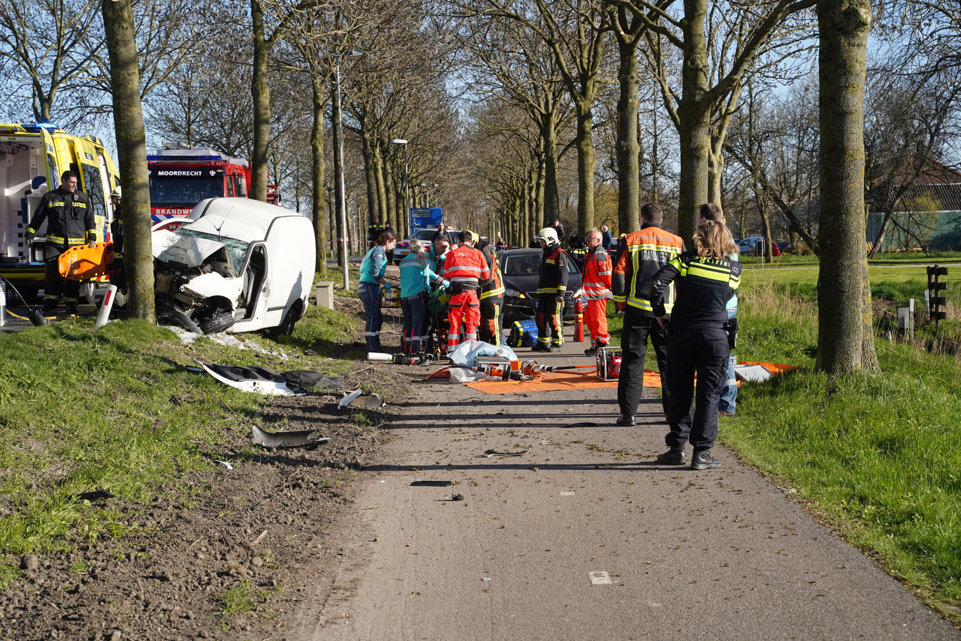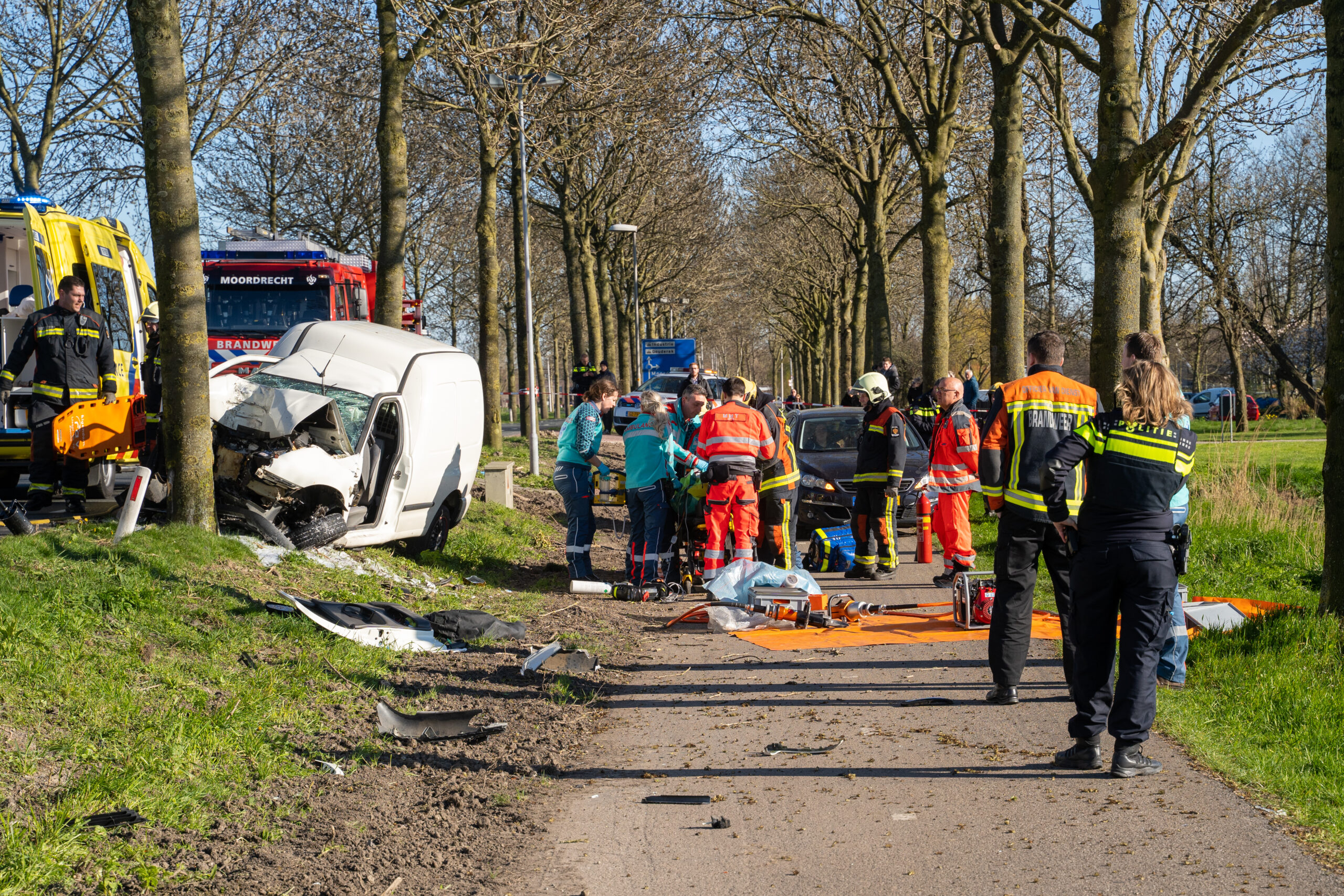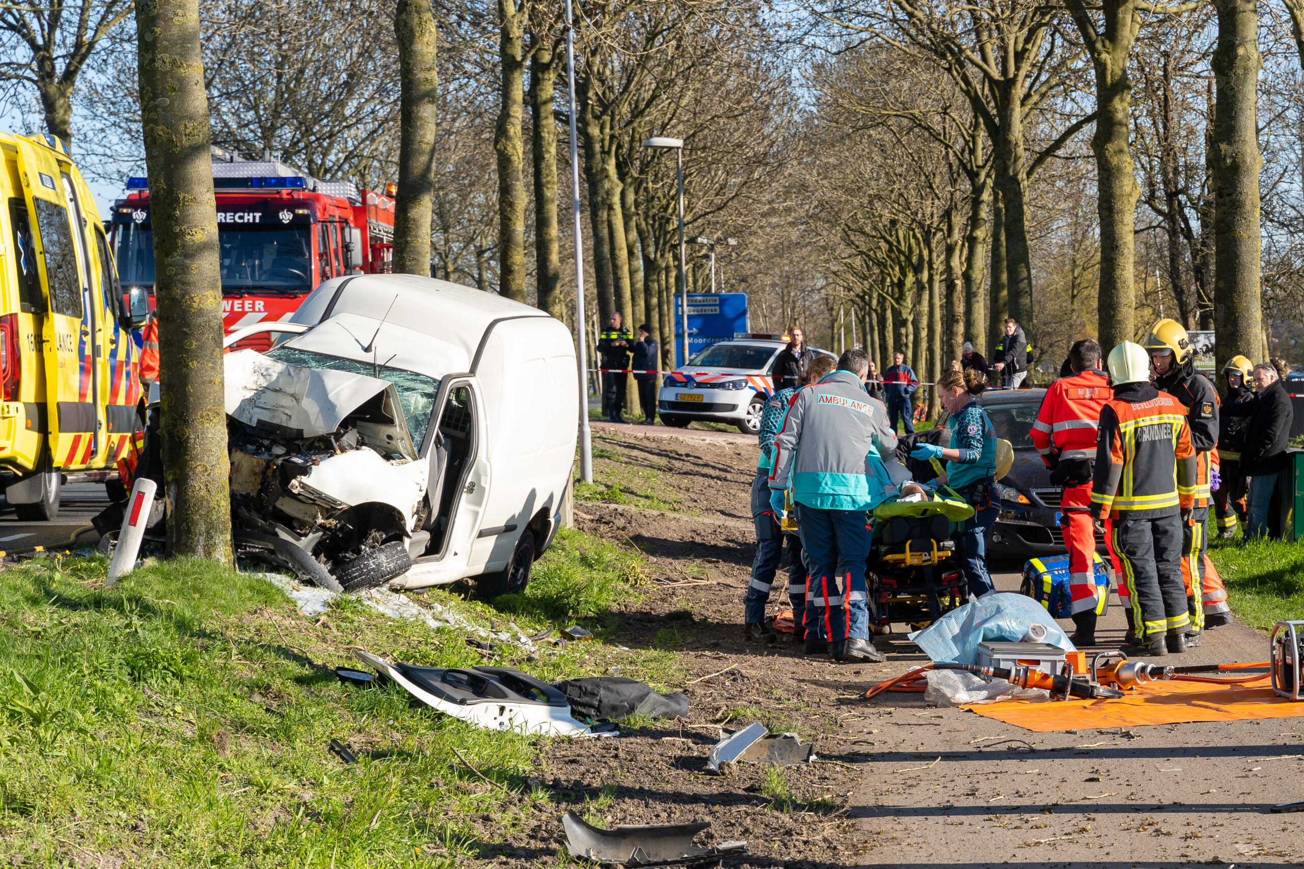 Moordrecht – Een automobilist is zondagmiddag 22 maart zwaargewond geraakt nadat hij omstreeks 16.00 uur frontaal op een boom aan de Middelweg was gebotst. De klap was zo hard dat het slachtoffer in de bestelauto bekneld kwam te zitten, het hele dashboard was door het motorblok naar binnengedrukt.