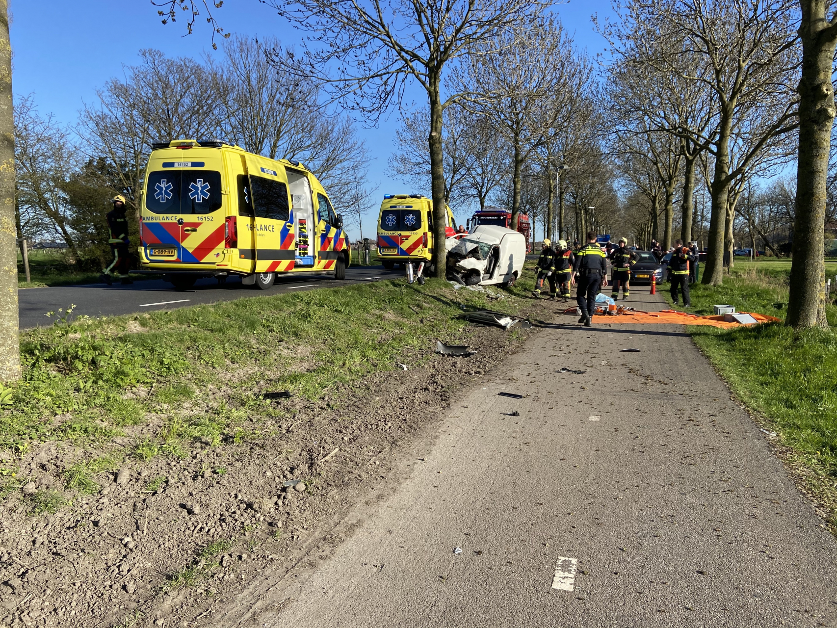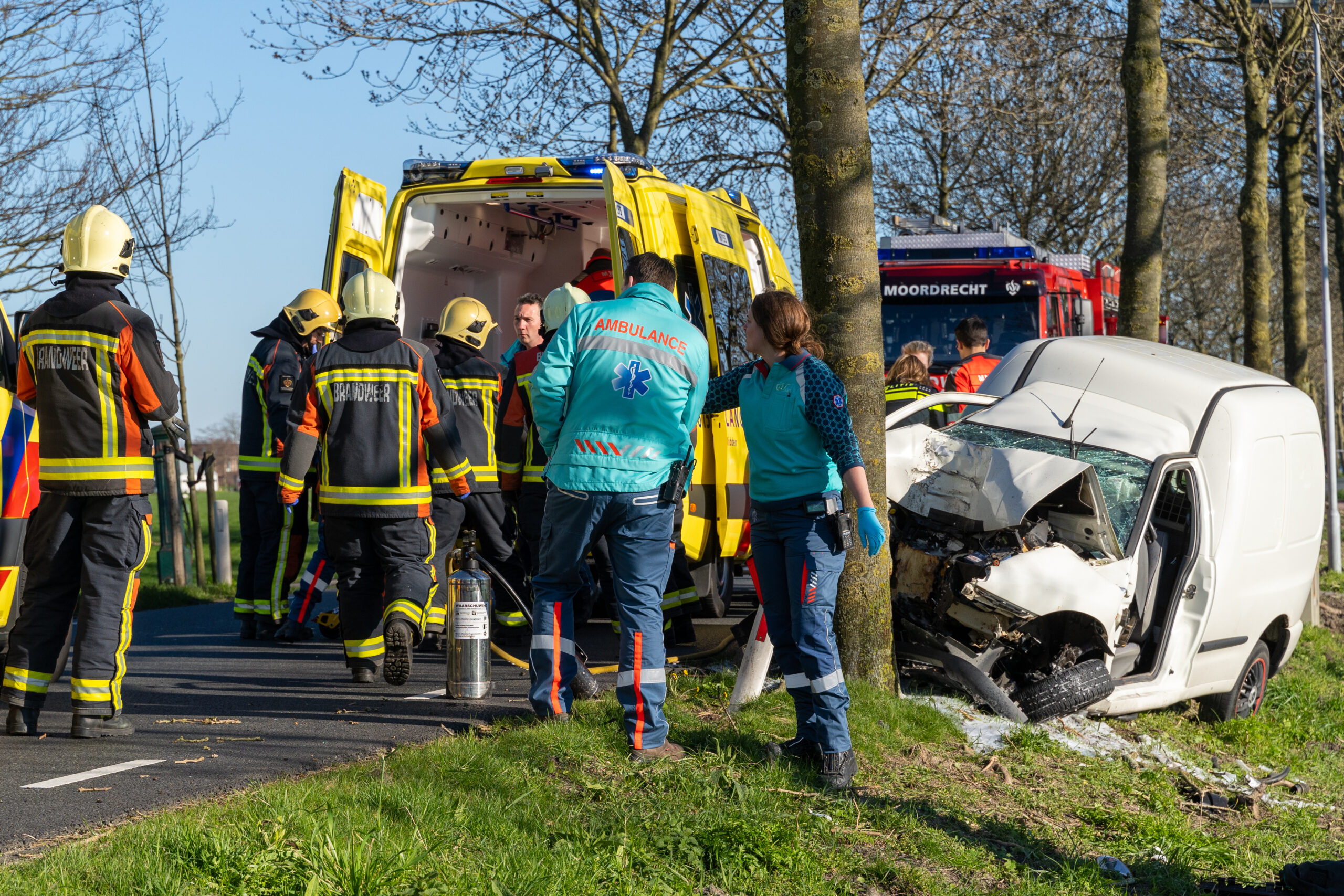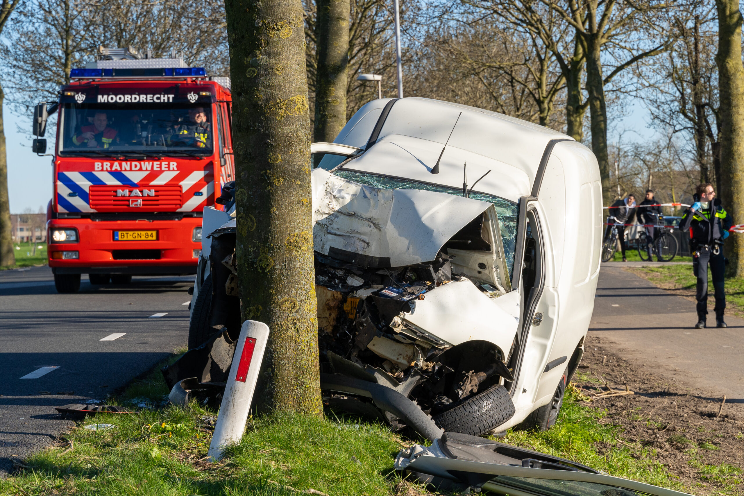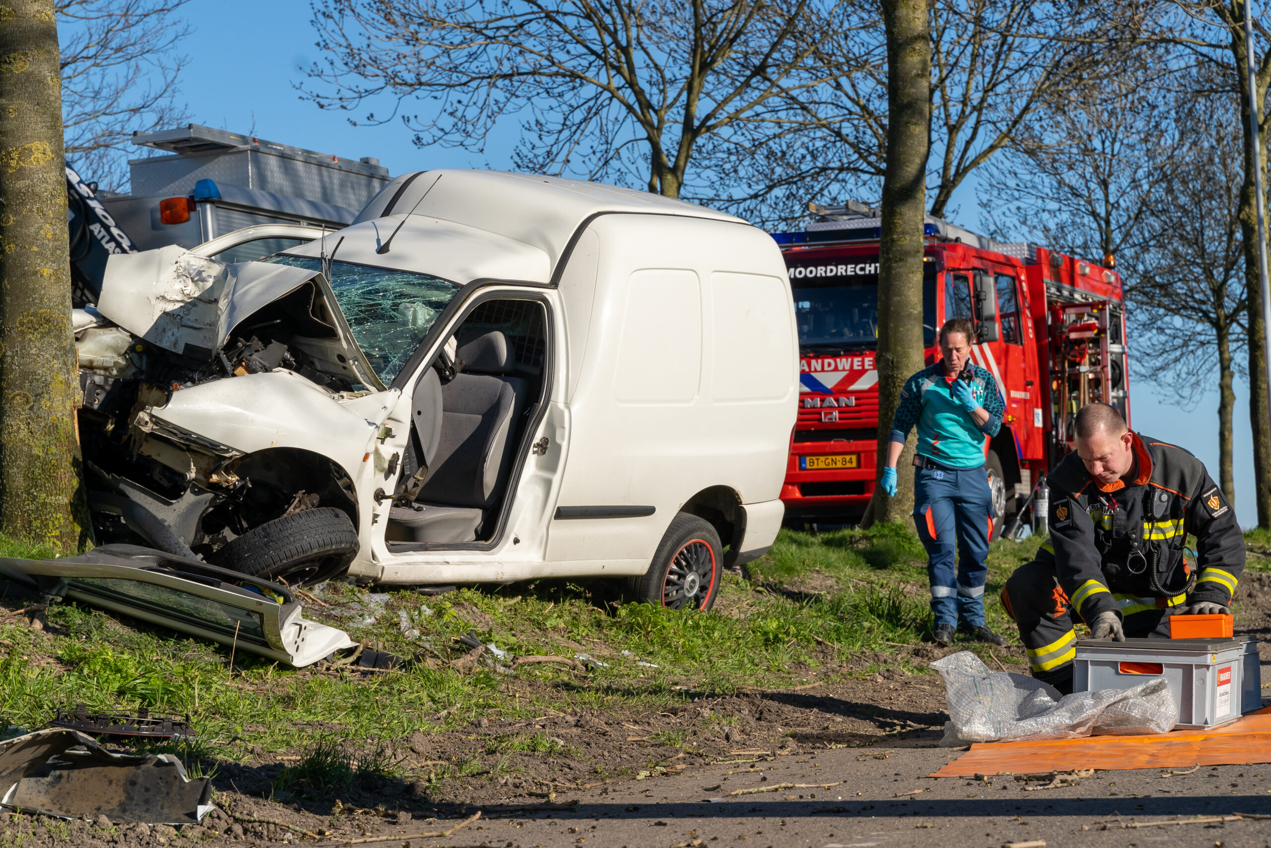 Moordrecht – Een automobilist is zondagmiddag 22 maart zwaargewond geraakt nadat hij omstreeks 16.00 uur frontaal op een boom aan de Middelweg was gebotst. De klap was zo hard dat het slachtoffer in de bestelauto bekneld kwam te zitten, het hele dashboard was door het motorblok naar binnengedrukt.