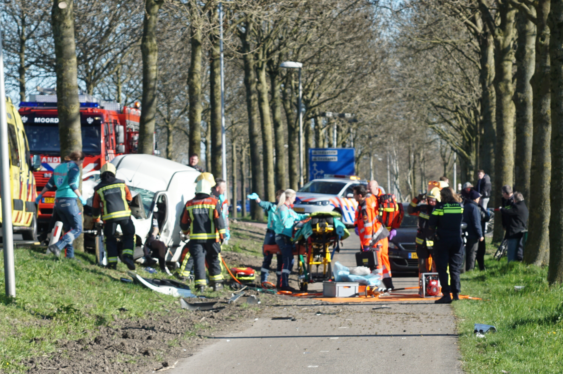 De brandweer heeft een deur verwijderd en ruimte gemaakt om het slachtoffer vervolgens uit het wrak te kunnen bevrijden. Een team van specialisten kwam met de traumahelikopter ter plekke om ambulancepersoneel te ondersteunen bij de behandeling van het slachtoffer, niet veel later werd hij met spoed zwaargewond naar het ziekenhuis gebracht.
