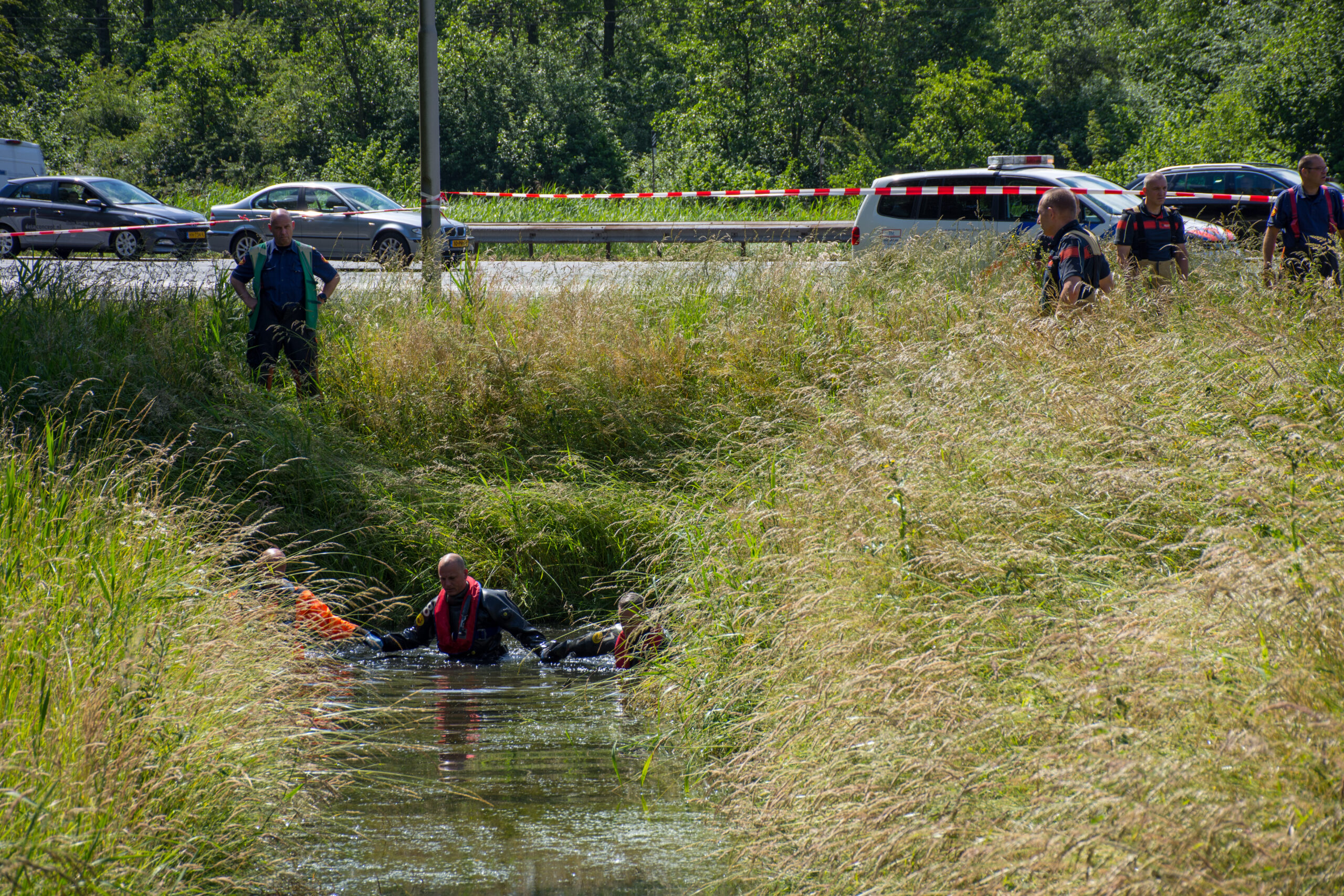 Bij de hulpdiensten ontstond het vermoeden dat er sprake was van meerdere inzittenden, waarna duikers van de brandweer de sloot hebben doorzocht. Ook een politiehelikopter zocht enige tijd mee. Uiteindelijk bleek het enkel te gaan om de overleden inzittende in het voertuig. Het voertuig is op de kant gehesen en de politie is een onderzoek gestart naar de exacte oorzaak van het te water raken.