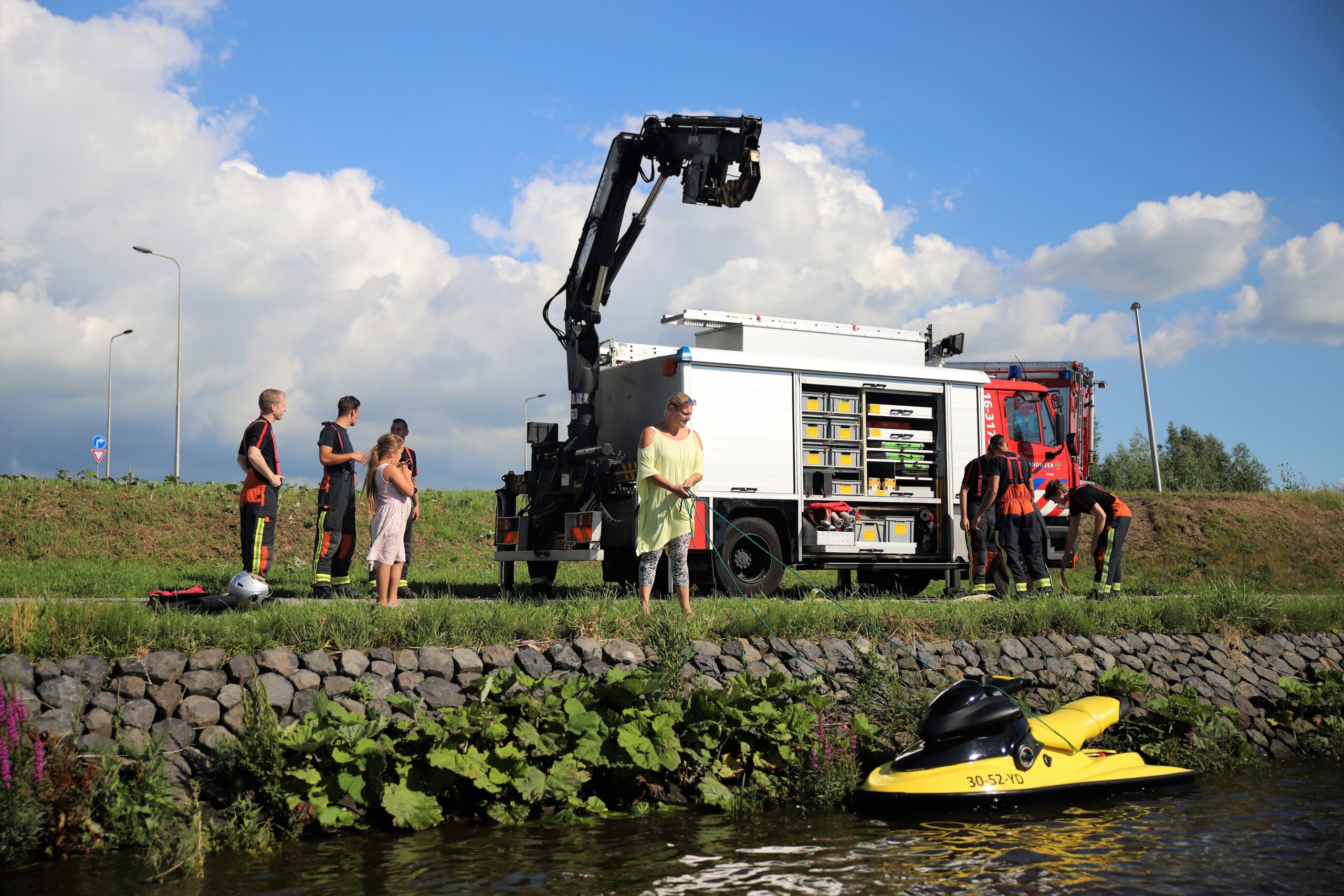 Door nog onbekende reden viel de jetski rond 17.00 uur stil en kon geen kant meer op. Er zou wat verwarring zijn over het eventueel zinken van het vaartuig, waarna de brandweer werd gealarmeerd. Gelukkig bleek er geen sprake van zinken. Om de opvarende toch te helpen, heeft de brandweer de jetski uit het water getakeld.