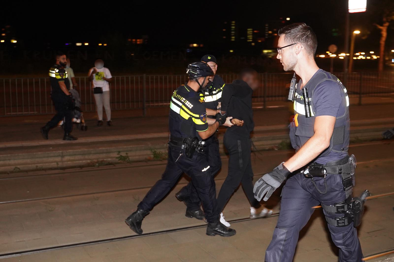 Een jongen van 17 uit Gouda en een man van 22 uit Dordrecht werden aangehouden voor belediging; twee Rotterdamse jongens van 15 en 16 jaar voor brandstichting. Een 13-jarige jongen uit Rotterdam werd aangehouden voor vandalisme. Daarnaast deelde de politie verschillende bekeuringen uit voor onder meer het verstoren van de openbare orde. Zo’n vijftig jongeren zijn genoteerd en uit de anonimiteit gehaald.