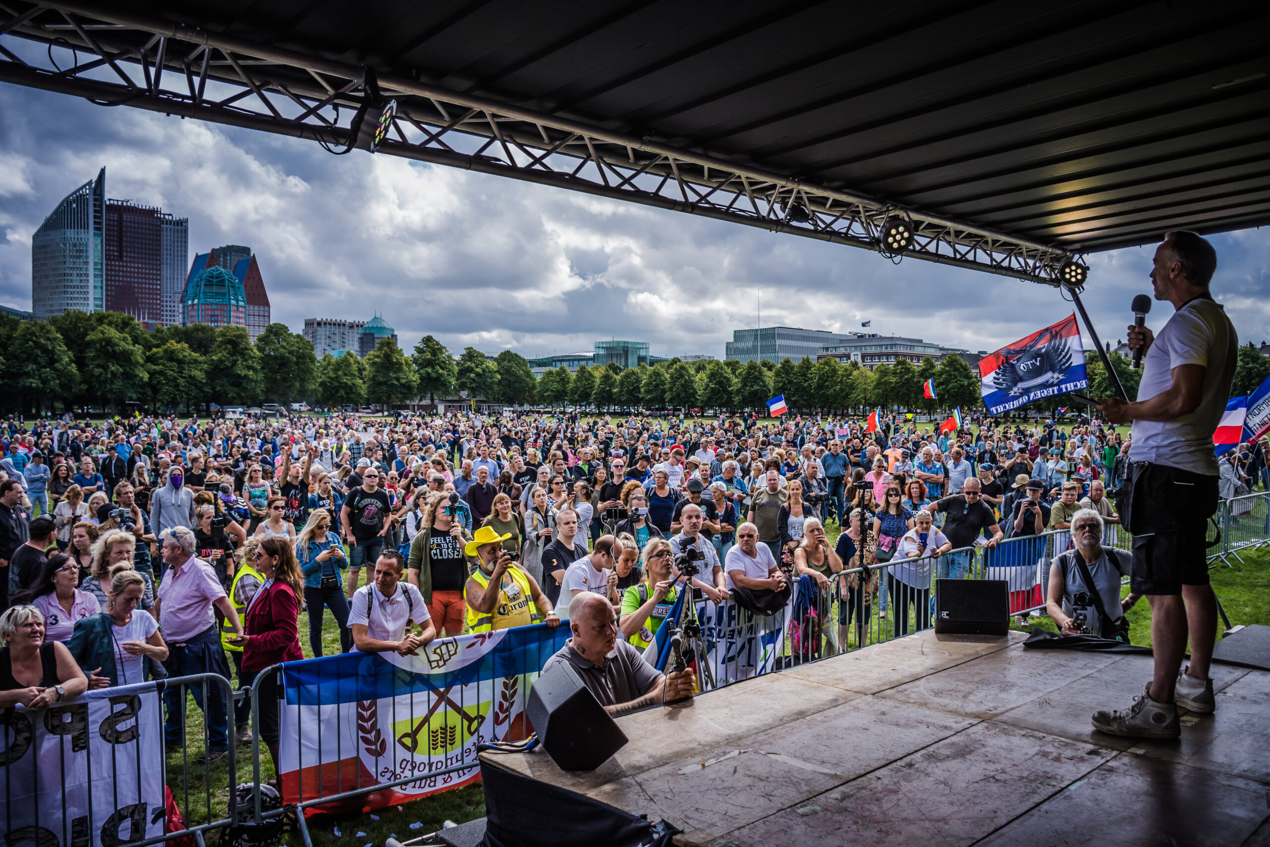 Zo’n duizend actievoerders kwamen vandaag naar de demonstratie. Op het Malieveld was een podium opgetuigd, waar diverse sprekers zich uitspraken tegen de anderhalve metermaatregel en mondkapjesplicht in onder andere Rotterdam en Amsterdam. Er werd onder andere opgeroepen dat het kabinet moest aftreden.