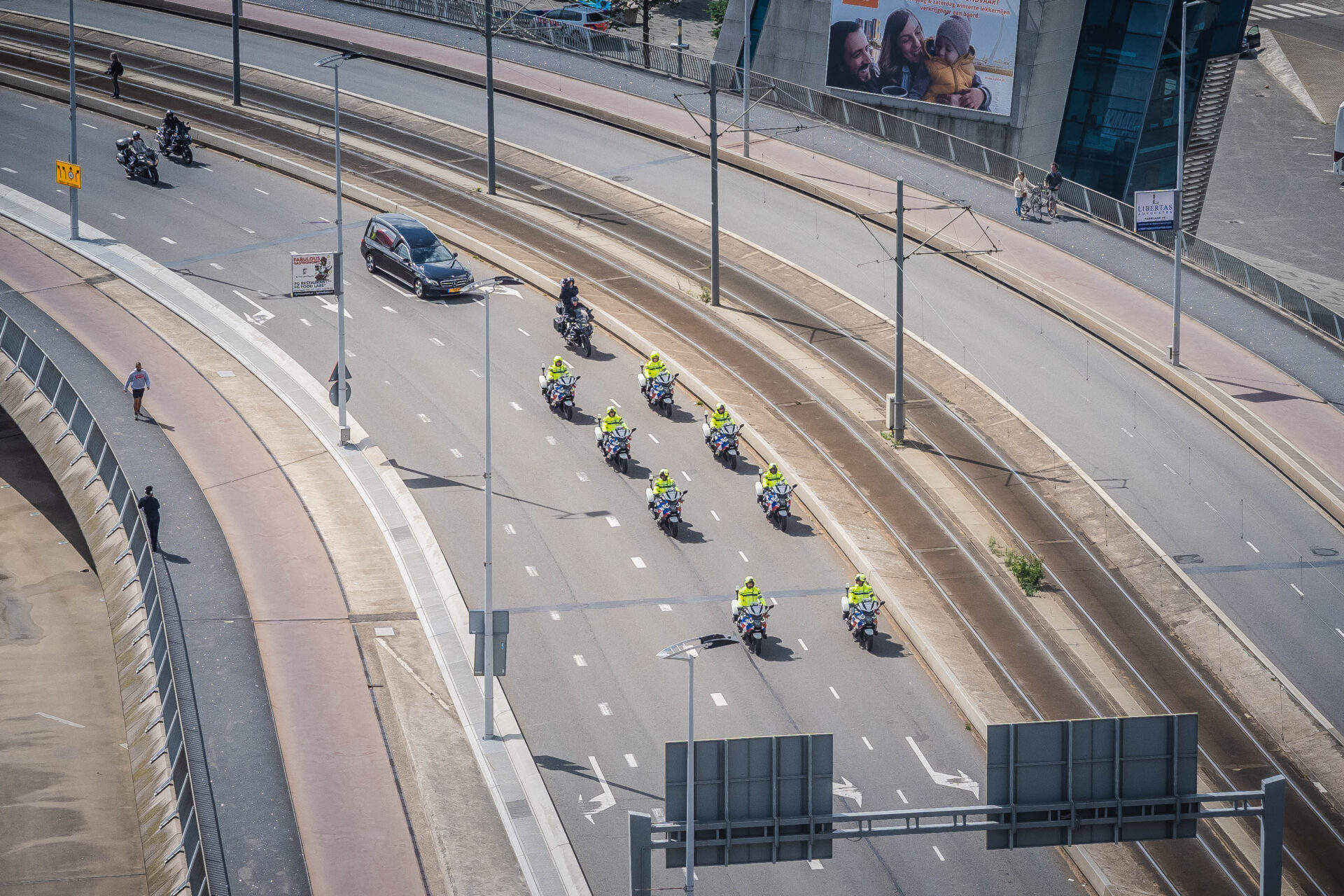 Rotterdam – Honderden politieagenten hebben vrijdag 16 juli afscheid genomen van hun veel te jong overleden collega Arno de Korte. Een enorme stoet van politiemotoren begeleiden de rouwwagen door de straten van Rotterdam. Langs de weg stonden honderden collega’s in de vorm van erehagen, maar ook op het water waren 12 schepen van de Zeehavenpolitie en de Landelijke eenheid aanwezig.
