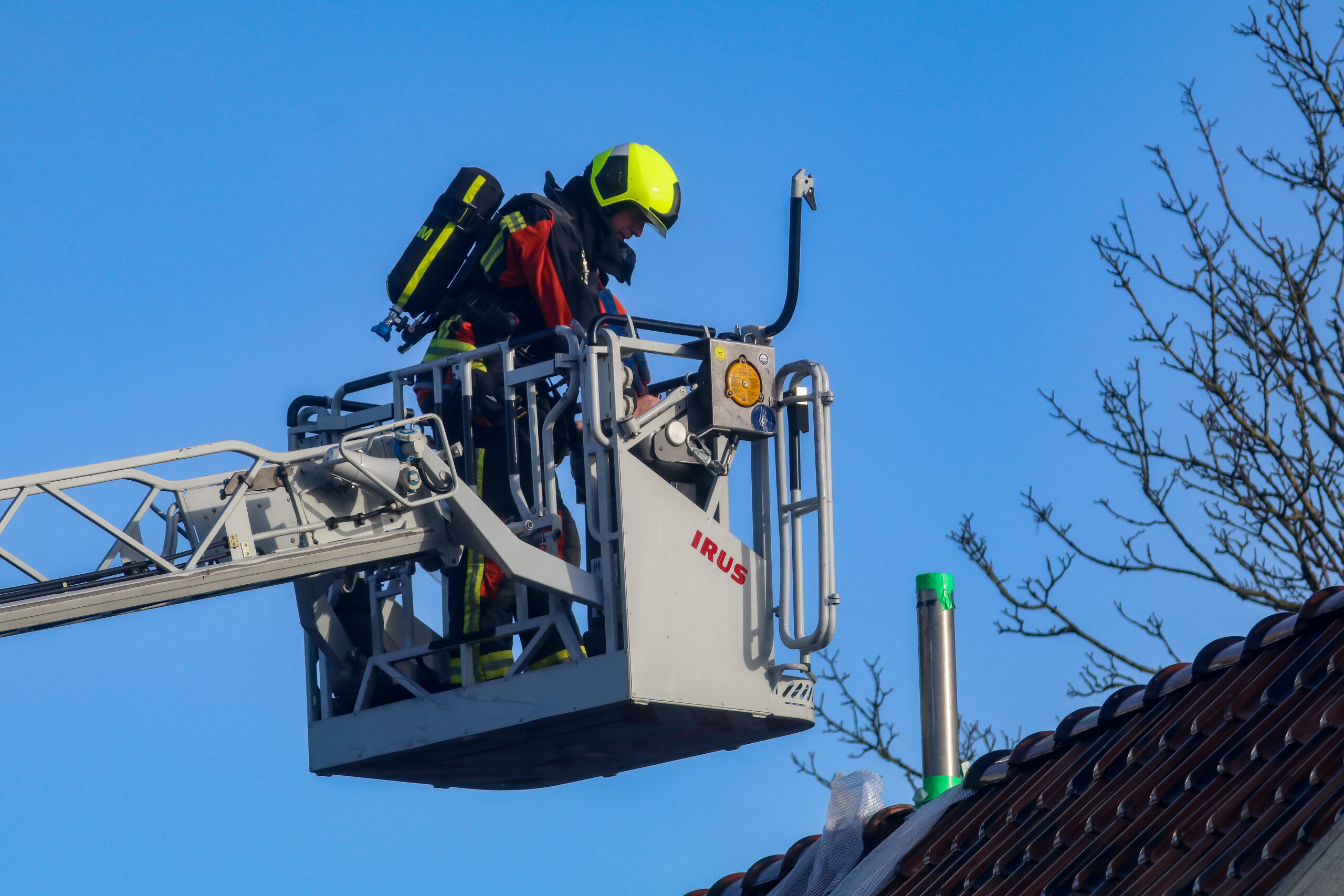 Met behulp van een ramoneur werd vanuit de ladderwagen de schoorsteen geveegd. Smeulende resten werden beneden opgevangen. De bewoners hebben een advies gekregen om de schoorsteen te laten inspecteren.
