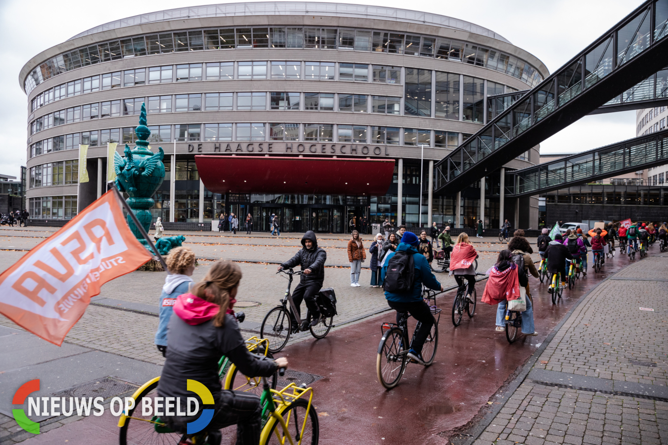Den Haag – Maandag 7 november stapten zo’n honderd studenten op de fiets om in Den Haag actie te voeren tegen de renteverhoging op de studieschulden.