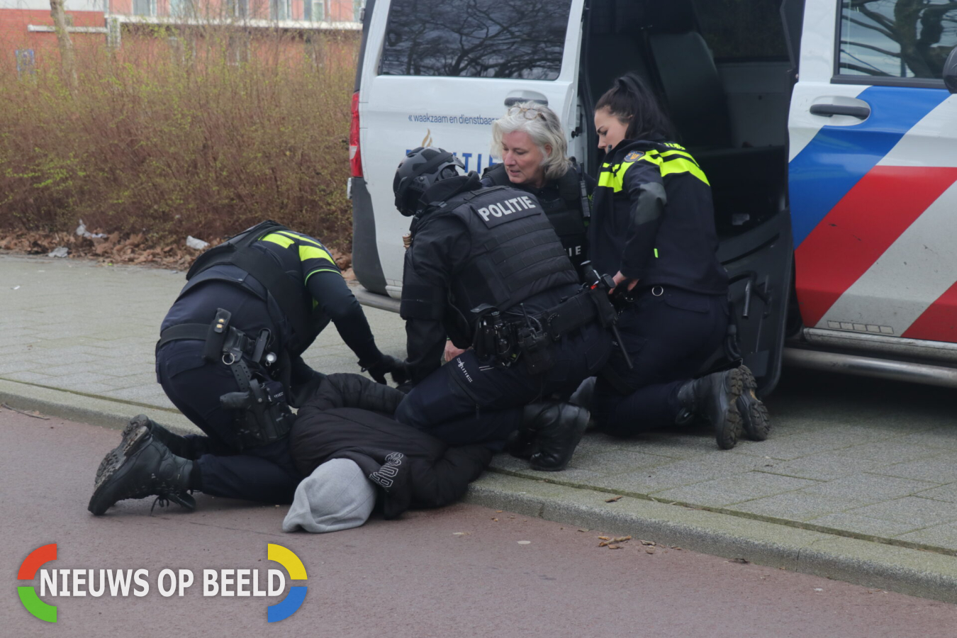 Na een korte zoektocht van de politie bleek de jongeman niet veel verder in een woning te zitten aan de Biezeveld. Vanwege het feit dat hij mogelijk een vuurwapen had werd hierop de hulp het Team Parate Eenheid (TPE) ingeroepen. Nog voordat deze volledig aanwezig waren nam de jongeman de benen. Na een korte achtervolging kon hij worden aangehouden. Bij de aanhouding pleegde hij behoorlijk veel verzet.