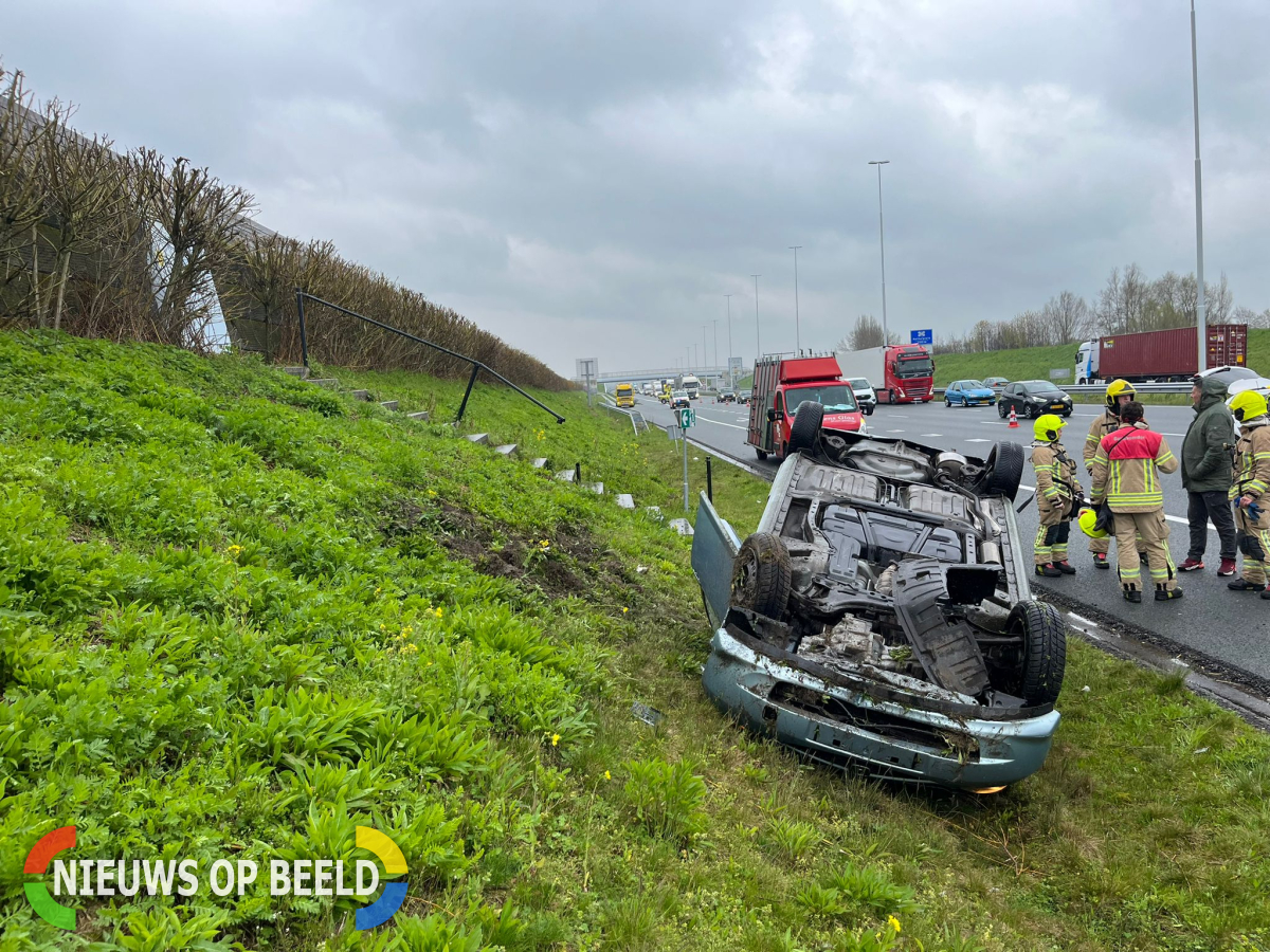 Schiedam – Op de A4 in de richting van Den Haag is donderdagmiddag een auto over de kop geslagen. De bestuurder moest uitwijken voor een ander voertuig, kwam in de berm terecht en sloeg door een trappetje in de berm over de kop.