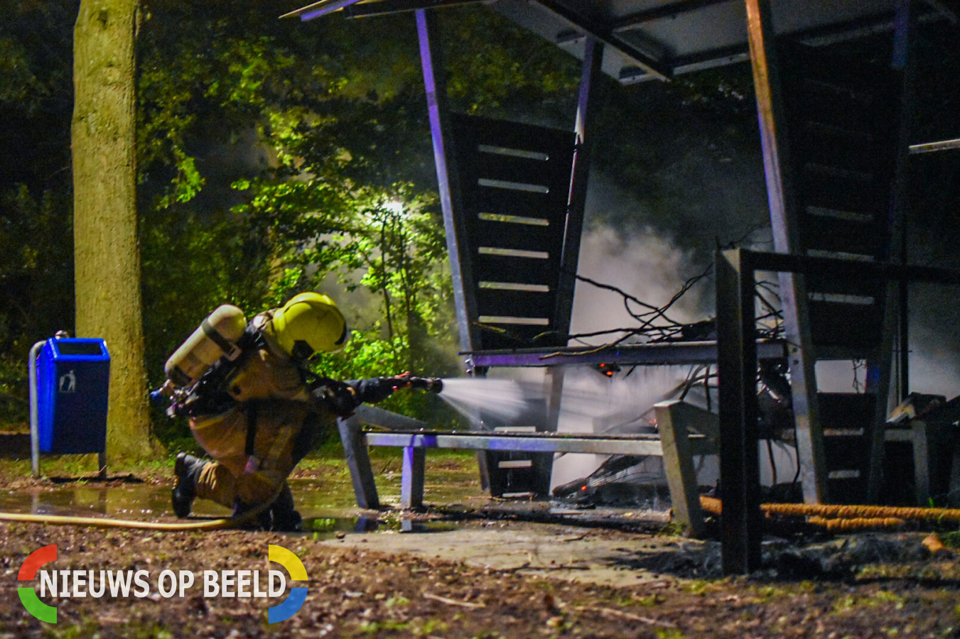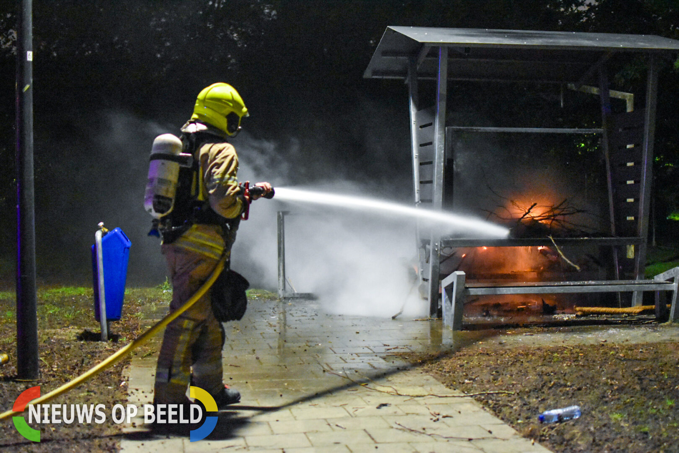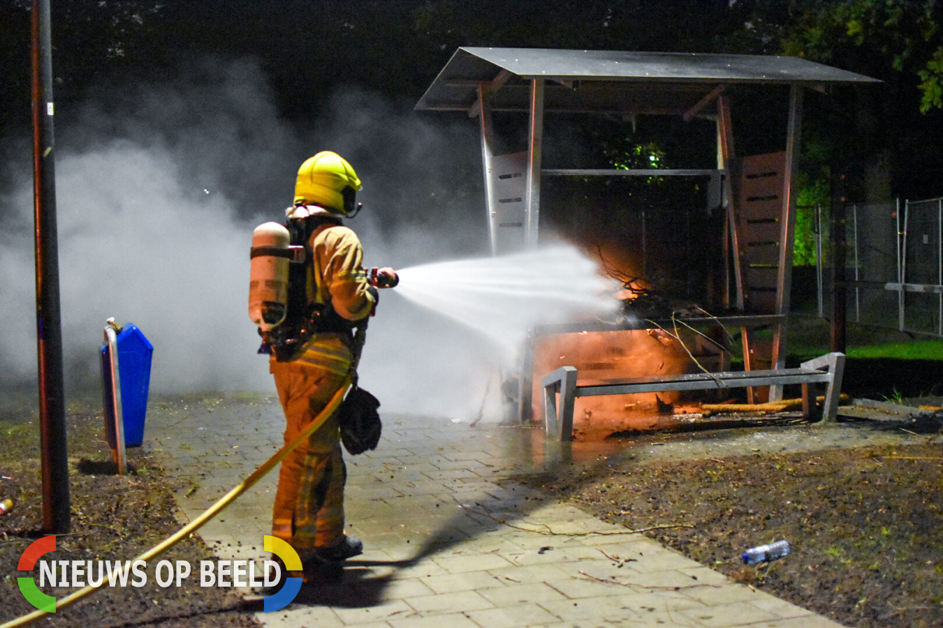Rond 22.47 uur werd de ontmoetingsplek aan de Trimbaan in brand gestoken. Grote takken werden op een hoop gelegd en in de brand gestoken. De brandweer was snel ter plaatse en wist het vuur snel te blussen.