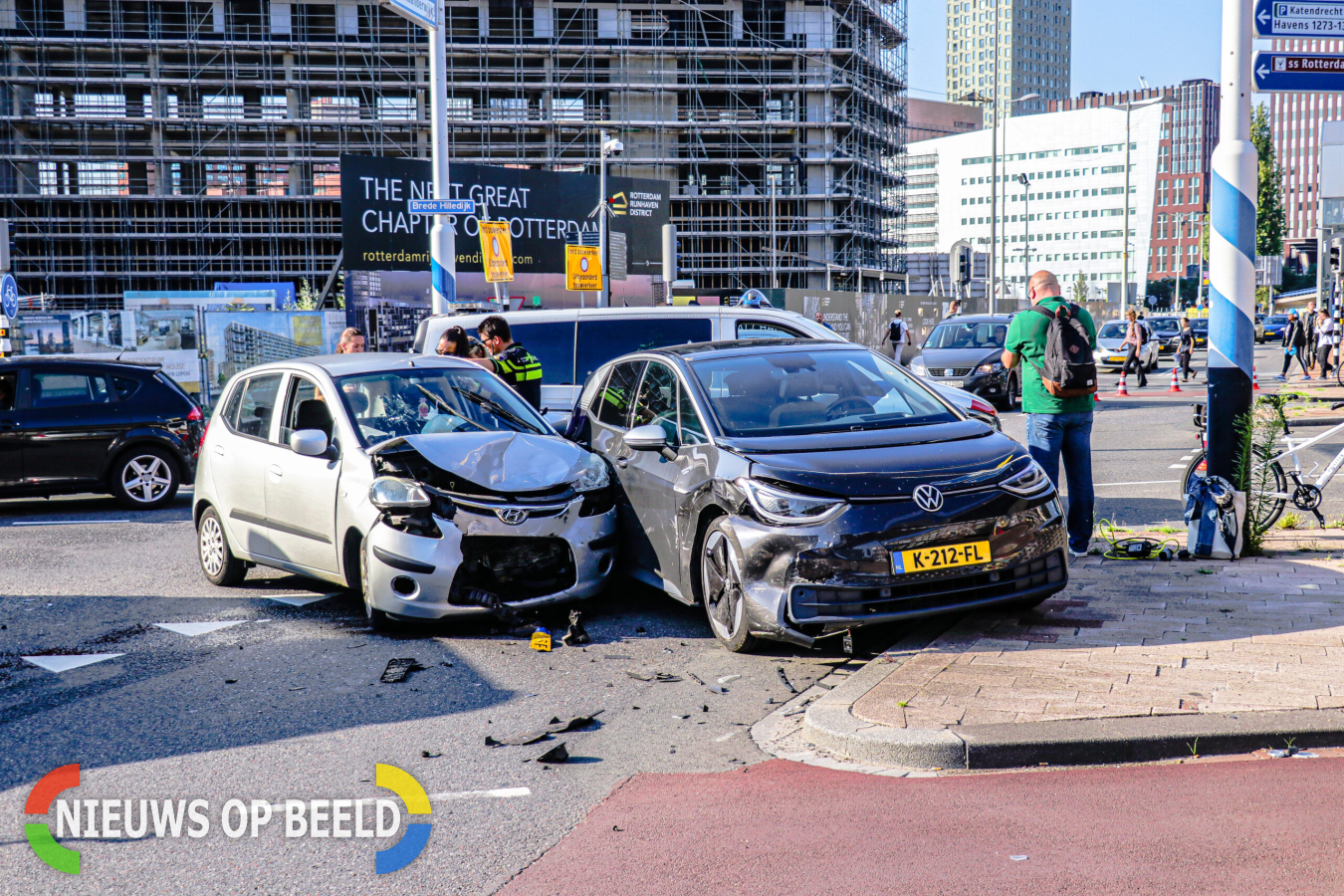 Rotterdam – Op de Kruising Brede Hilledijk met de Maashaven in Rotterdam zijn donderdagavond twee voertuigen met elkaar in botsing gekomen. Beide voertuigen hebben forse schade opgelopen. Een persoon is voor controle overgebracht naar het ziekenhuis.