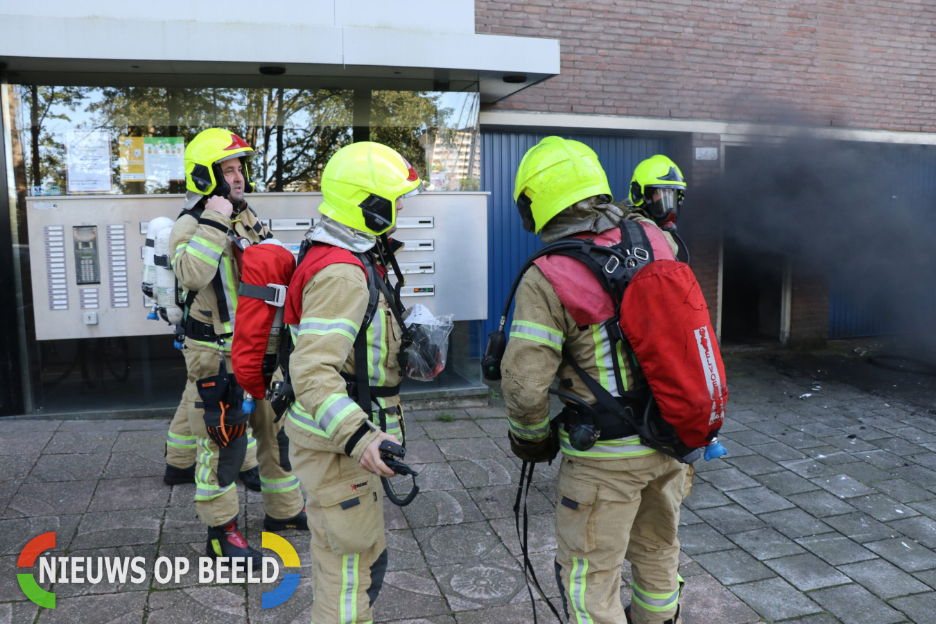 De aanval werd ingezet. De uitgebrande tweewieler werd naar buiten gehaald en is daar nageblust. Het is niet bekend of de brand veel verdere schade aan de kelderboxen heeft aangericht. Evenmin bekend is waarom de scooter in brand is gevlogen.