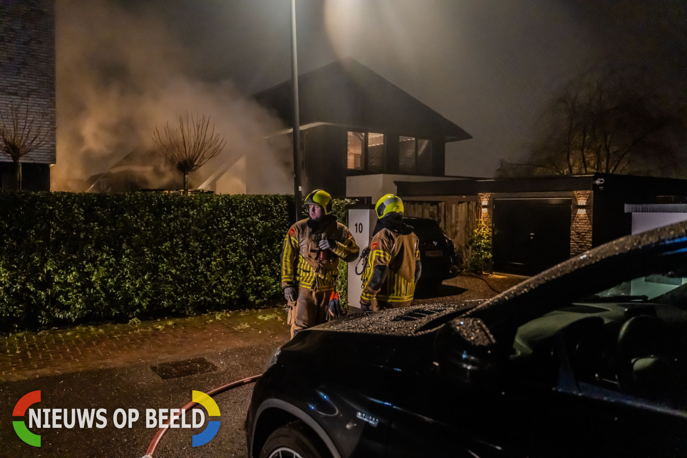 De auto stond op de oprit van de woning. De brandweer voorkomen dat de brandweer mogelijk zou overslaan naar het huis welke voorzien was van een rieten kap. Gelukkig was het accupakket van de BMW IxDrive 40 niet gaan branden.