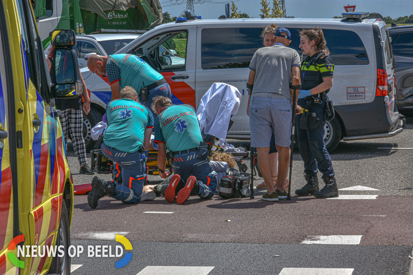 De schade aan beide voertuigen valt mee, de fietsster is per ambulance overgebracht naar het ziekenhuis voor controle.