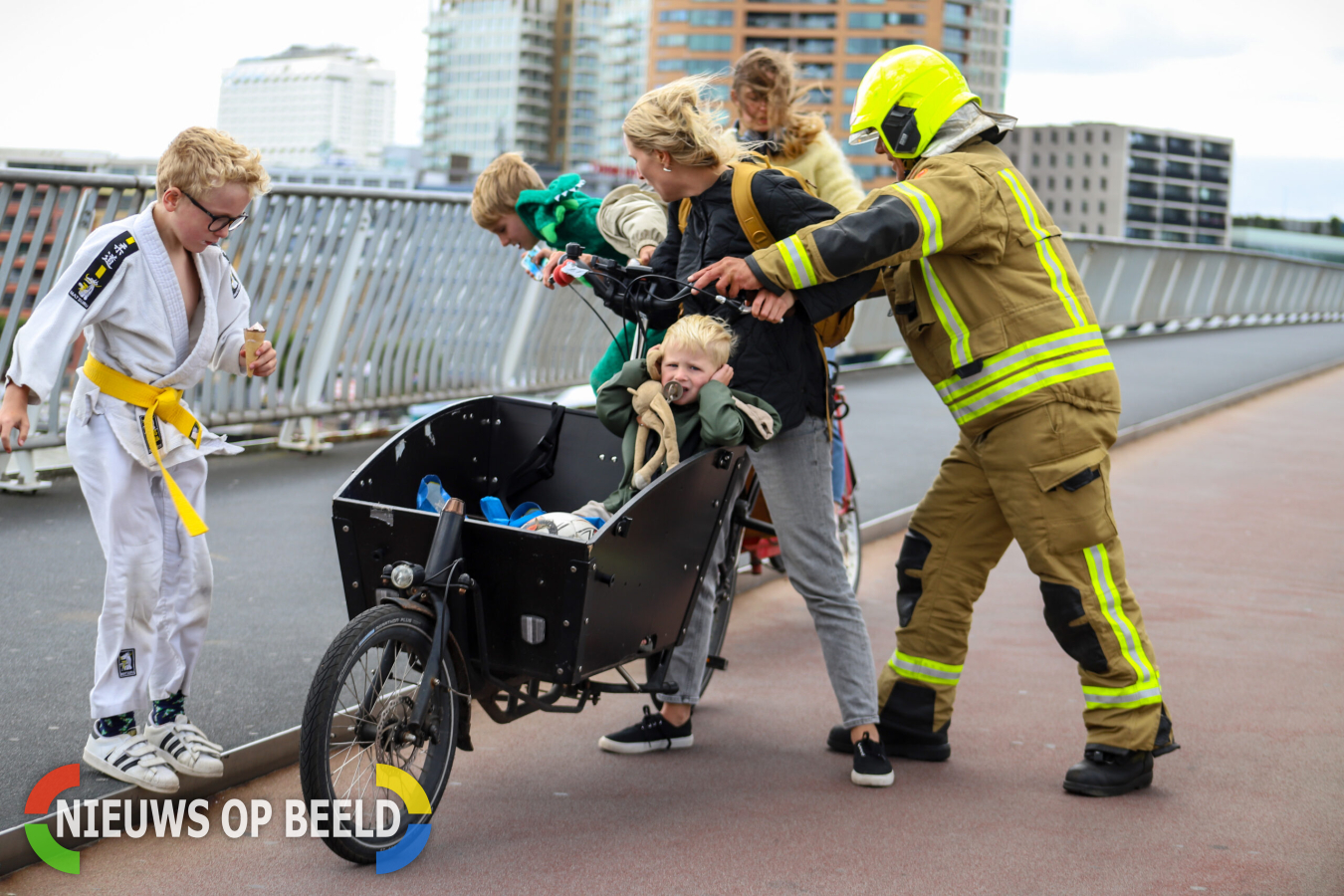 Rotterdam – De brandweer heeft zaterdagmiddag snel en doortastend ingegrepen op de Erasmusbrug, waar door de storm met harde wind houten platen los waren geraakt. Deze platen maakten deel uit van een lopend restauratieproject aan de Erasmusbrug. Dankzij het snelle optreden van de brandweer zijn de platen veiliggesteld, waardoor verdere schade of gevaar voor voorbijgangers is voorkomen.