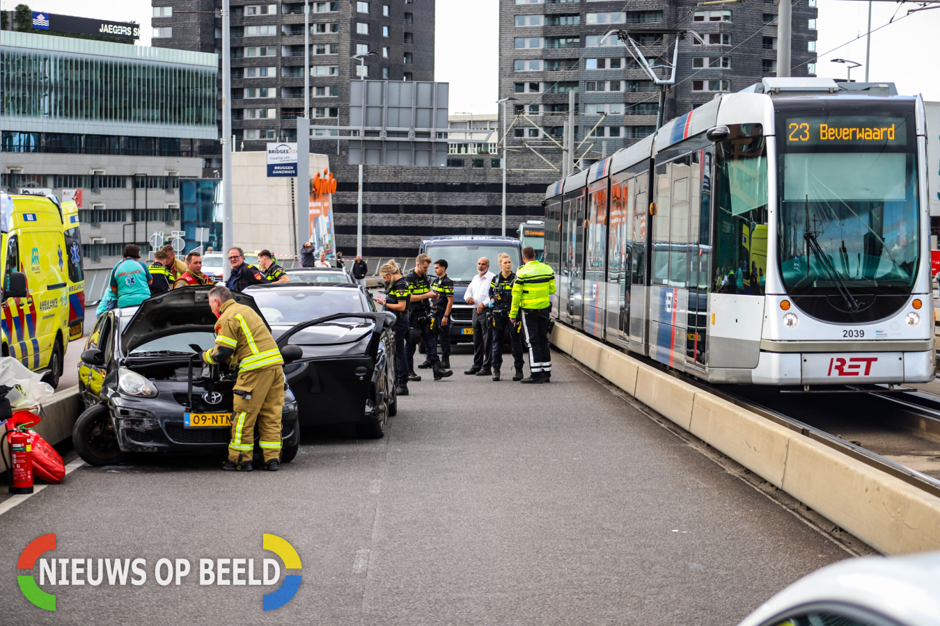 Op de Erasmusbrug in Rotterdam zijn maandagmiddag vier voertuigen zwaarbeschadigd geraakt na een dollemansrit van een taxichauffeur. De taxichauffeur reed met zijn taxi op hoge snelheid de Erasmusbrug op. In de bocht verloor hij de macht over zijn stuur en ramde daarbij drie andere weggebruikers. Één van de geramde auto’s, en de taxi kwamen zo’n twintig meter verder tot stilstand tegen de barrière van de brug.