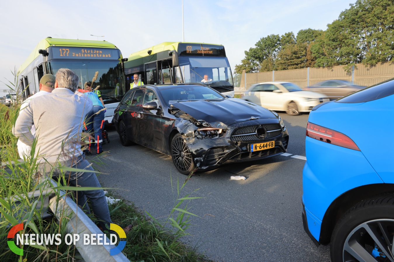 Barendrecht, Rotterdam – Dinsdagmiddag 17 september rond 18:00 uur heeft er een verkeersongeval plaatsgevonden op de A29 ter hoogte van kilometerpaal 11.2 bij Barendrecht. Bij het ongeluk waren twee personenauto’s en een bus betrokken, waarbij de passagiers van de bus tijdelijk moesten uitstappen en naar een andere bus moesten overstappen om hun reis voort te zetten.