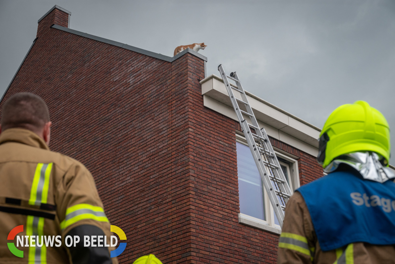 Zuidland – De brandweer is vanavond voor een klassieke melding opgeroepen naar de Slijpsteen: een kat op het dak.