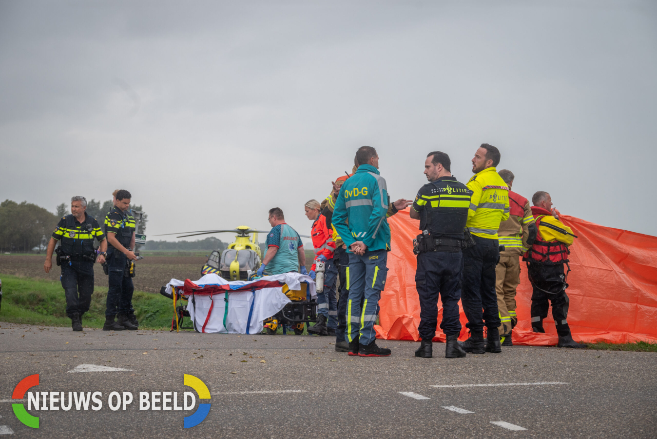 De Forensische Opsporing Verkeer doet onderzoek naar het ongeval, om die reden is de kruising volledig afgesloten voor verkeer.