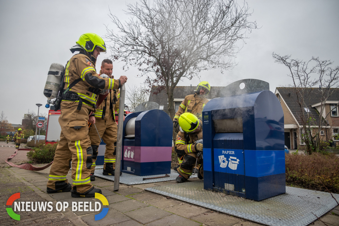 Bij aankomst van de brandweer kwam er al veel rook uit de desbetreffende papiercontainer. Kinderen hadden vuurwerk in de container gegooid waarna deze is gaan branden. Zelf hadden zij met een emmer water de brand proberen te blussen maar dit was niet gelukt. De brandweer heeft de container vol laten lopen met water. Om tegelijkertijd de tank van de brandweerwagen weer te vullen is water gehaald uit een ondergrondse brandkraan.